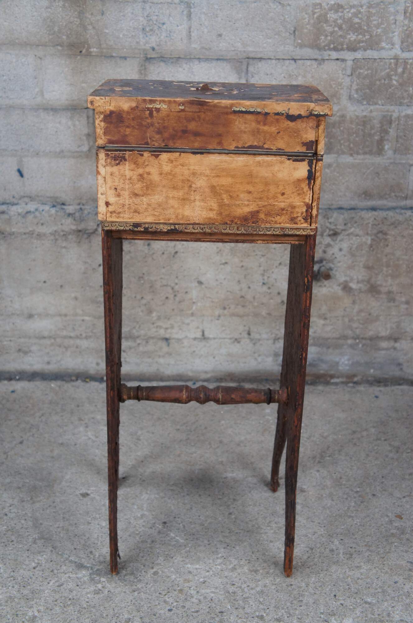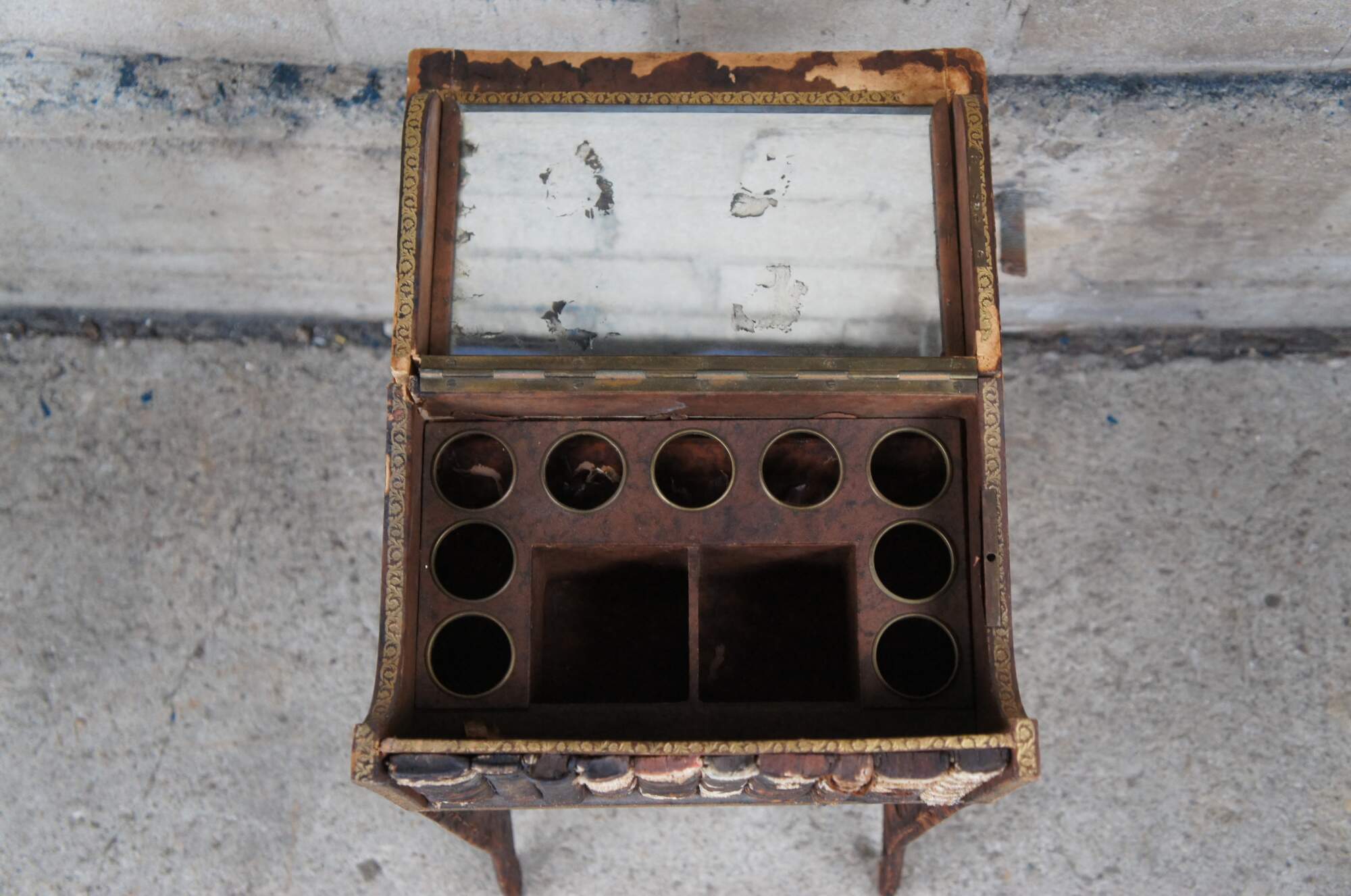 Fair; distressing, finish wear, trim and leather loss. Spotting to mirror; no key or inserts