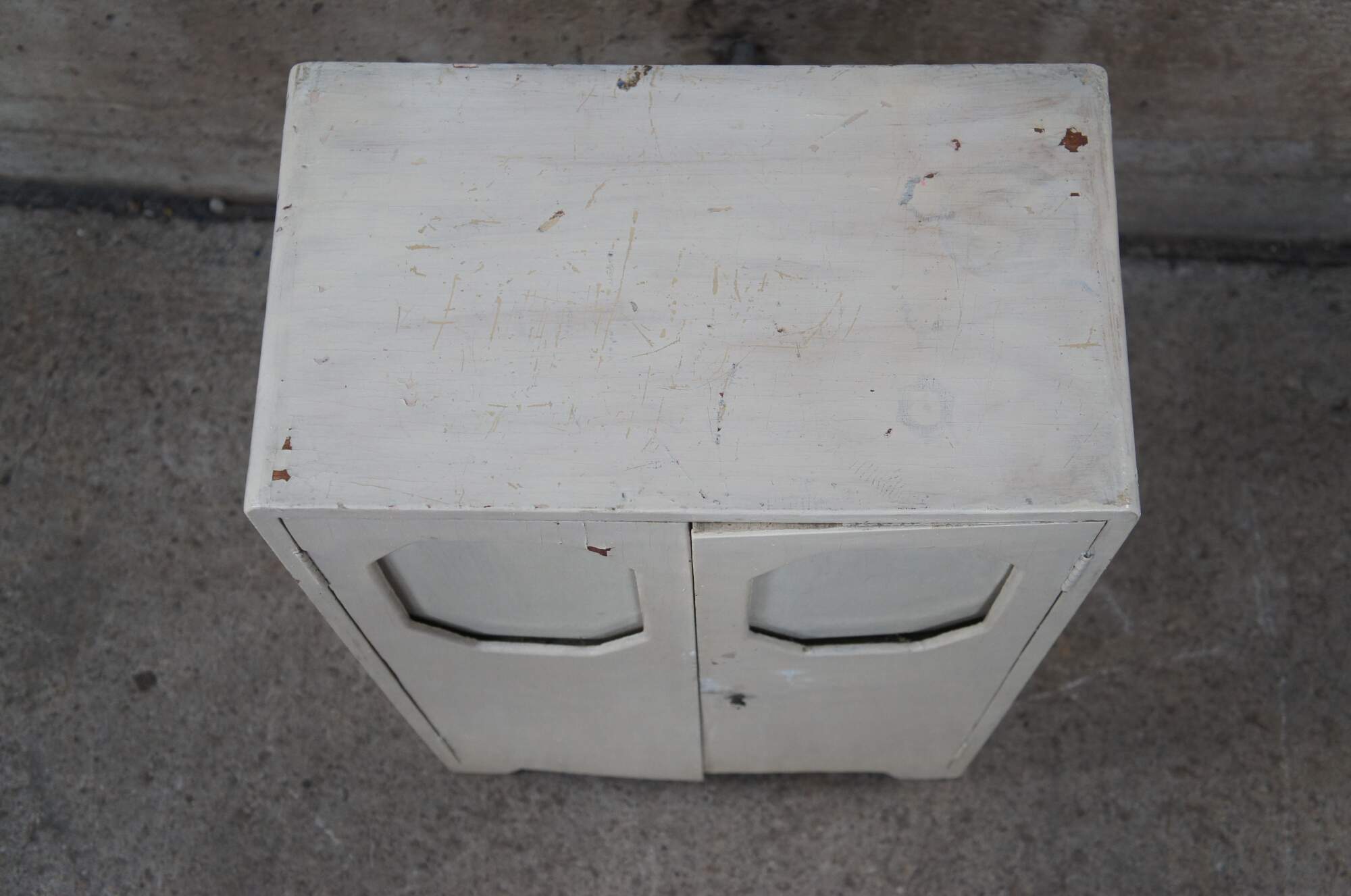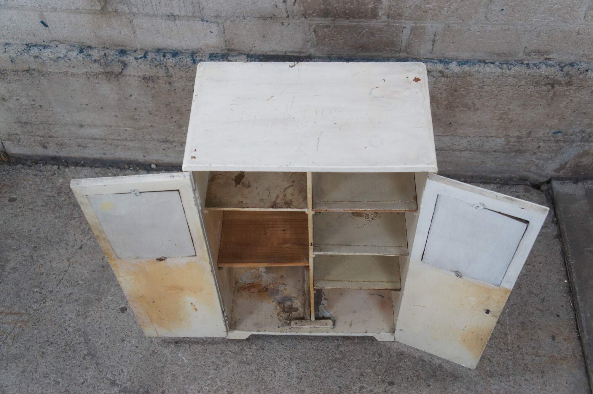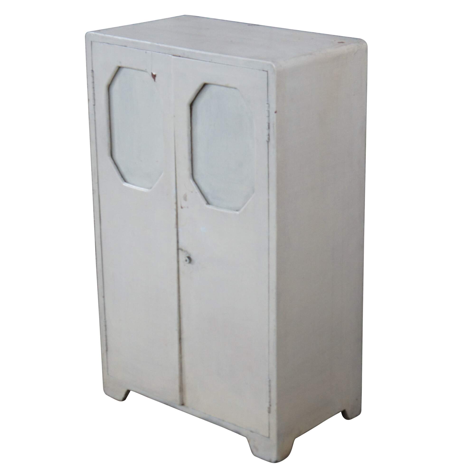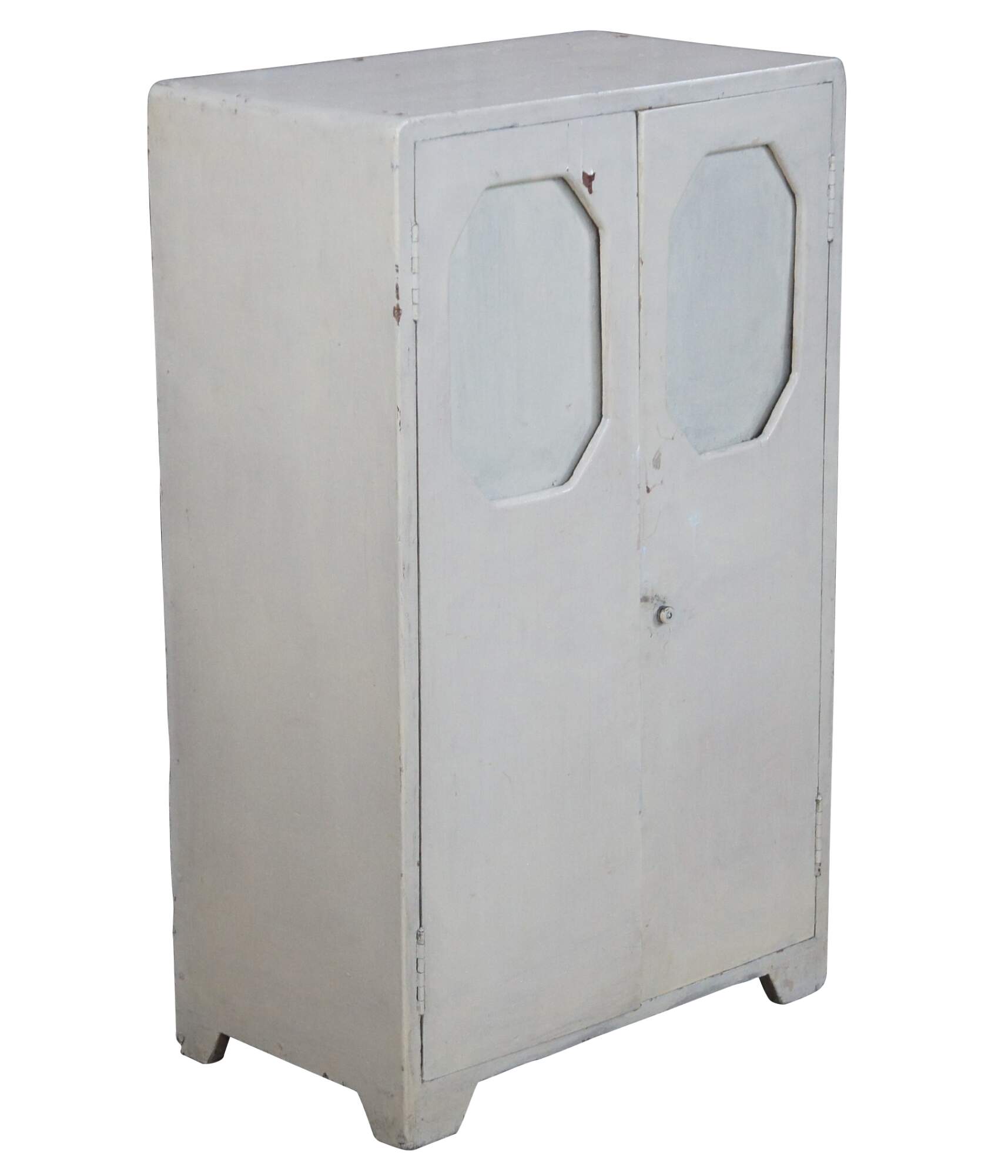 Small Vintage painted cupboard, circa mid 20th century. Last used as an apothecary or medinet cabinet. Features two holes in the back for hanging.