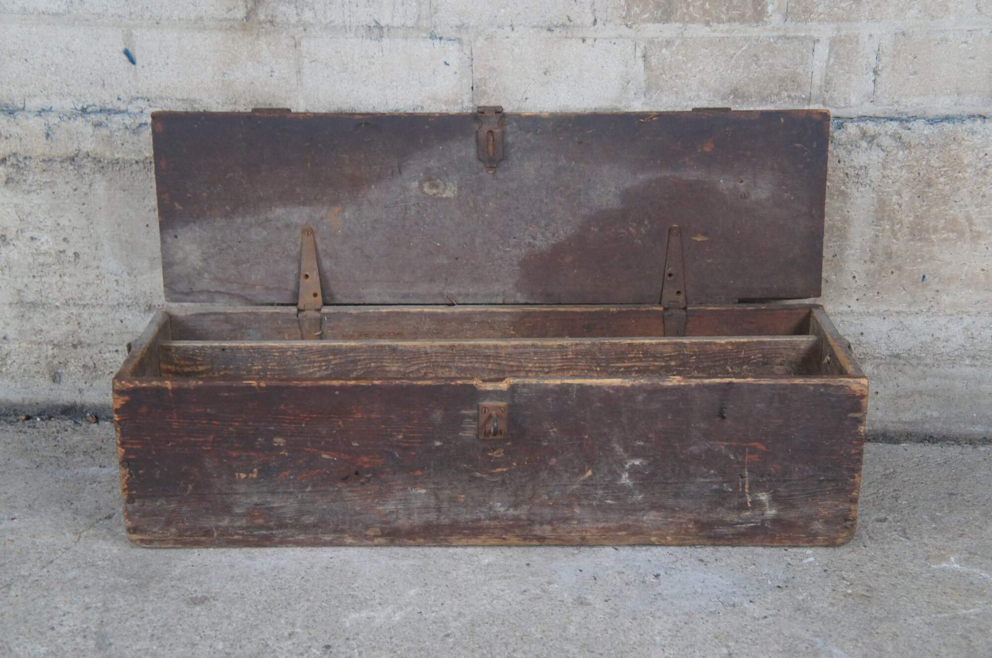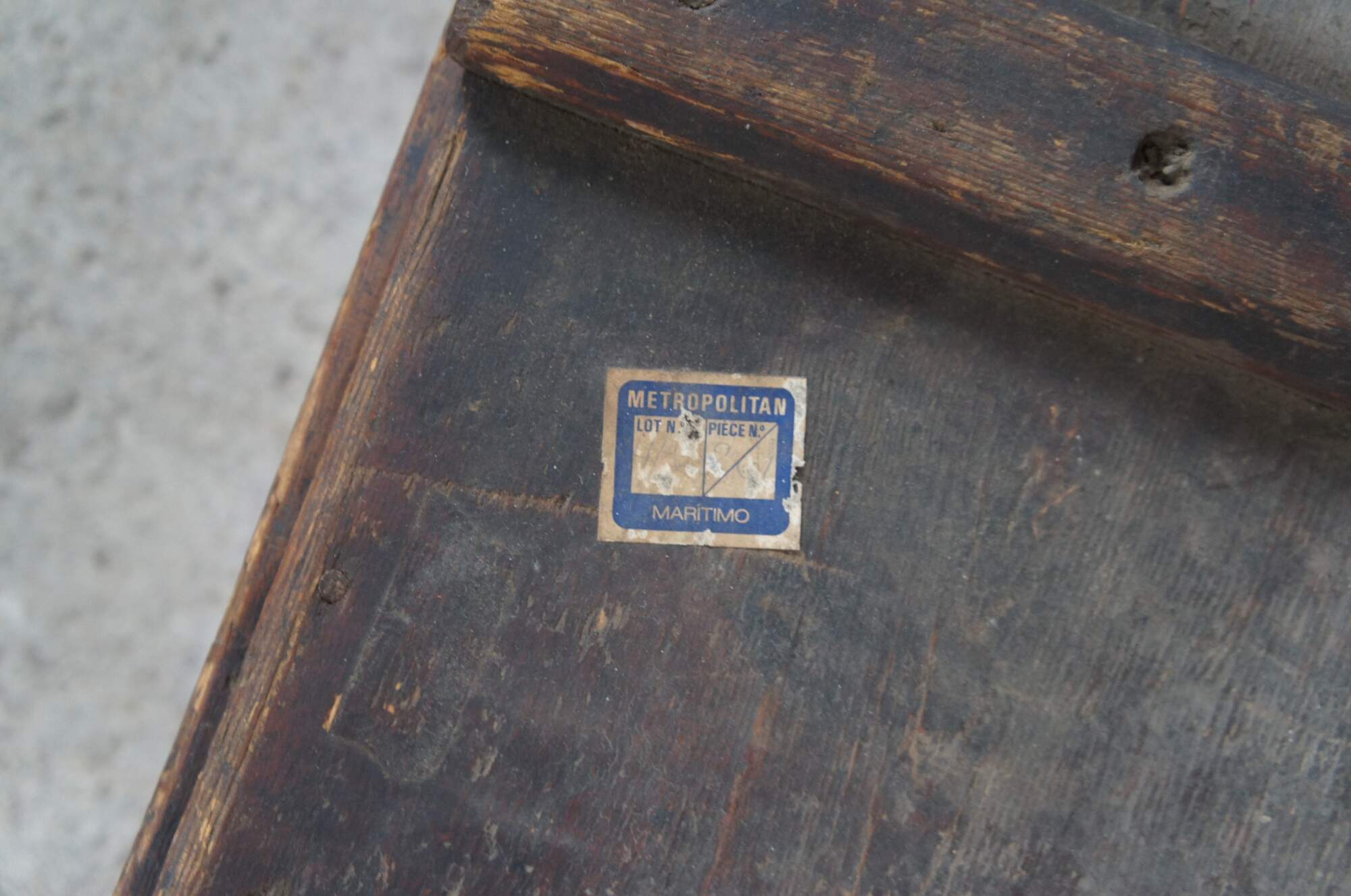 Age and use related wear. Distressing marking and staining. Finish wear. Some screws missing from one hinge