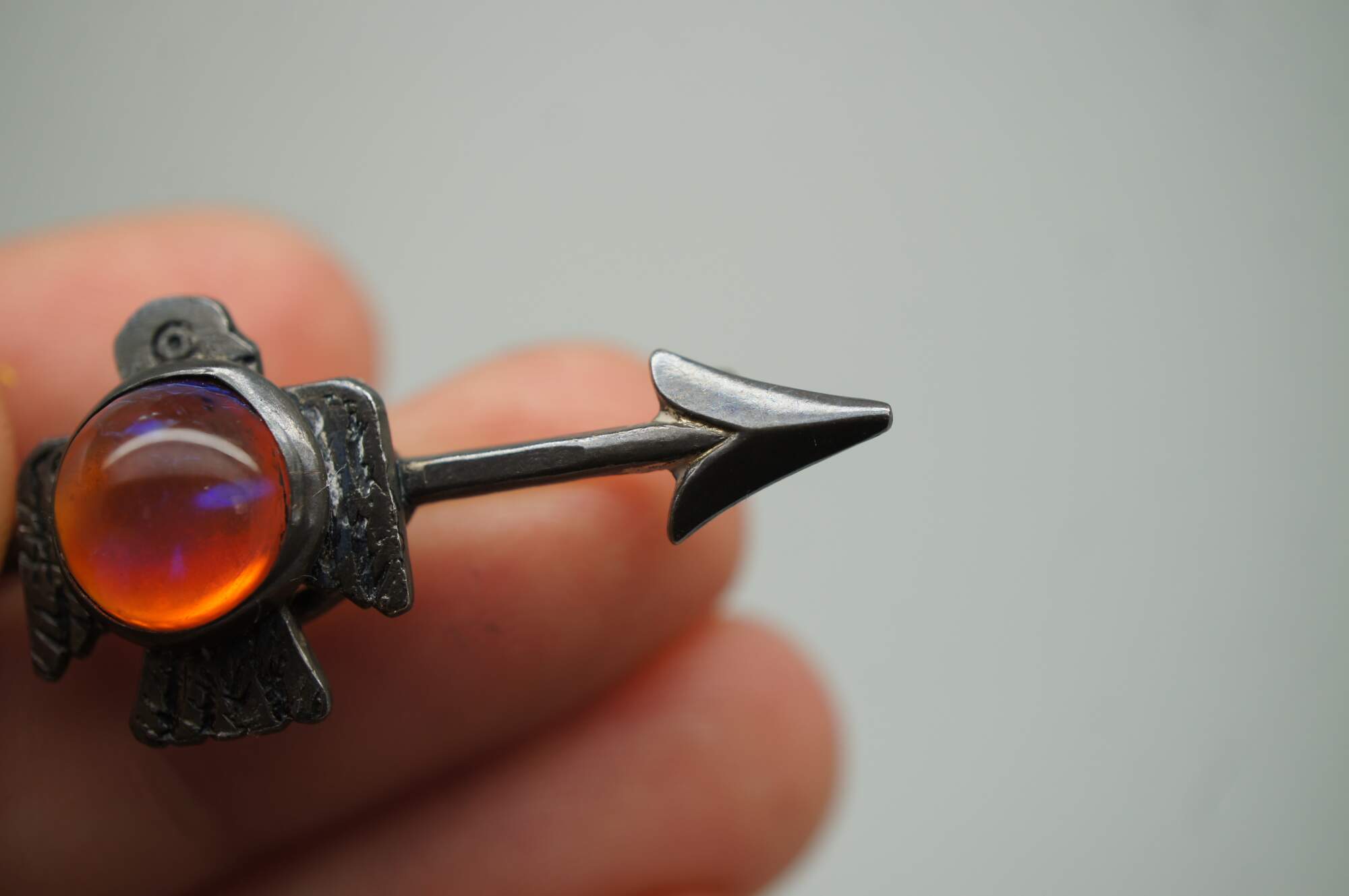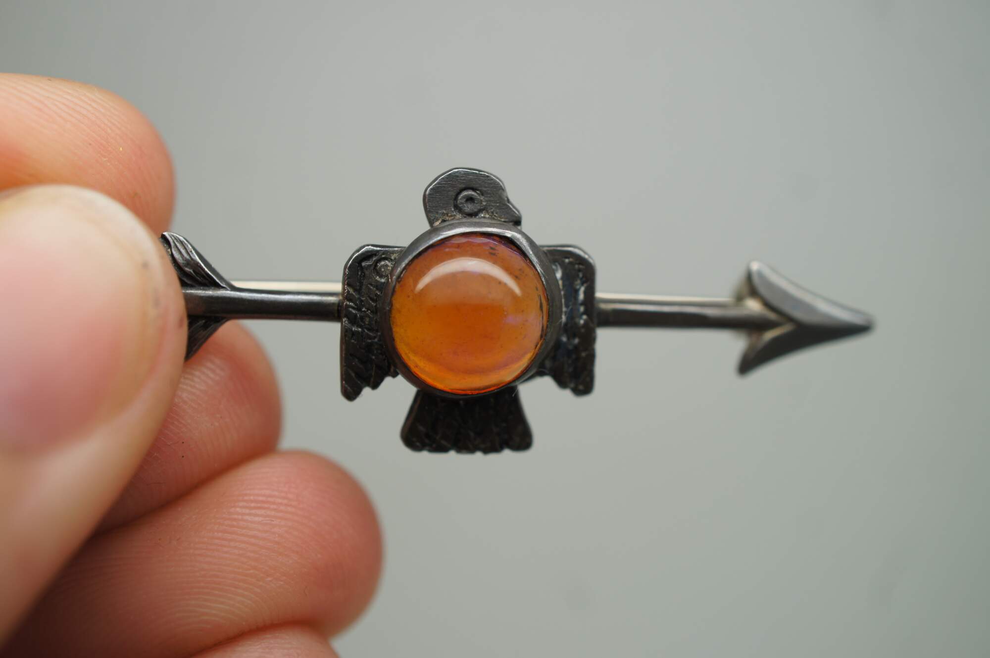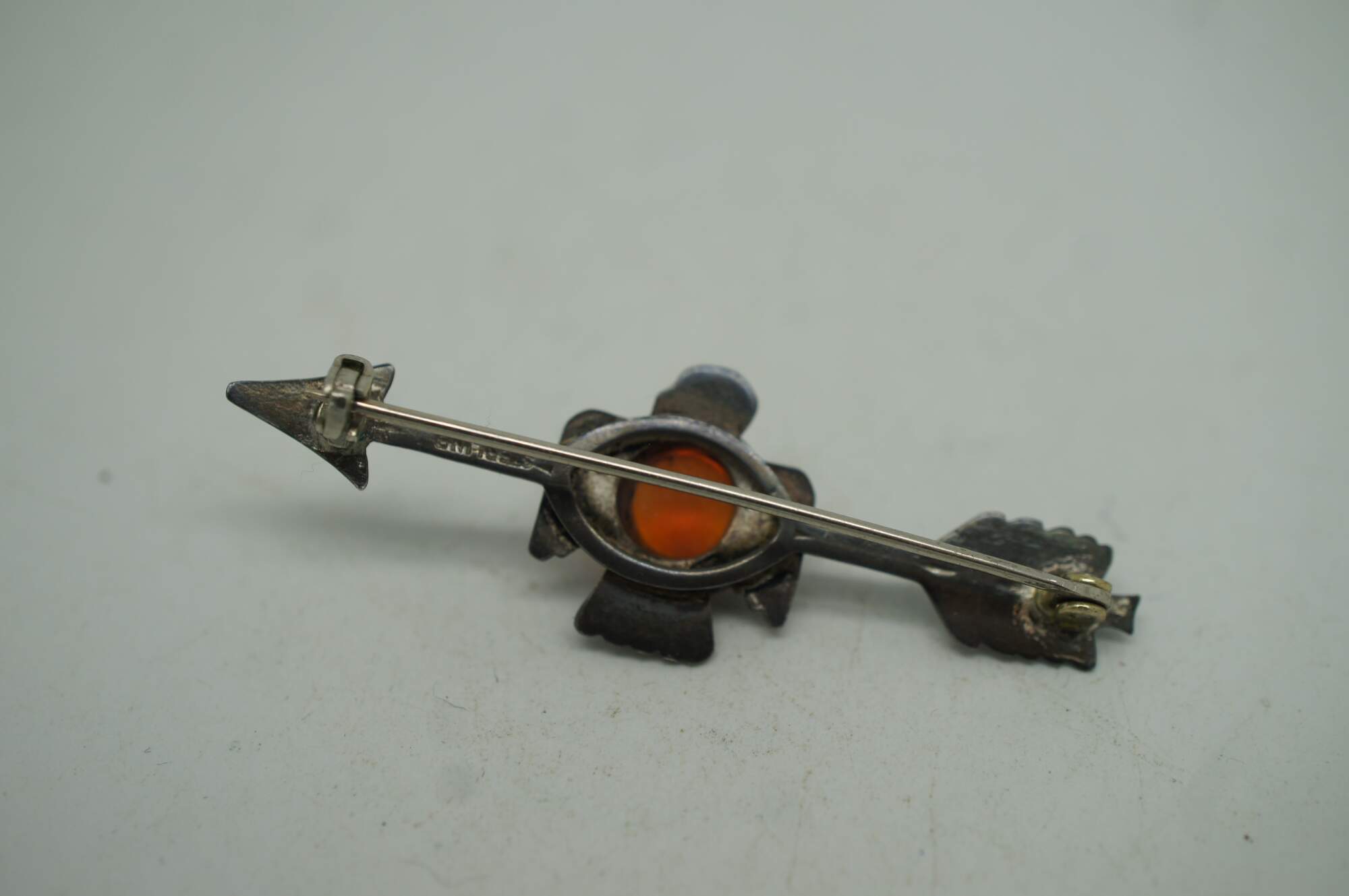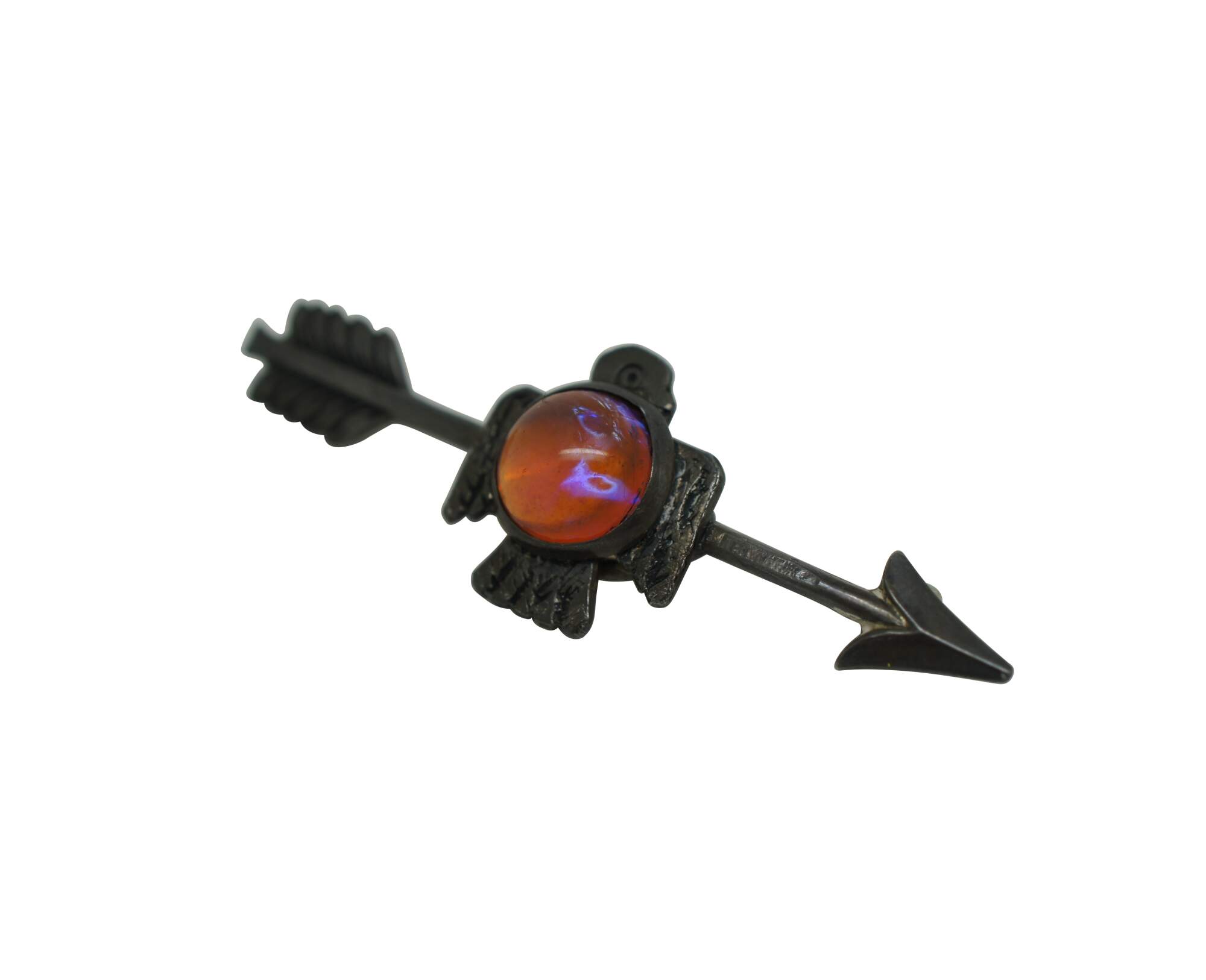 Vintage Navajo Thunderbird / bird / eagle brooch pin featuring a Cabochon gemstone and arrow.