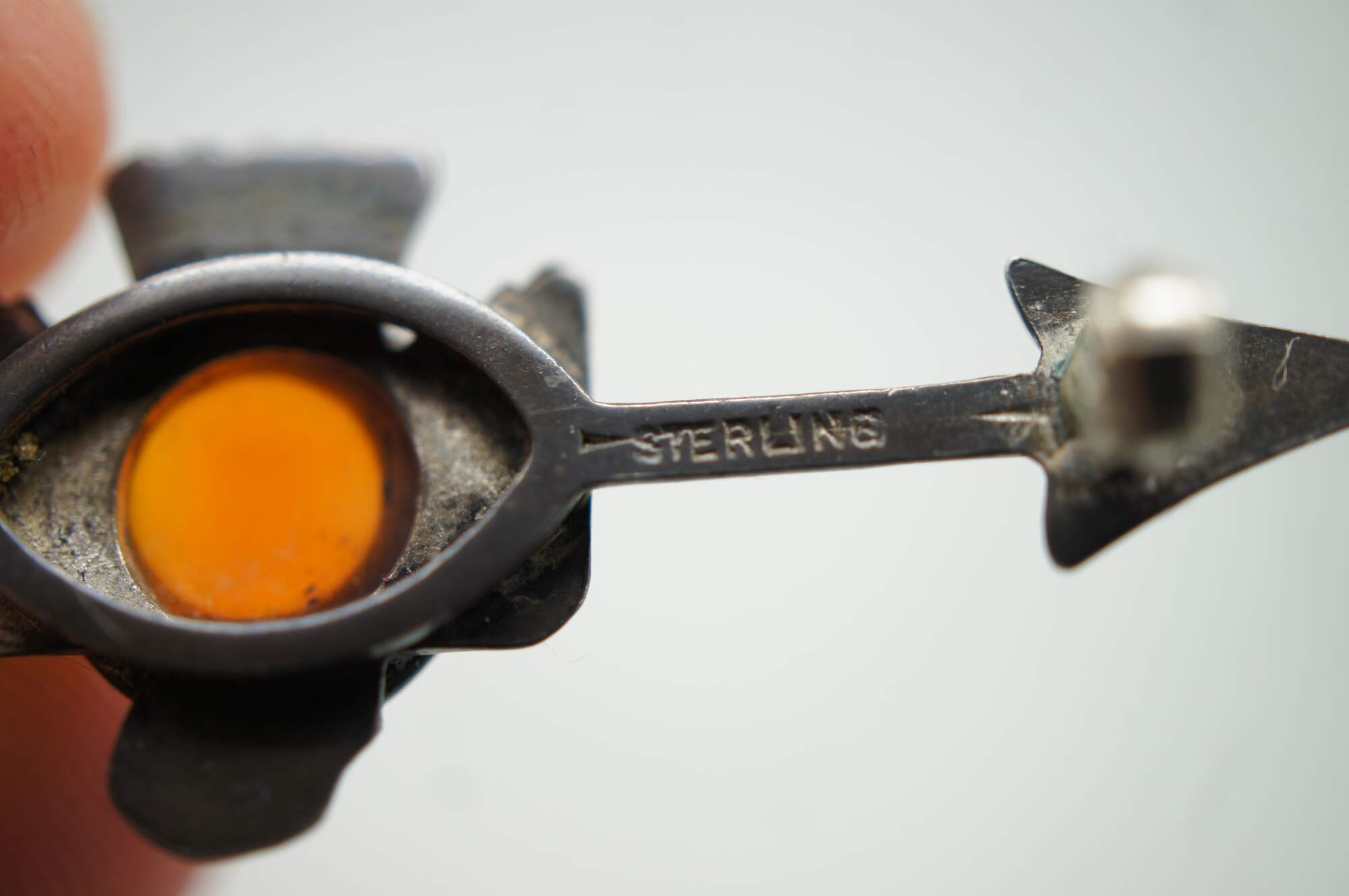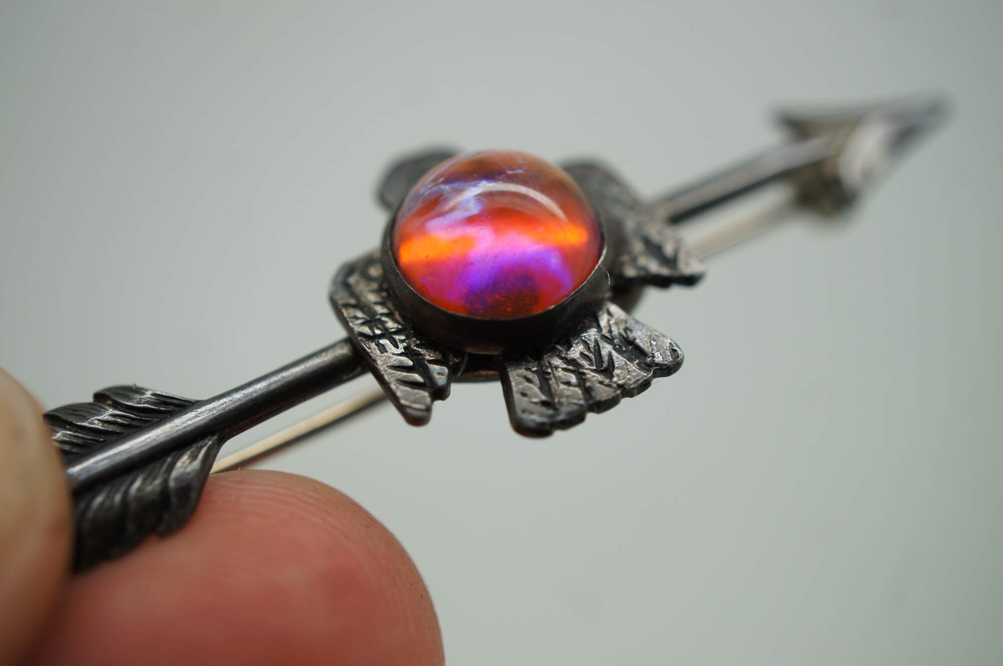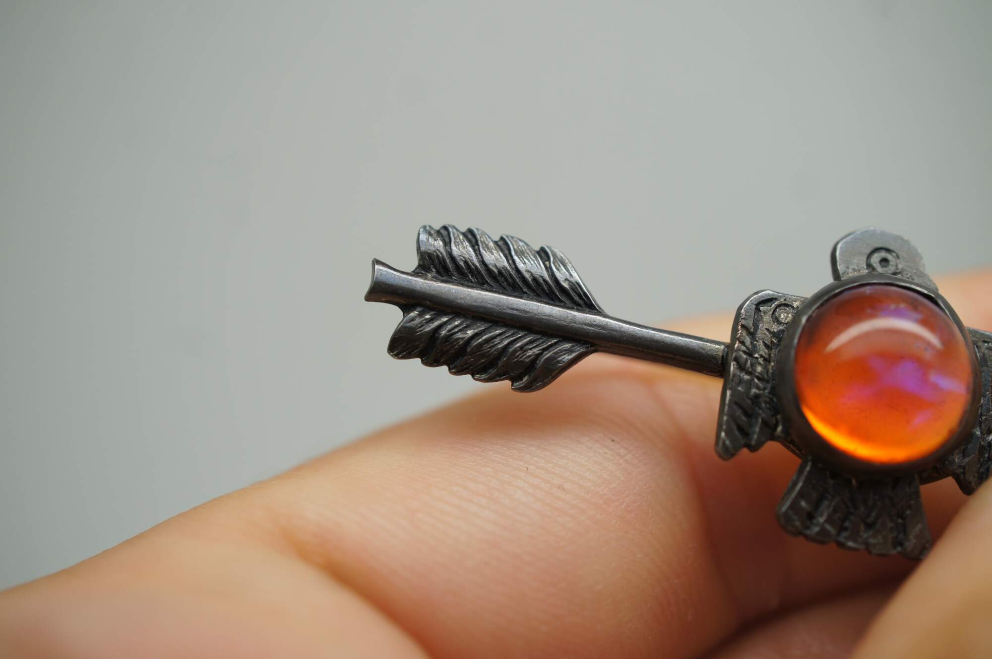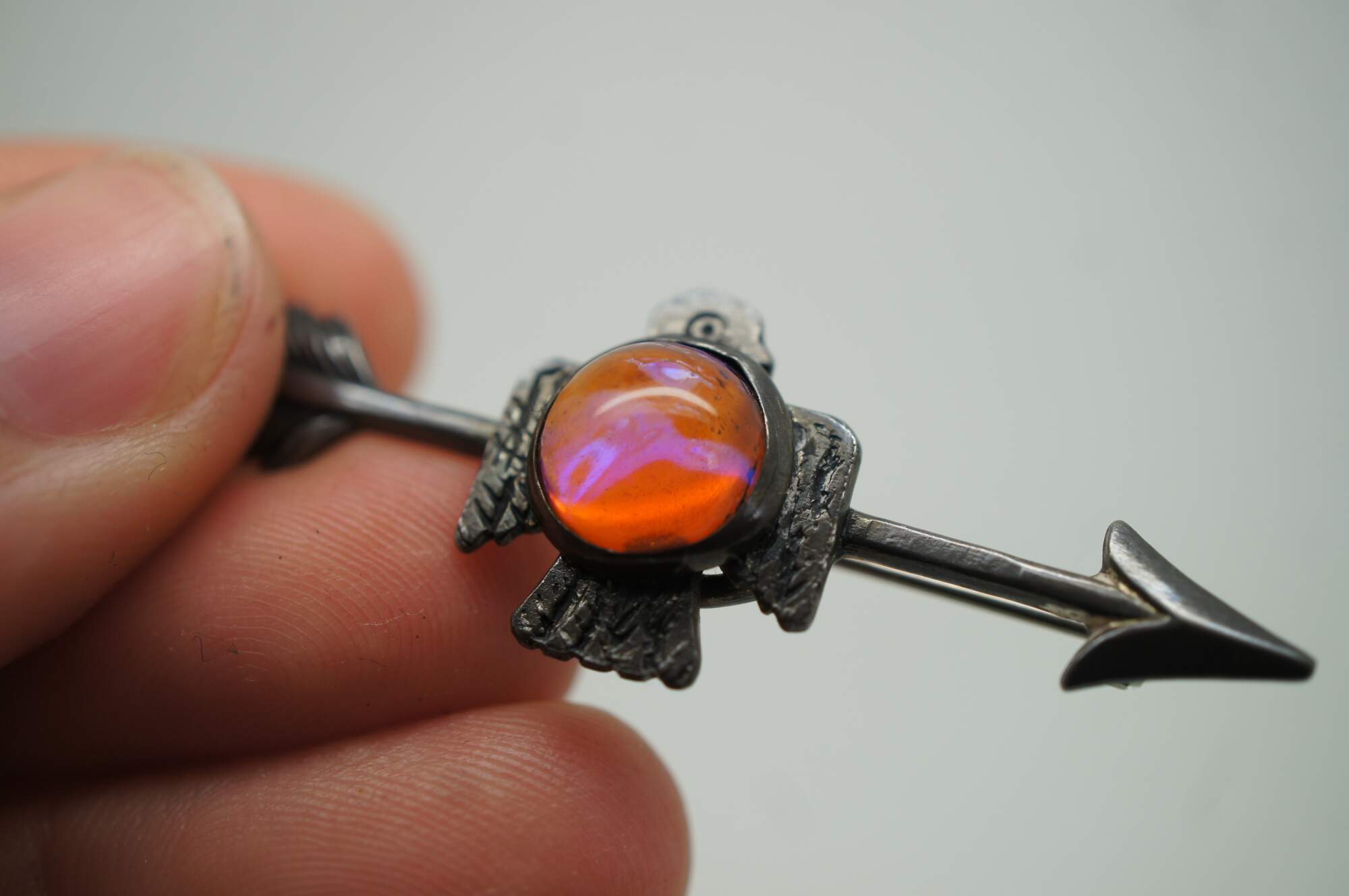 Vintage Navajo Thunderbird / bird / eagle brooch pin featuring a Cabochon gemstone and arrow.