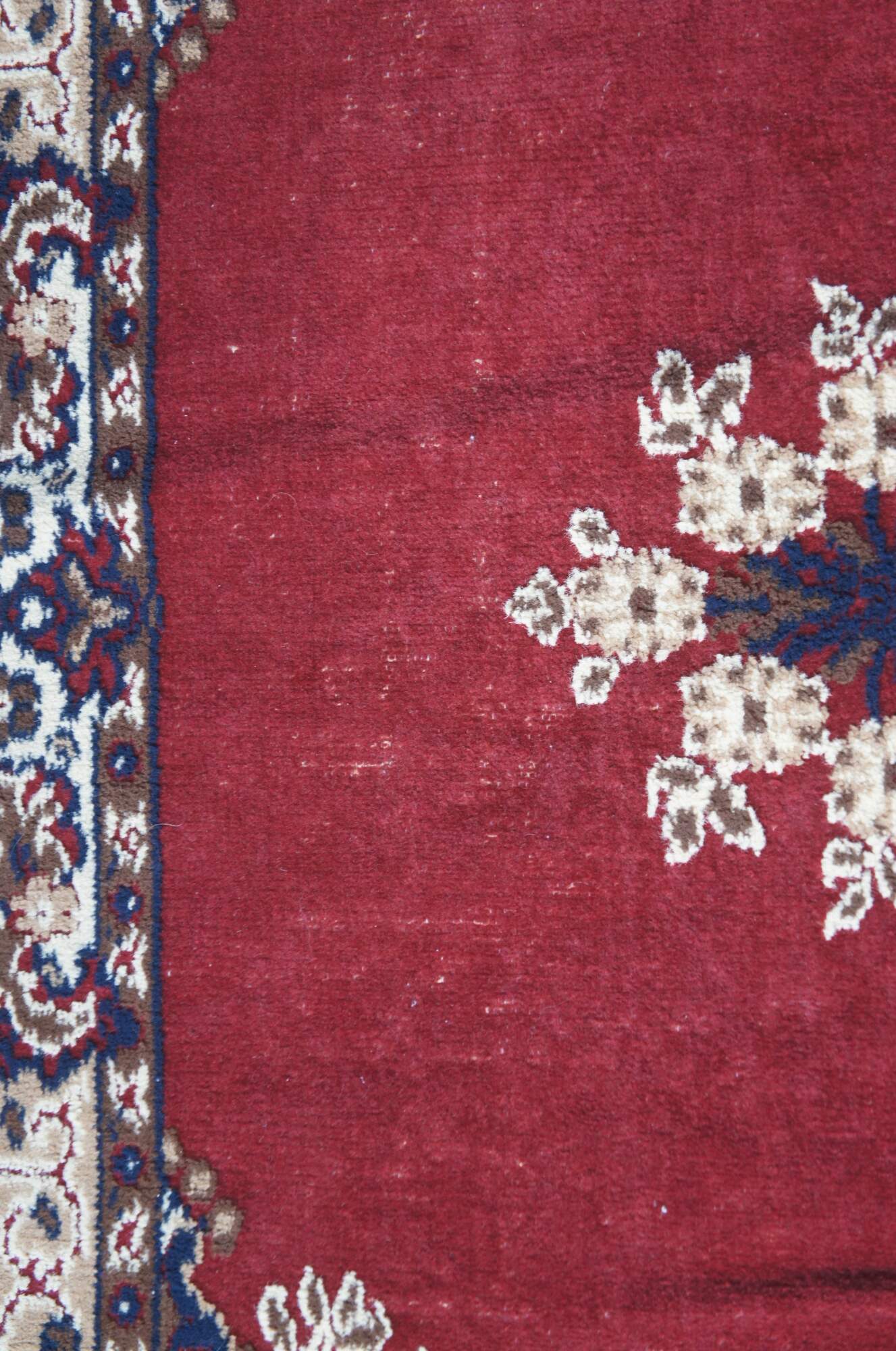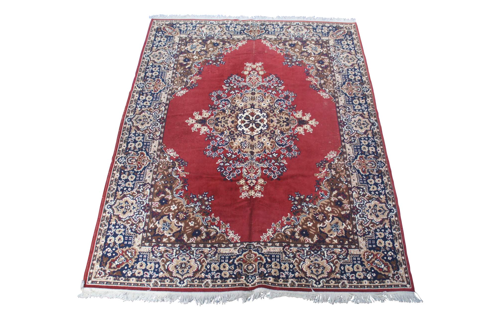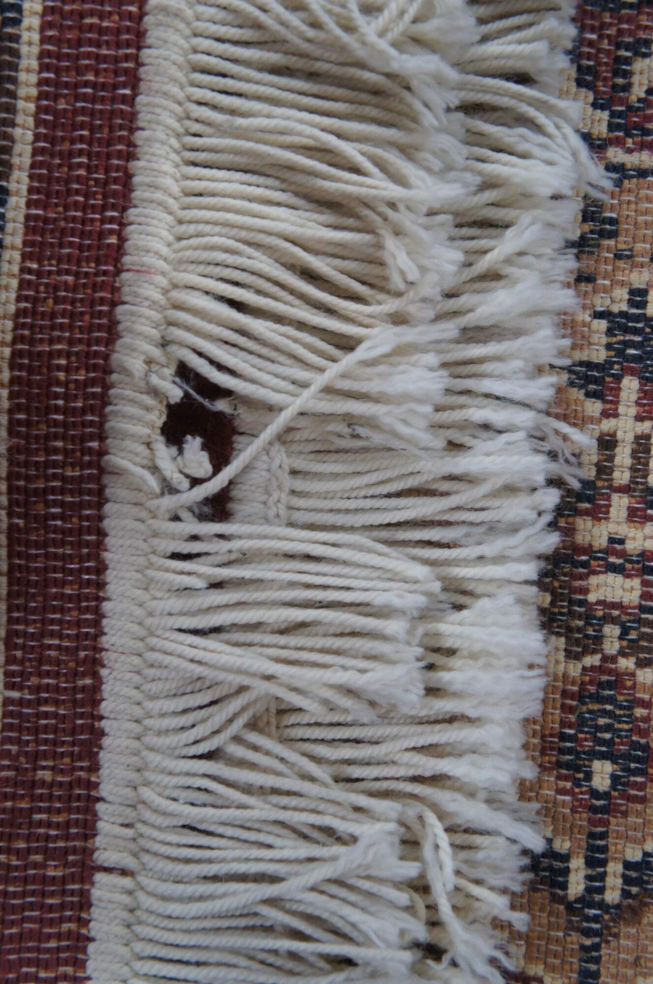 Fair condition, wear and distressing, pile loss, fading, missing fringe.