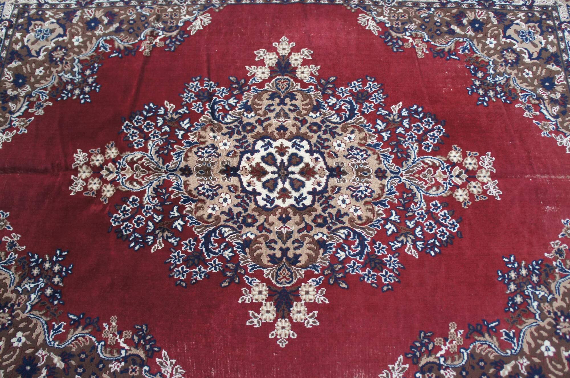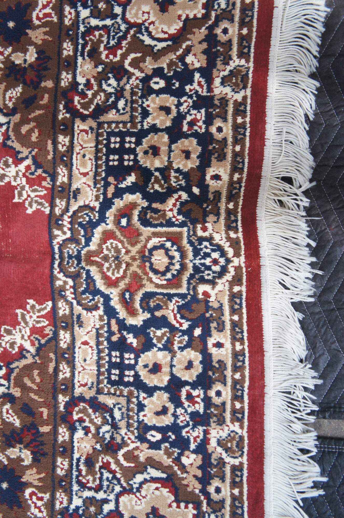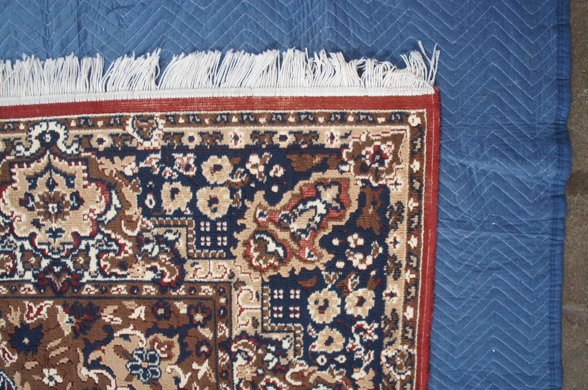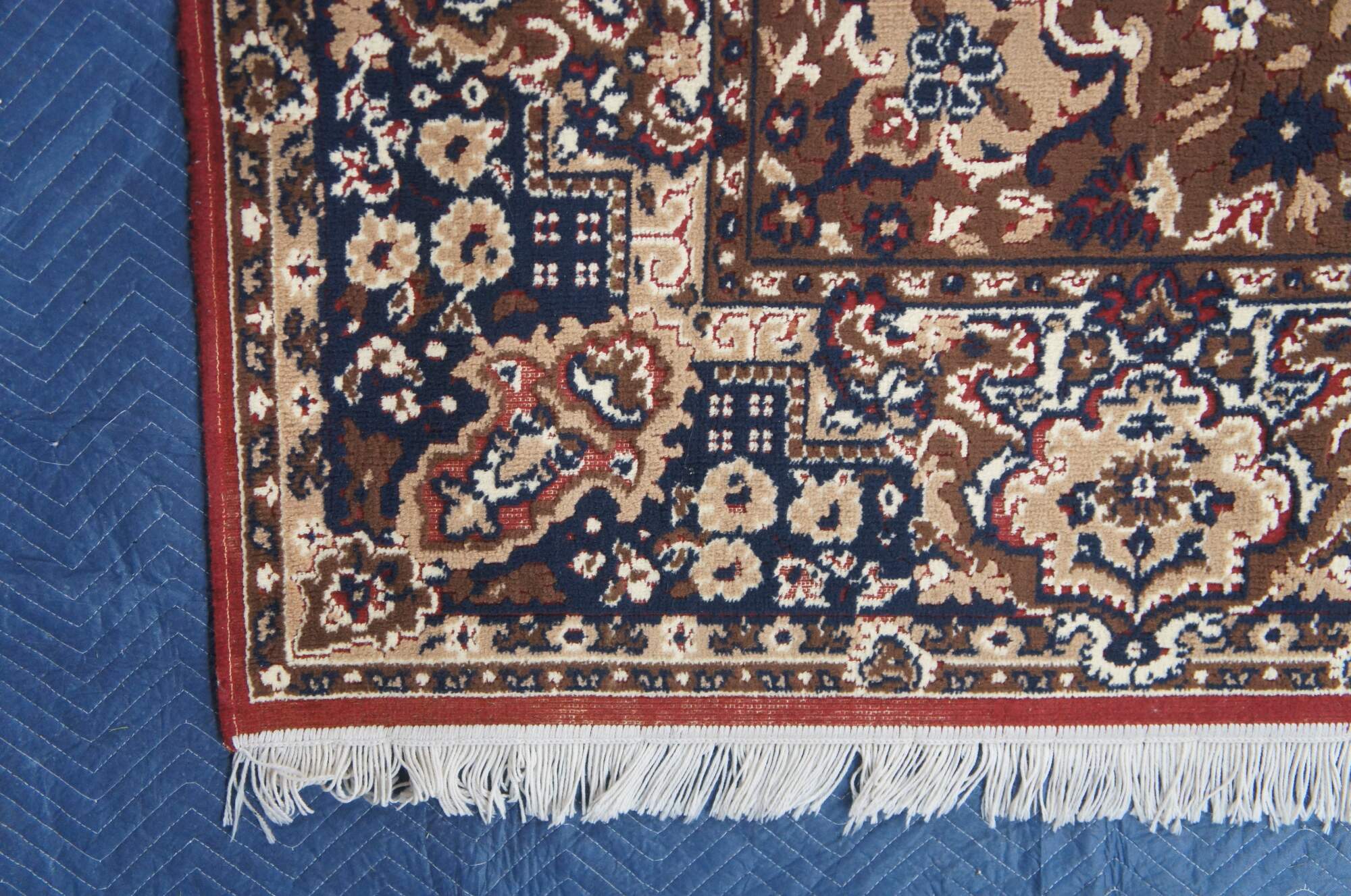Fair condition, wear and distressing, pile loss, fading, missing fringe.