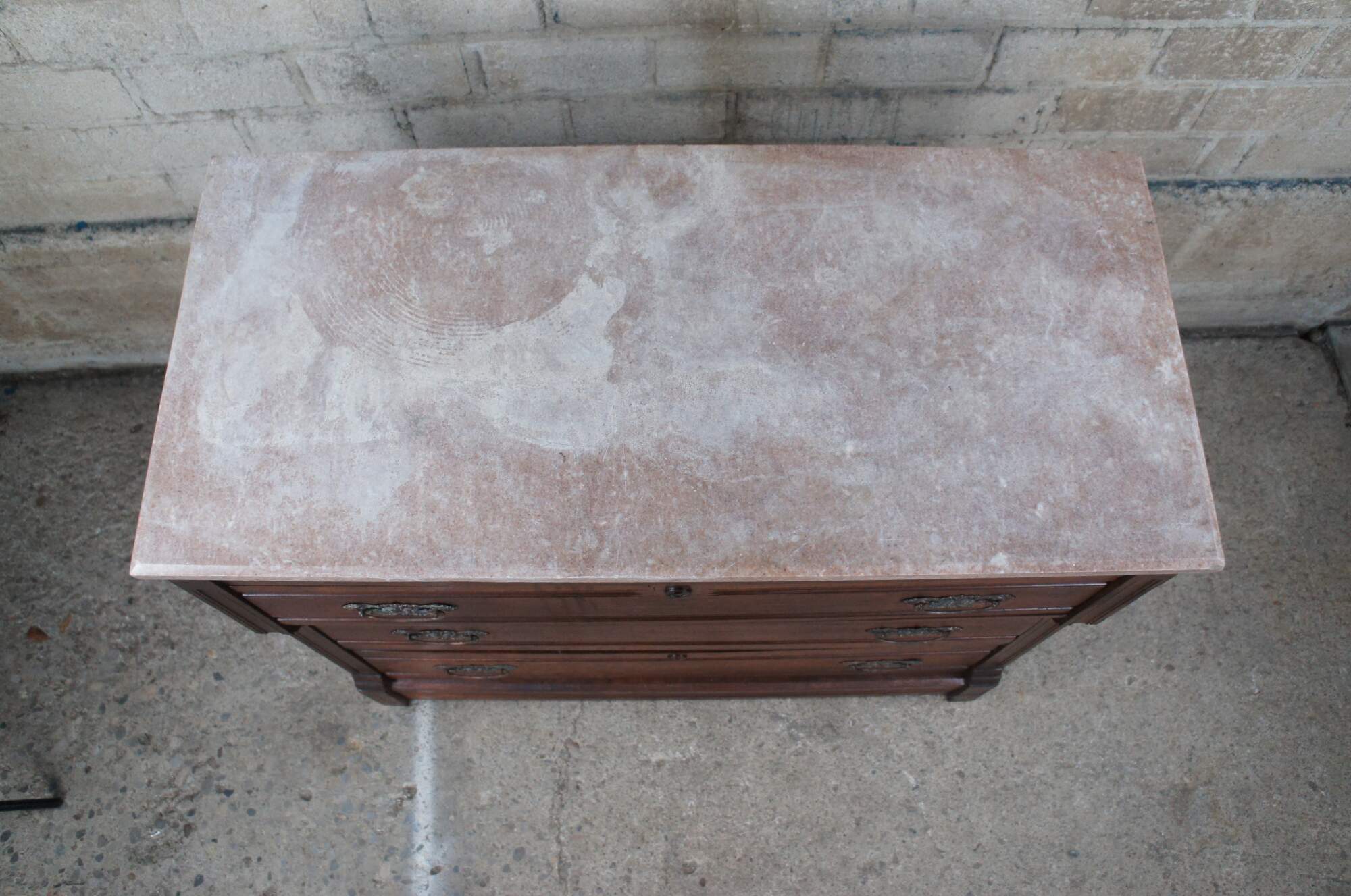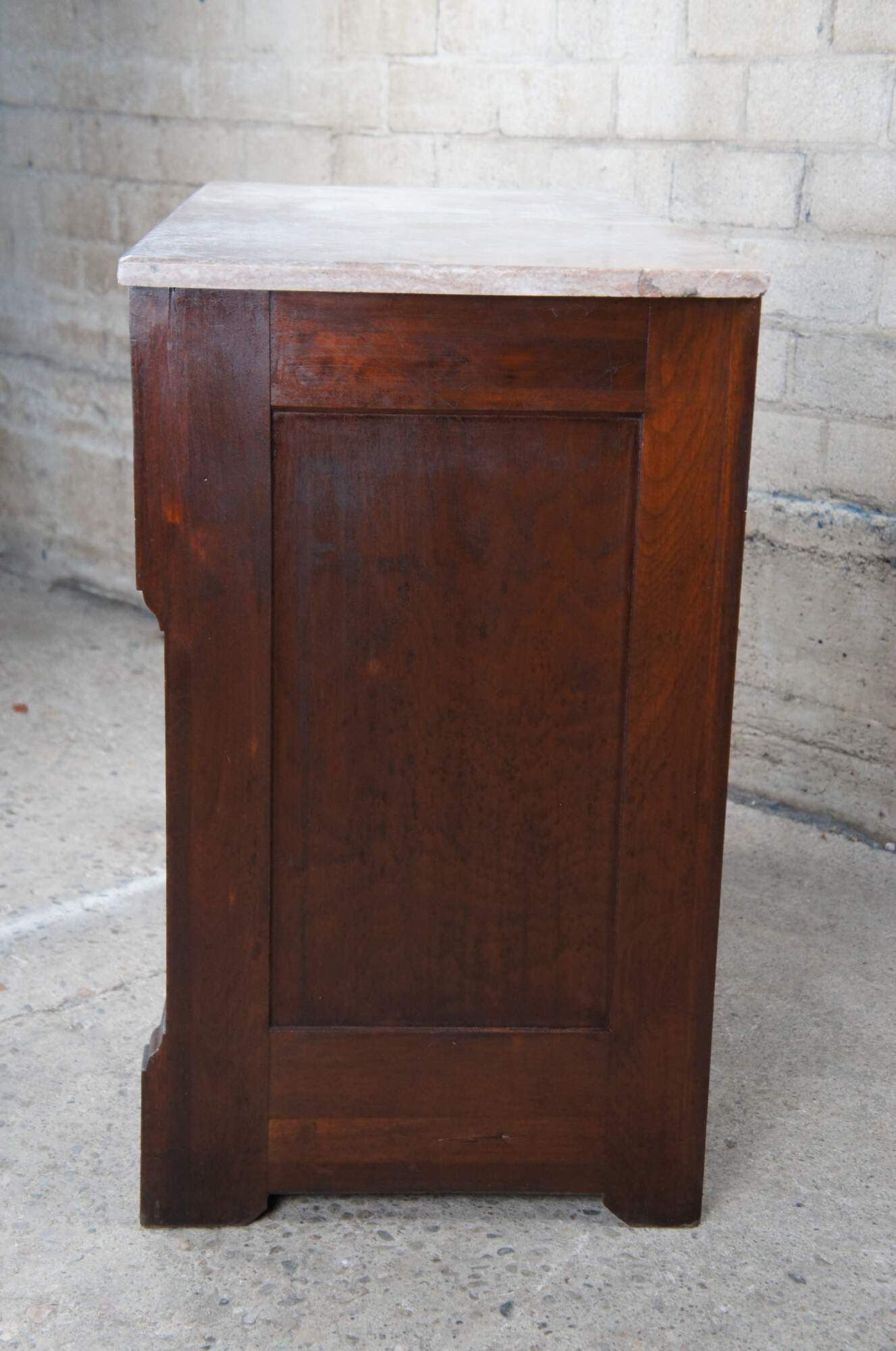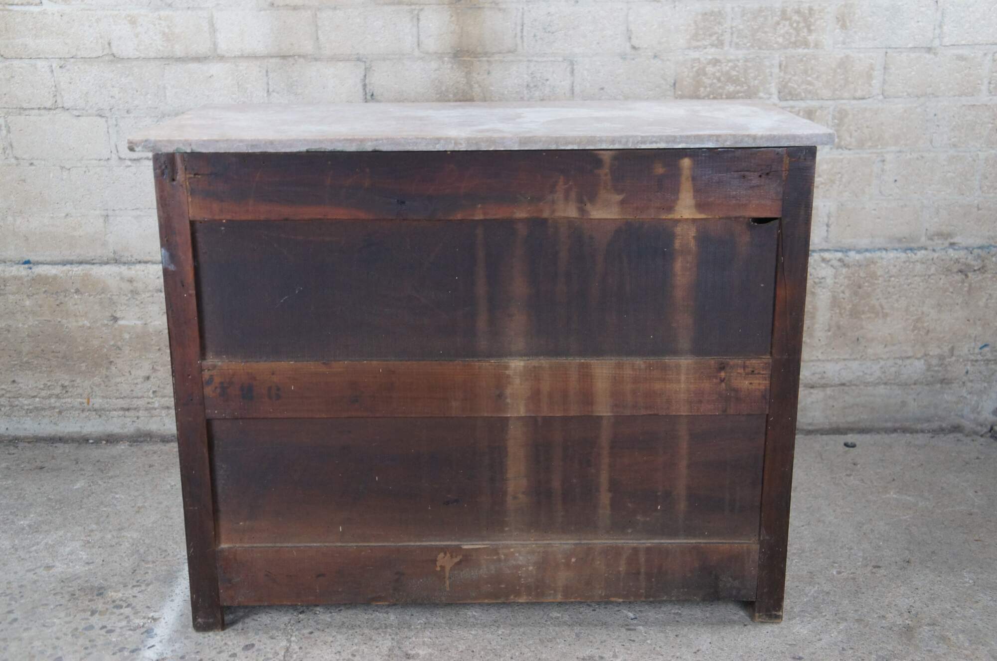 Good Antique Condition; Age and use related wear. Some drip marks / staining to the upper rail and top drawer front. Circular marking and distressing to marble top.