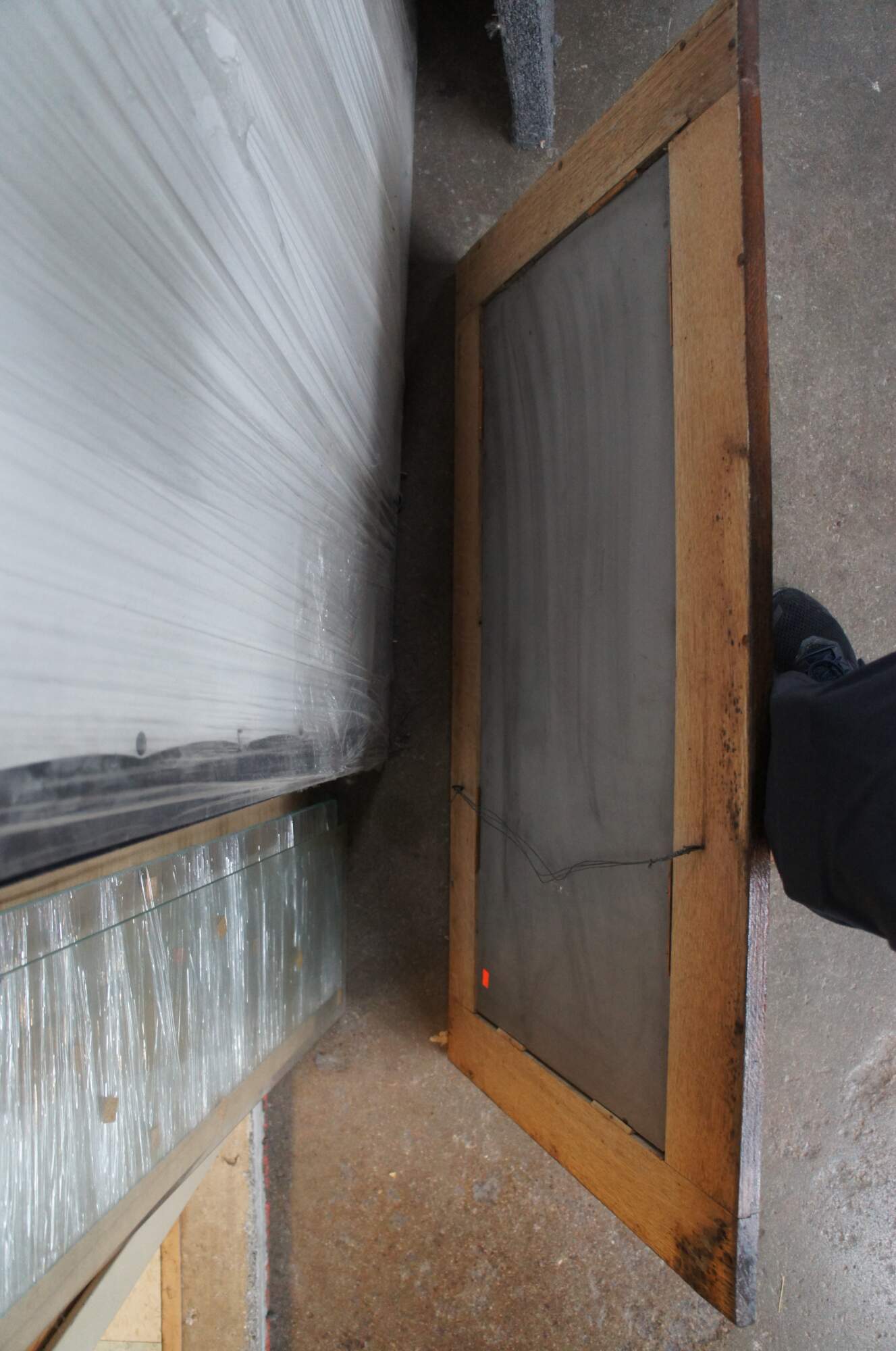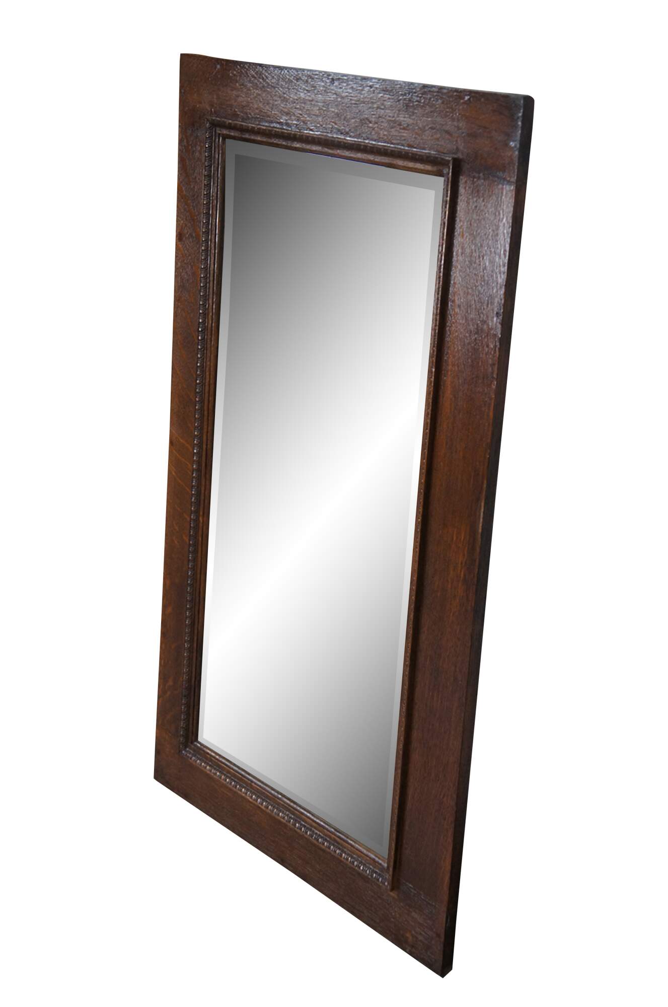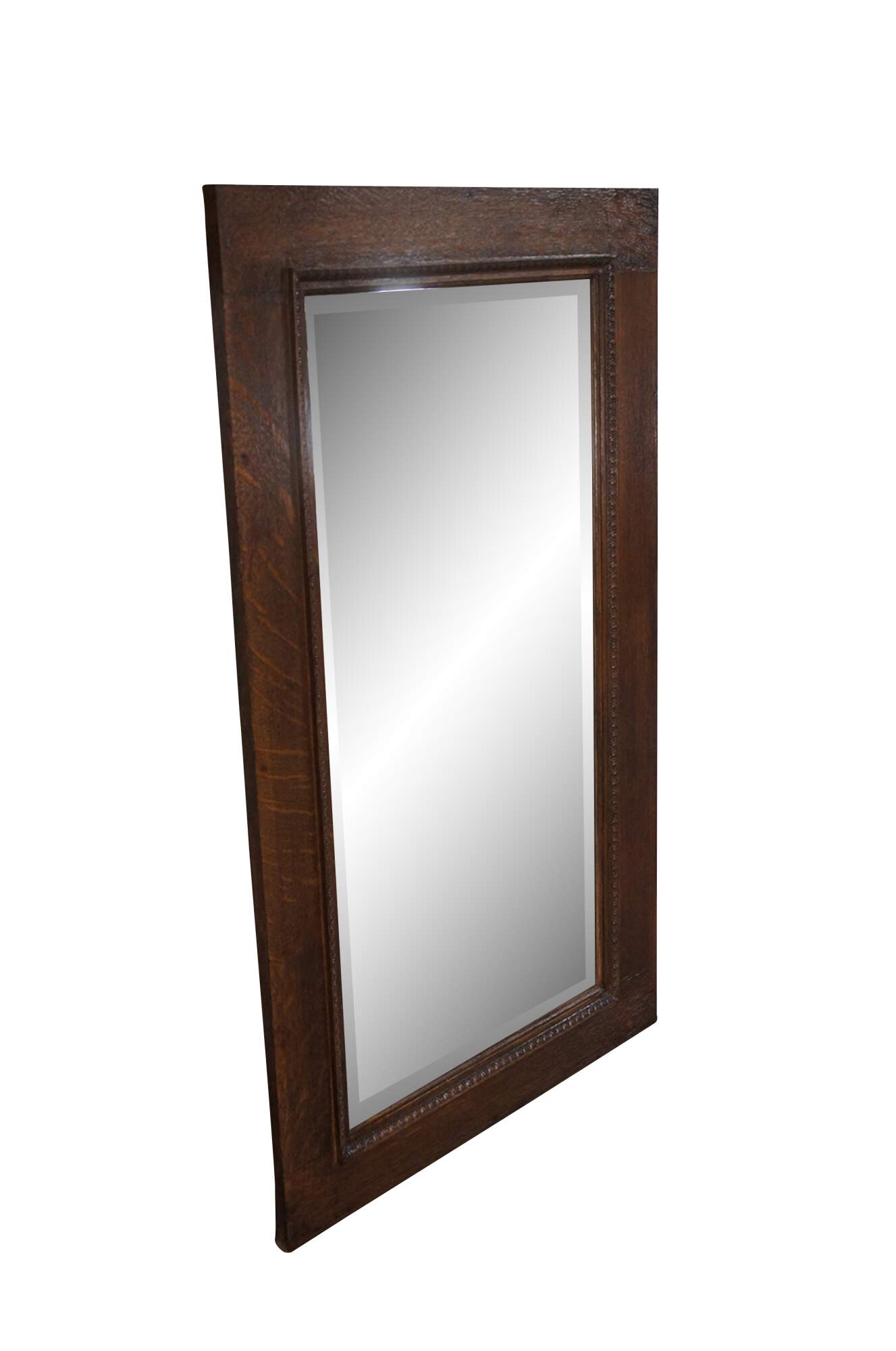 Antique mission / arts and crafts quartersawn oak wall or vanity mirror featuring rectangular form with egg and dart molding and bevelled mirror.