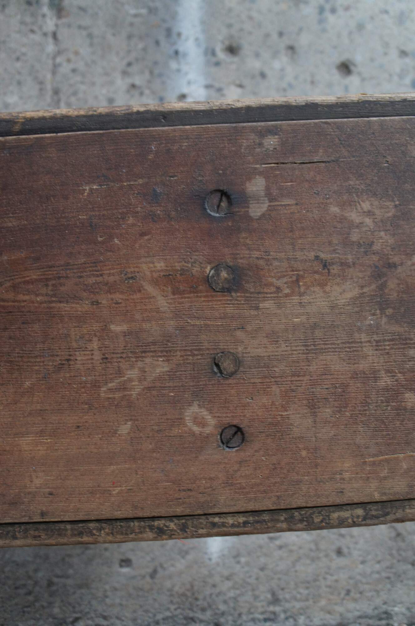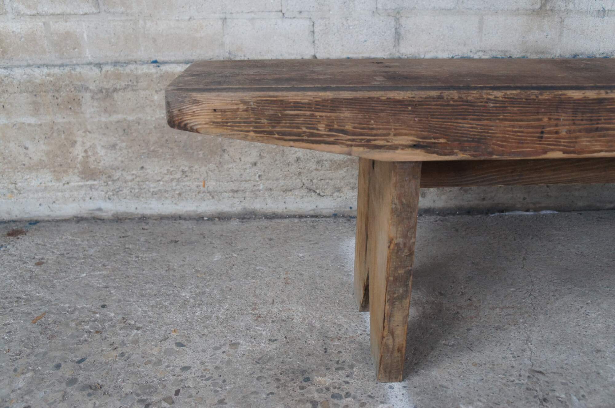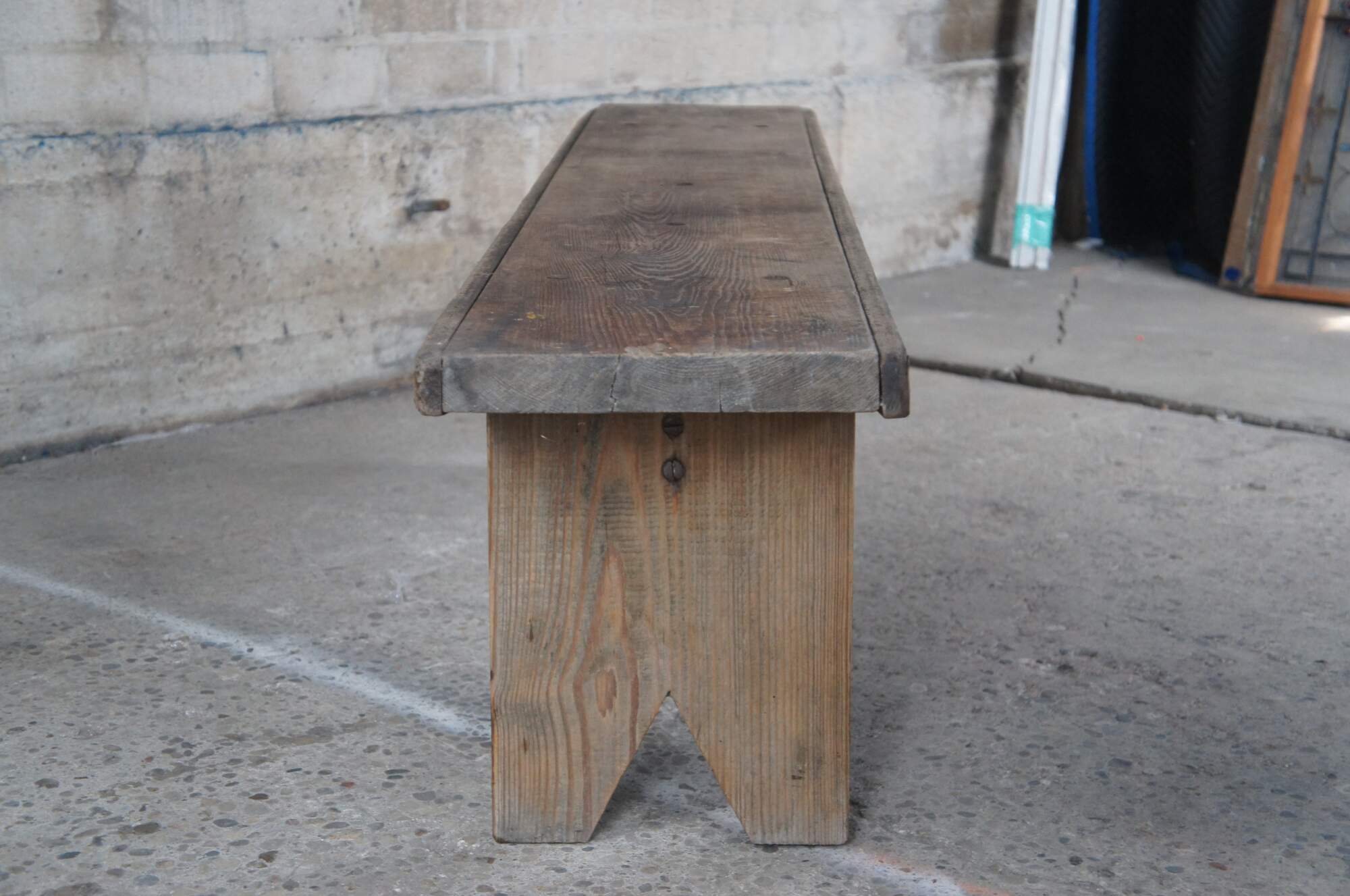A beautiful Arts & Crafts farmhouse pine bench. Features a distressed rustic patina. Built using large old flat head screws