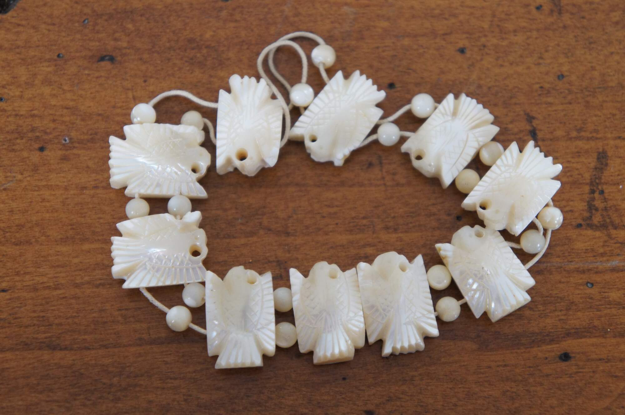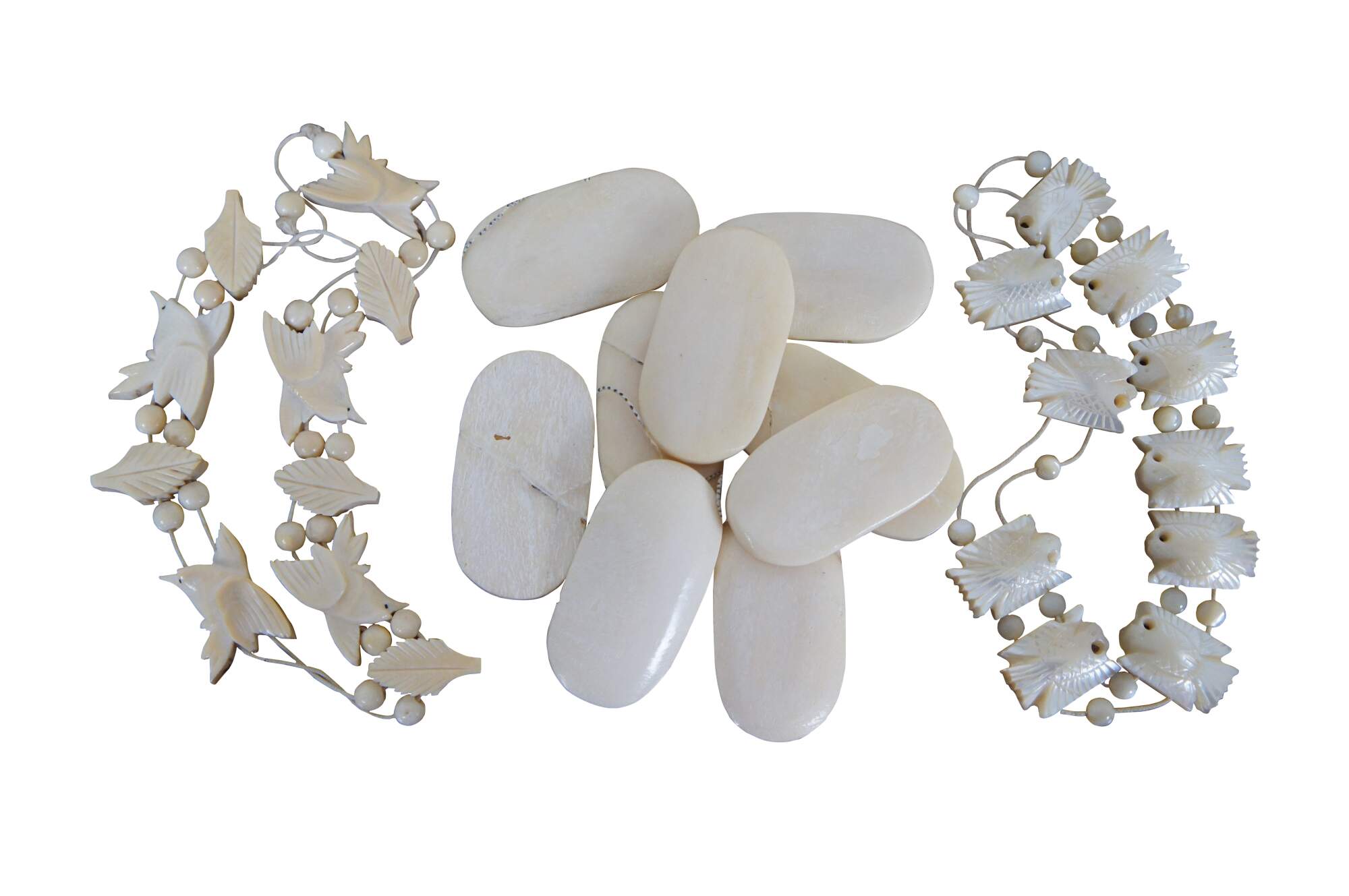 Lot of 5 antique and vintage sets of carved bone and mother of pearl beads in a variety of shapes. All need re-stringing.