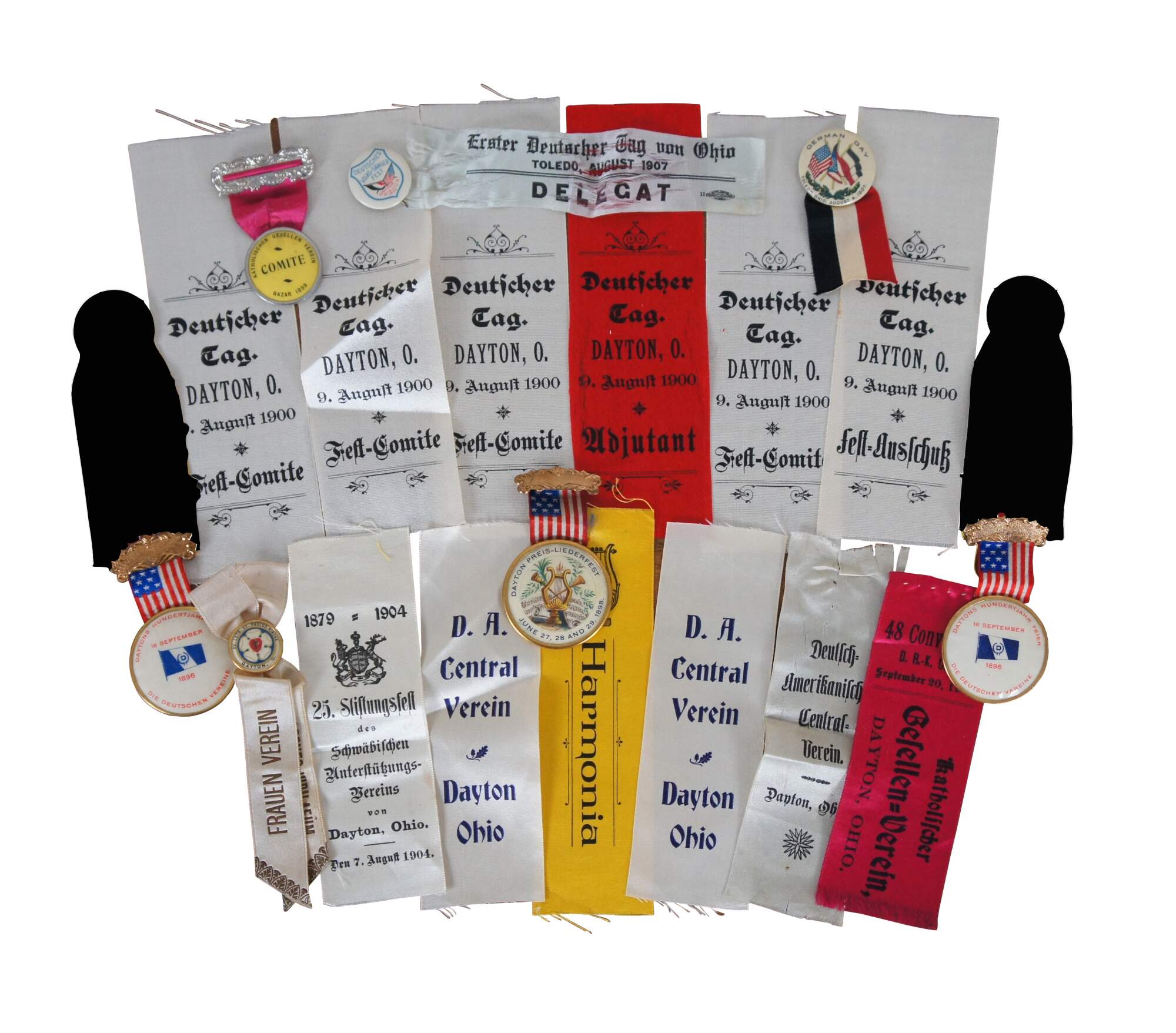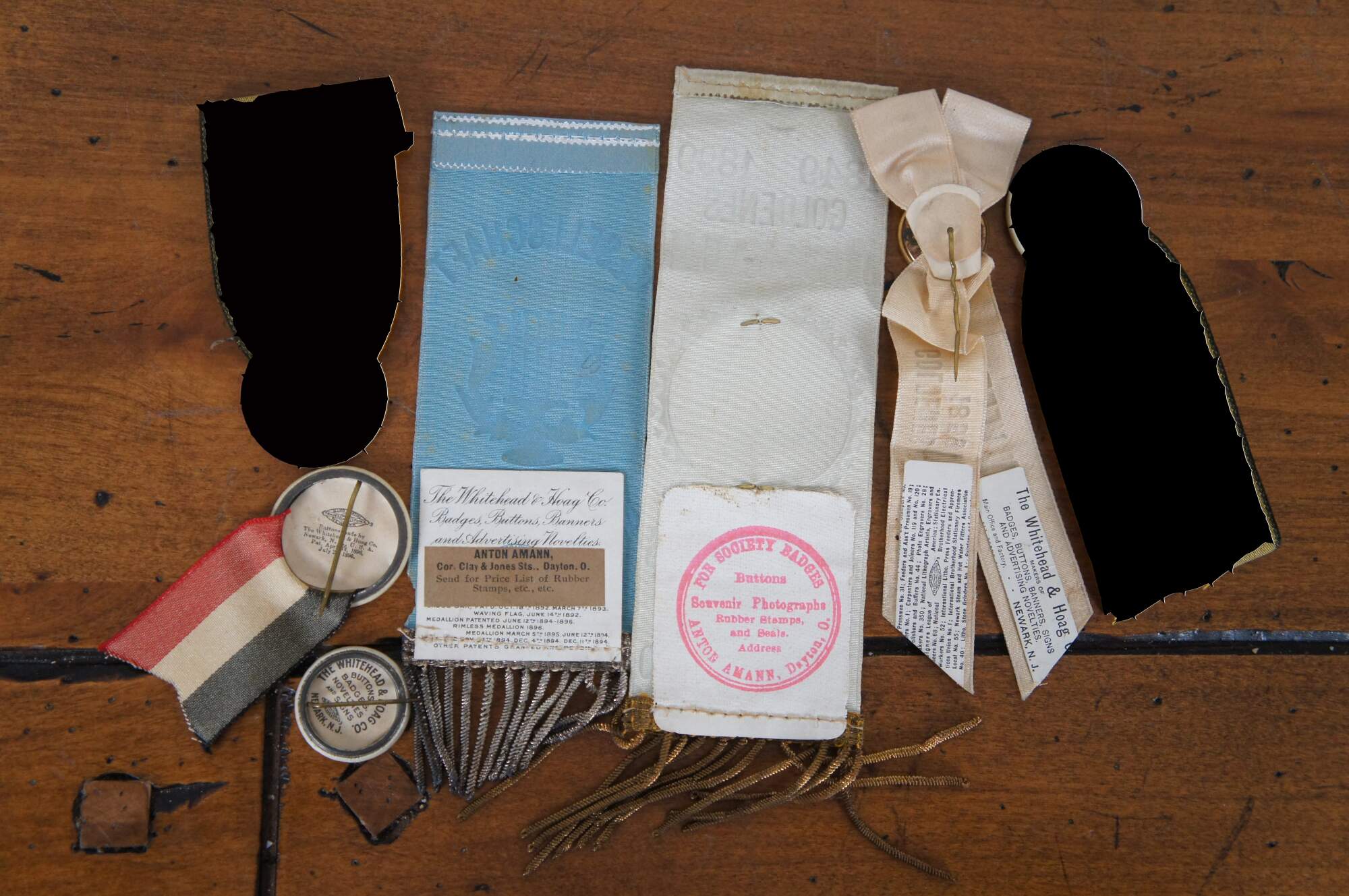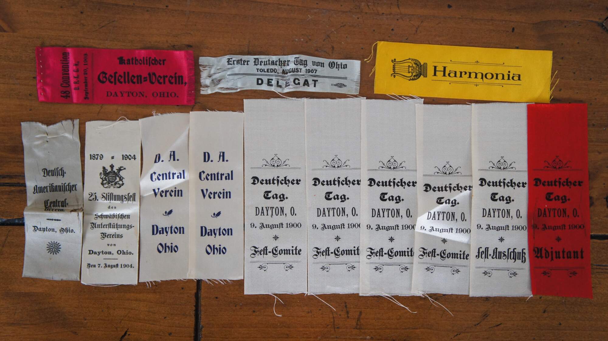 Large rare lot of 41 assorted late 19th – early 20th century antique labor union ribbons / pins, primarily from the German speaking community of Dayton, Ohio, plus a smattering of other cities including Cincinnati, Piqua, and Canton Ohio; Covington, Kentucky; and Milwaukee, Wisconsin.
