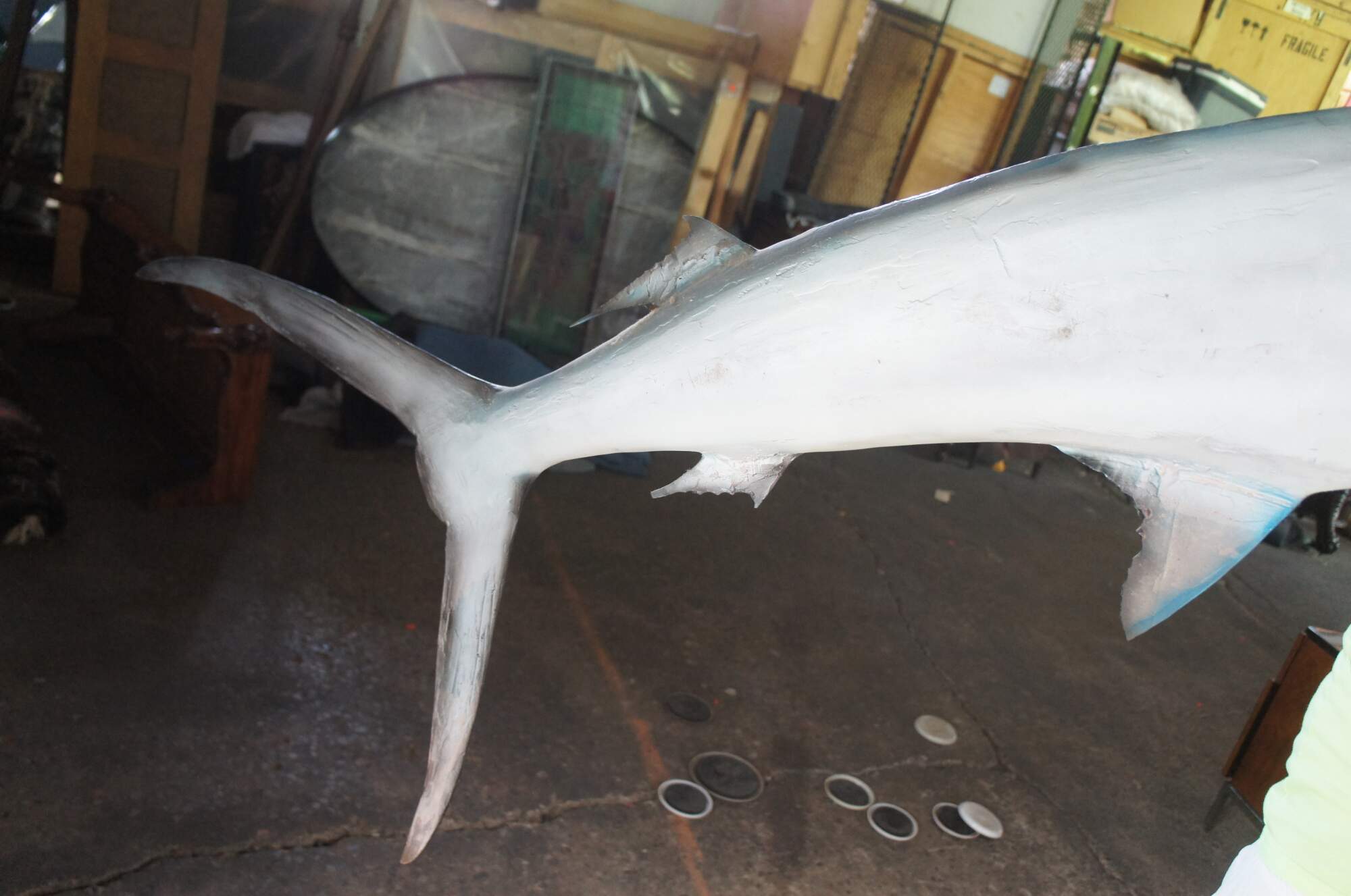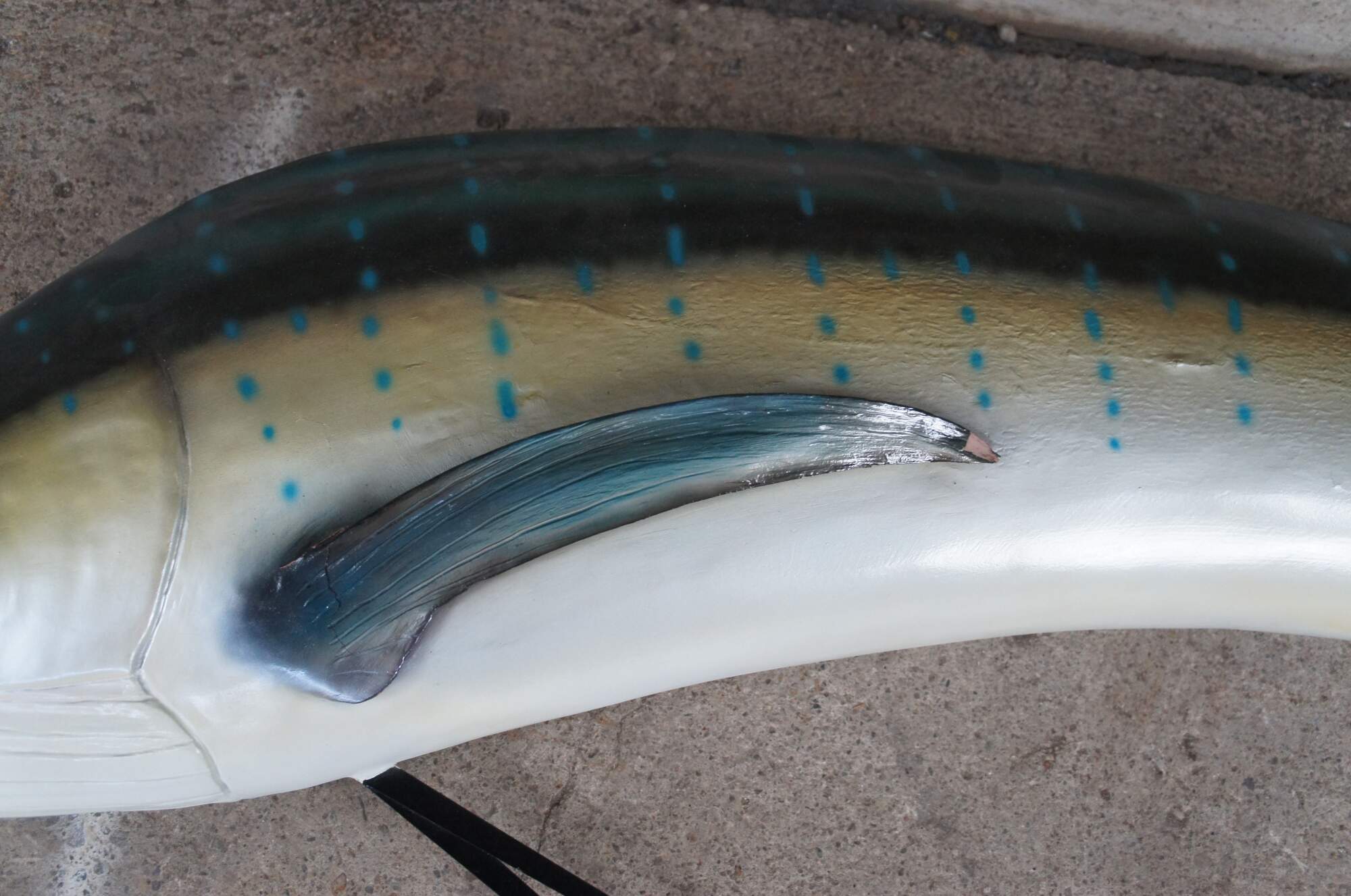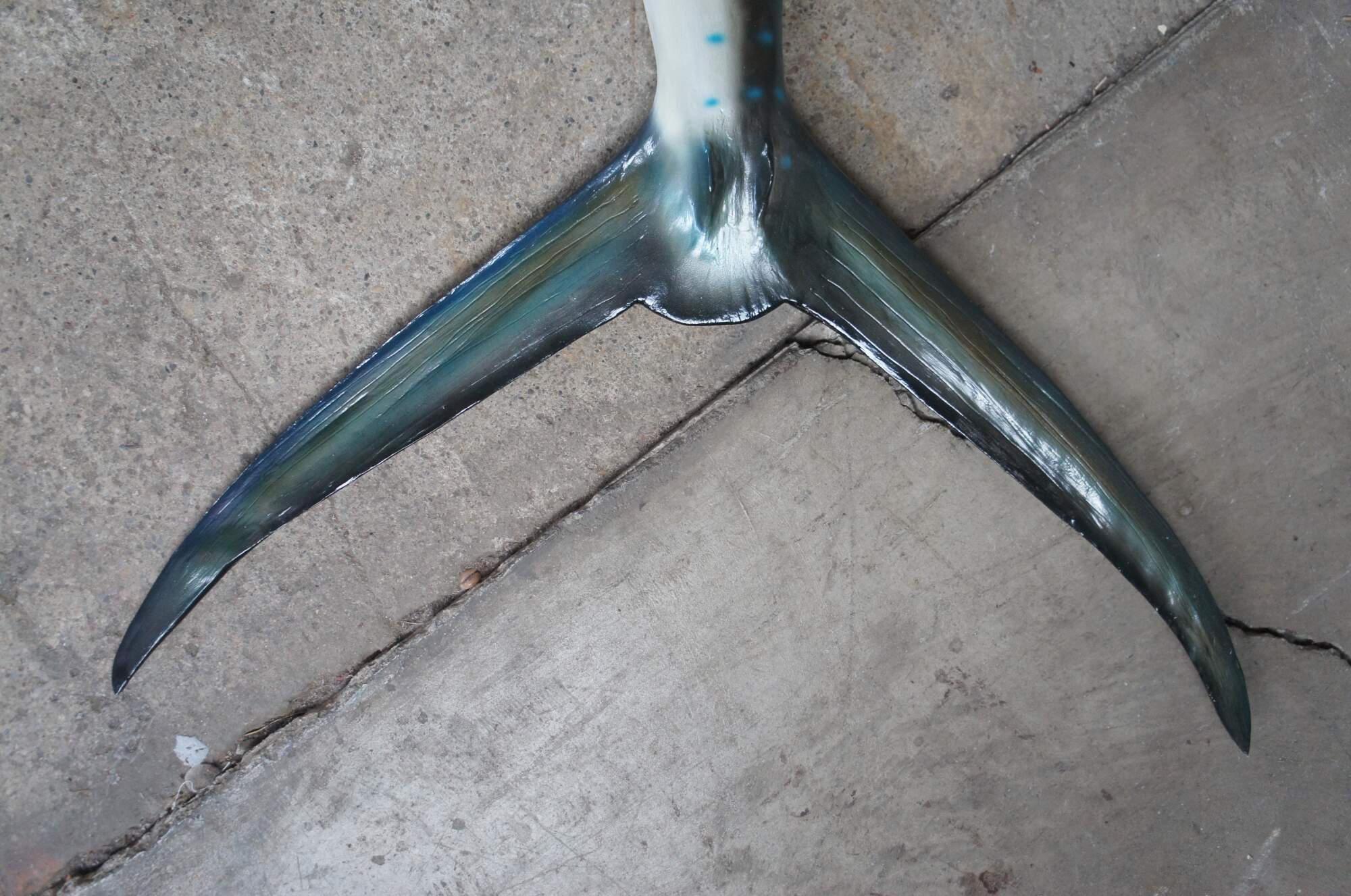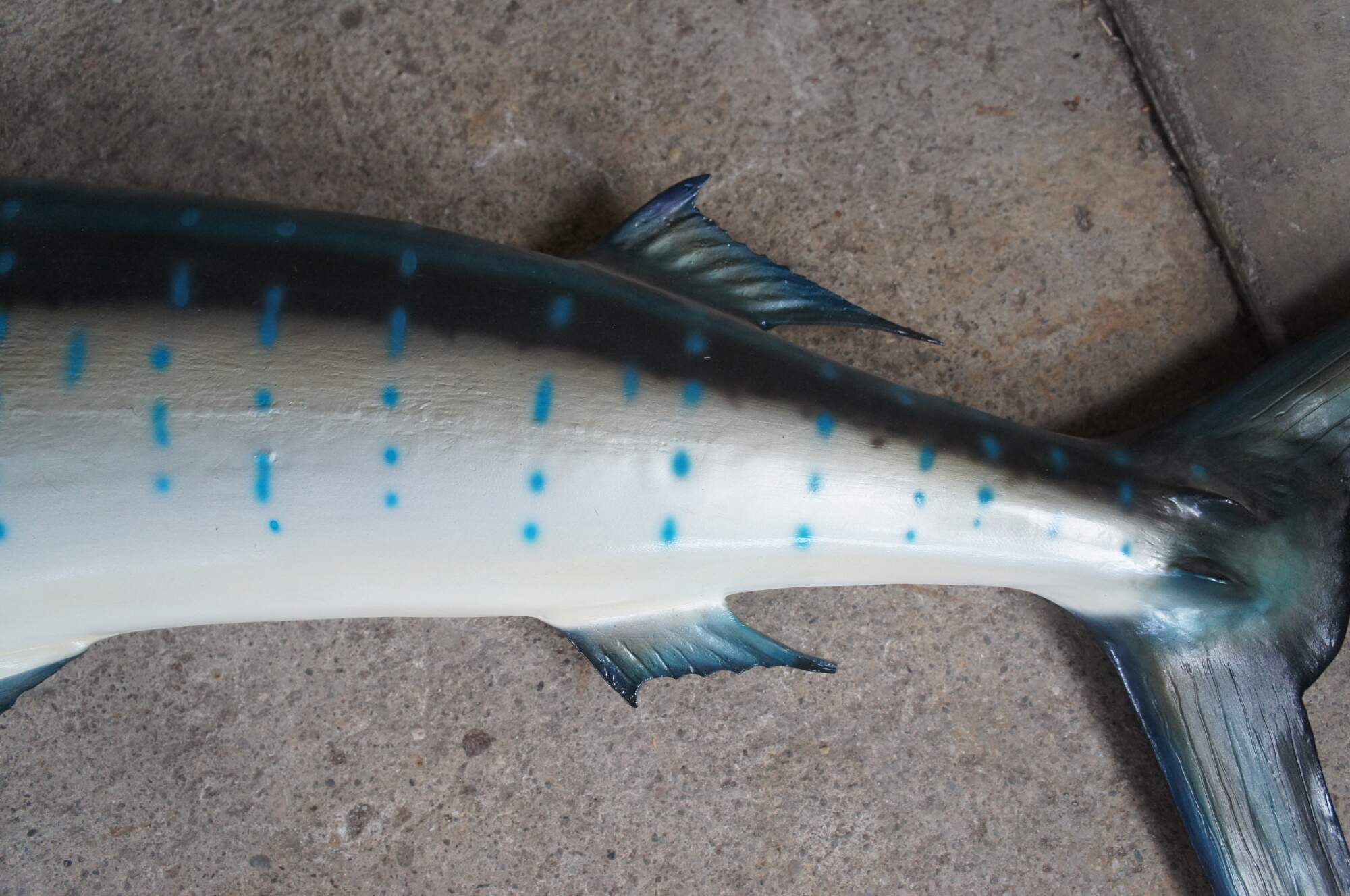 A vintage replica Marlin mount. Made from wood with hand painted details. Mounts via horshoe shaped hook along the back