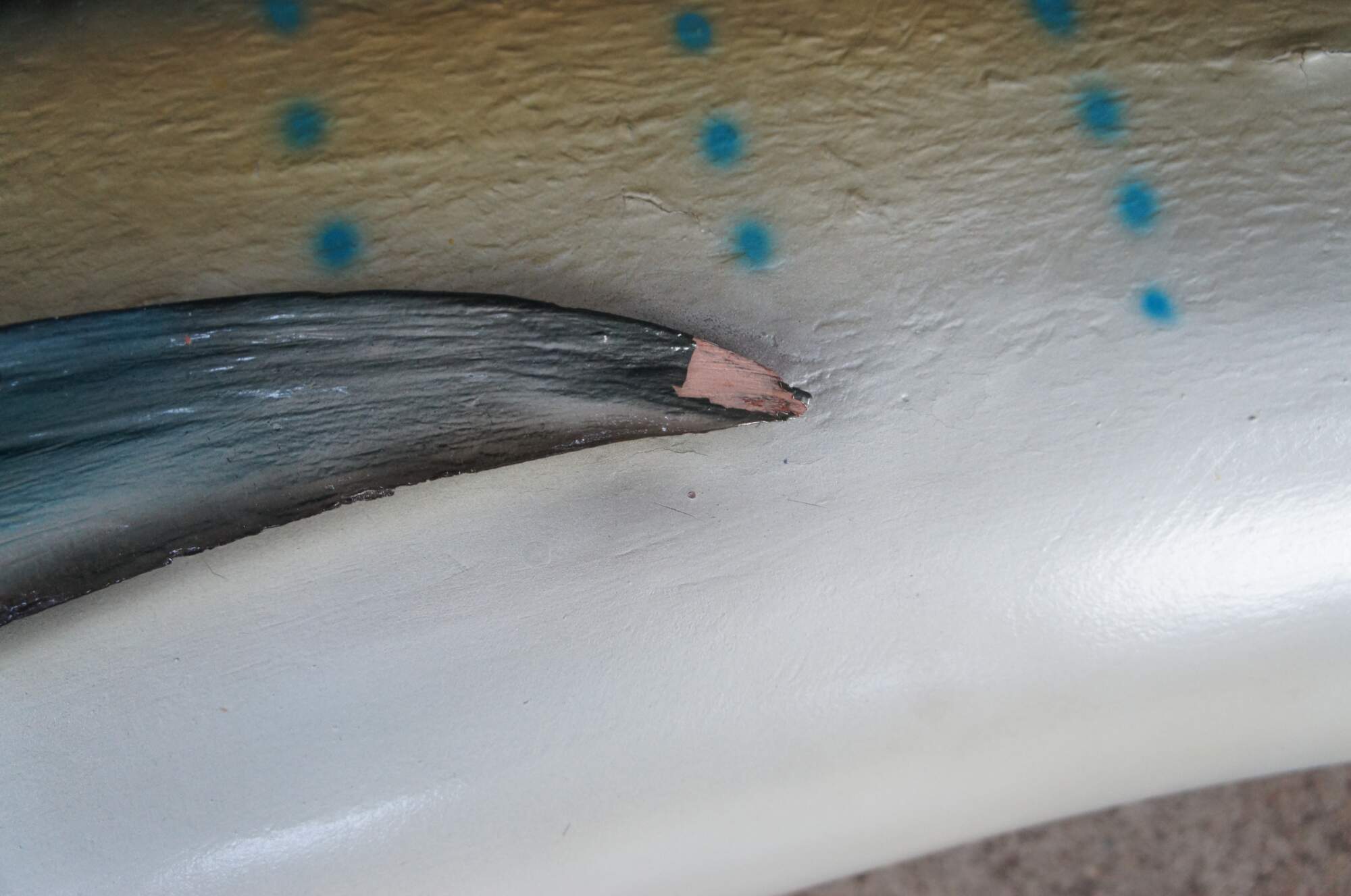 Good Vintage Condition; slight edge wear, chip to one of the fins along the body