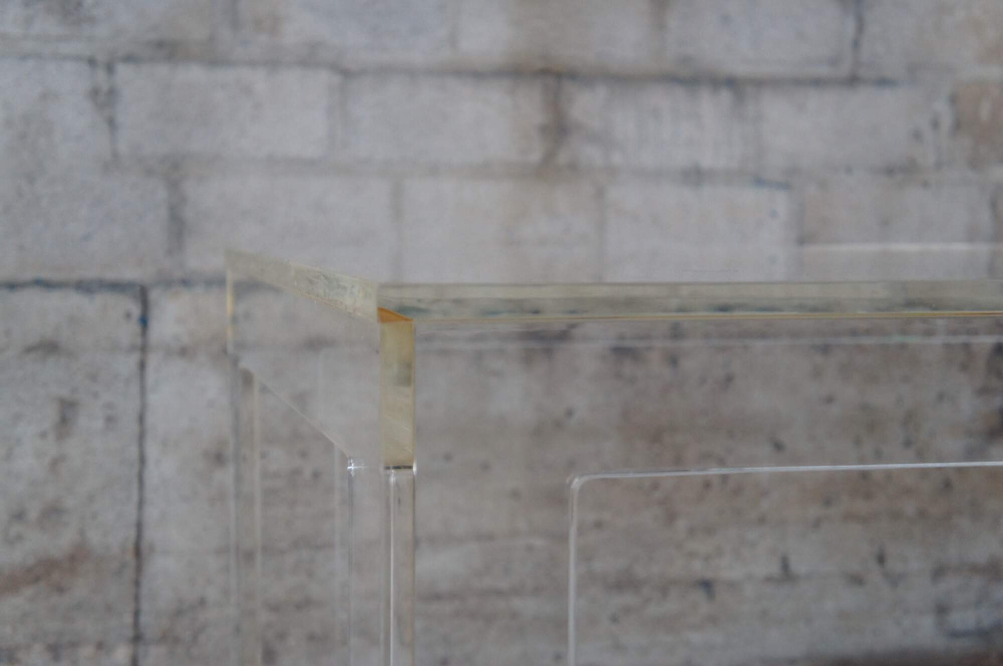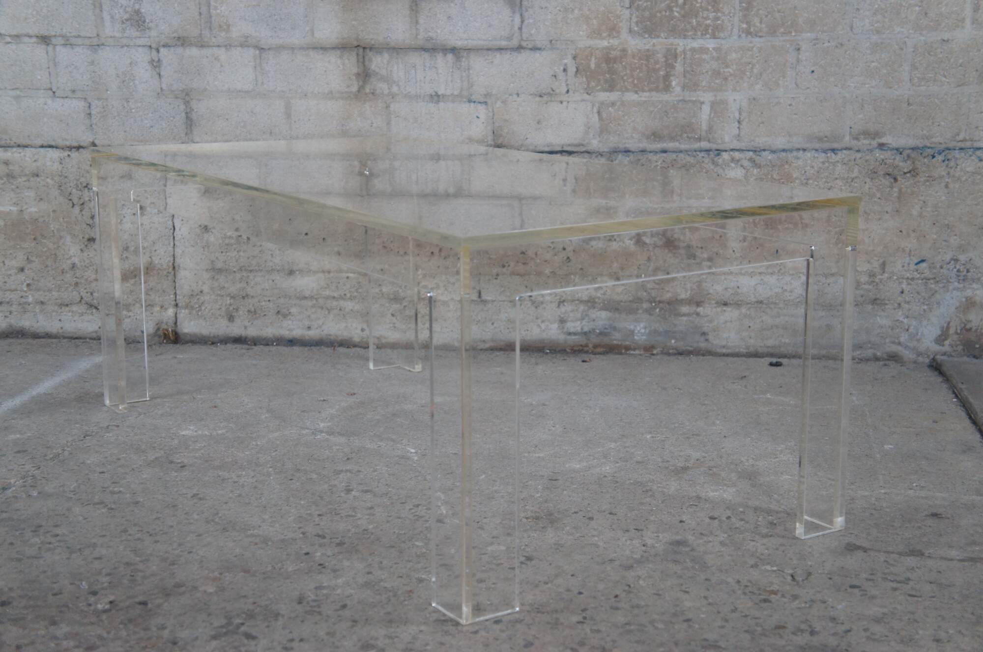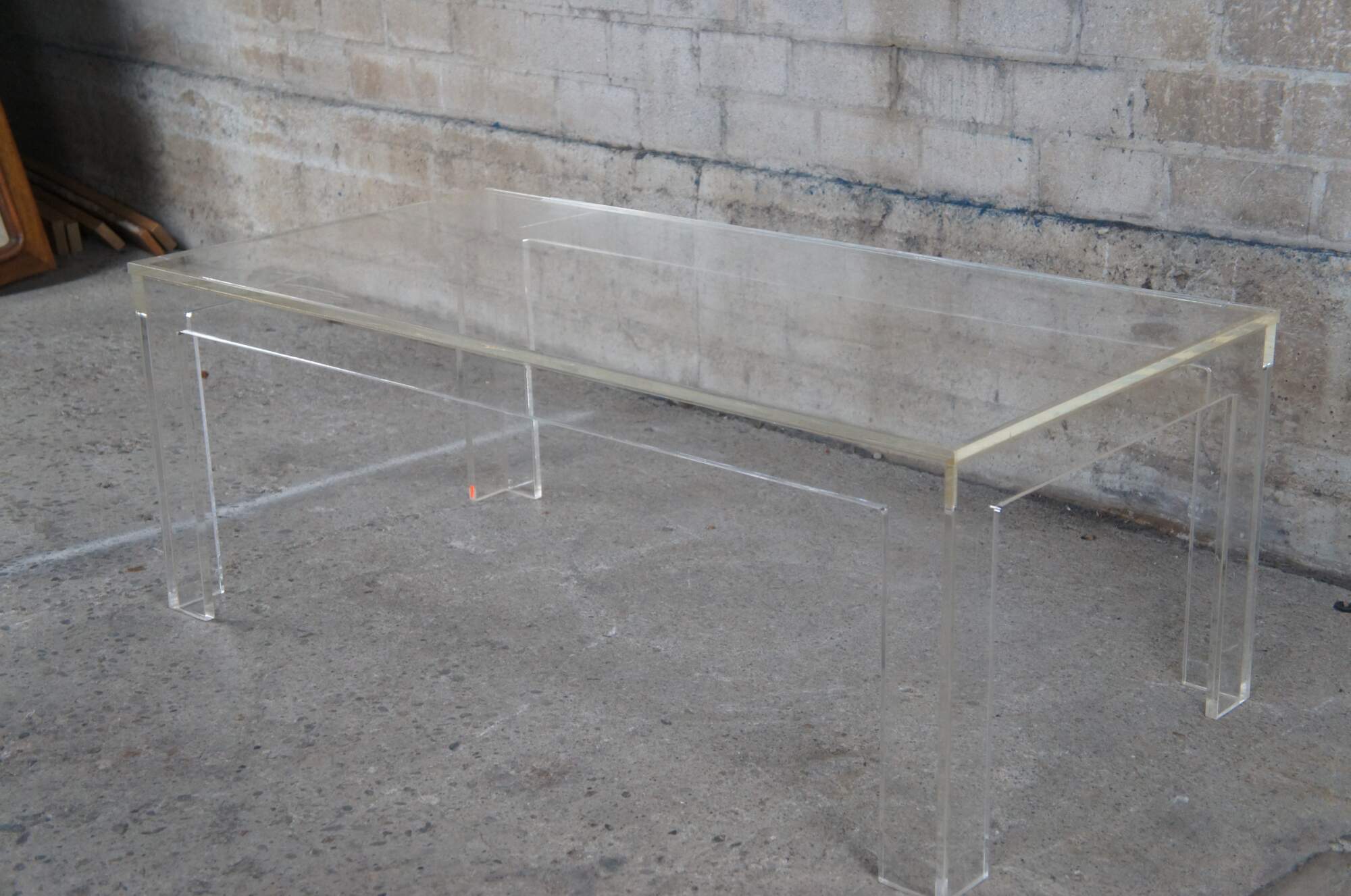 Mid century Modern Parsons lucite coffee table featuring rectangular form.