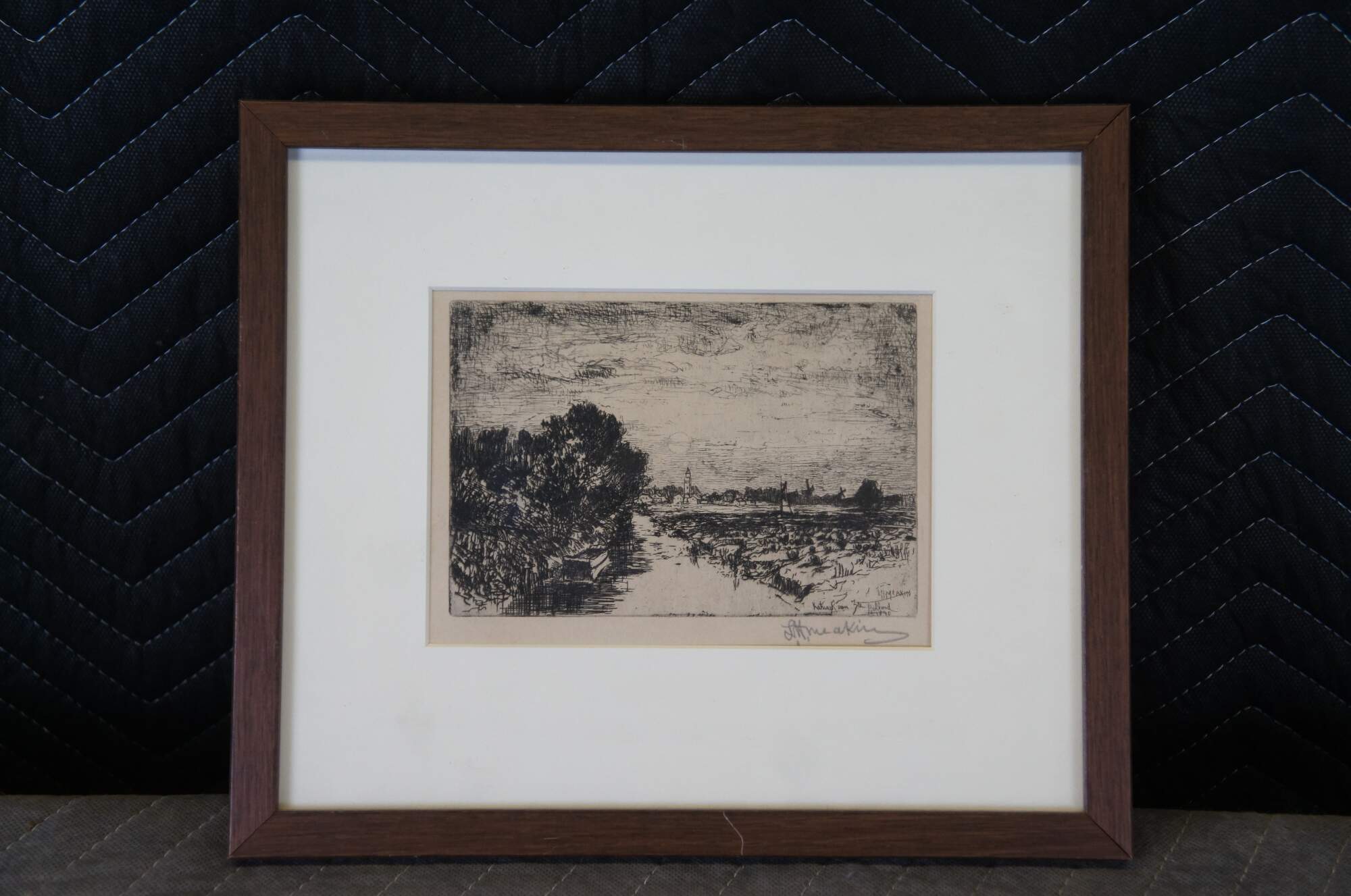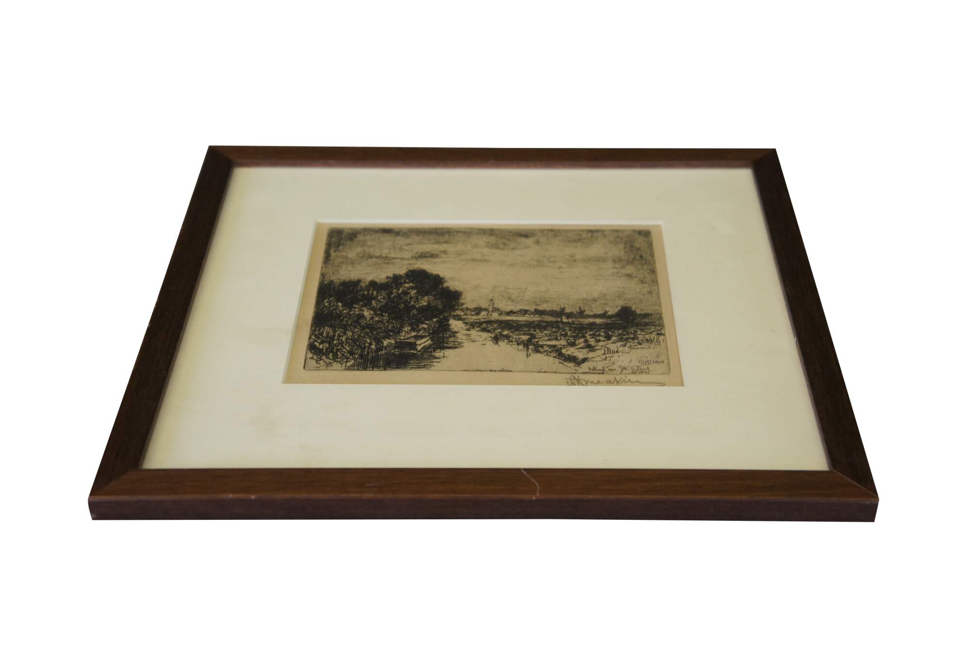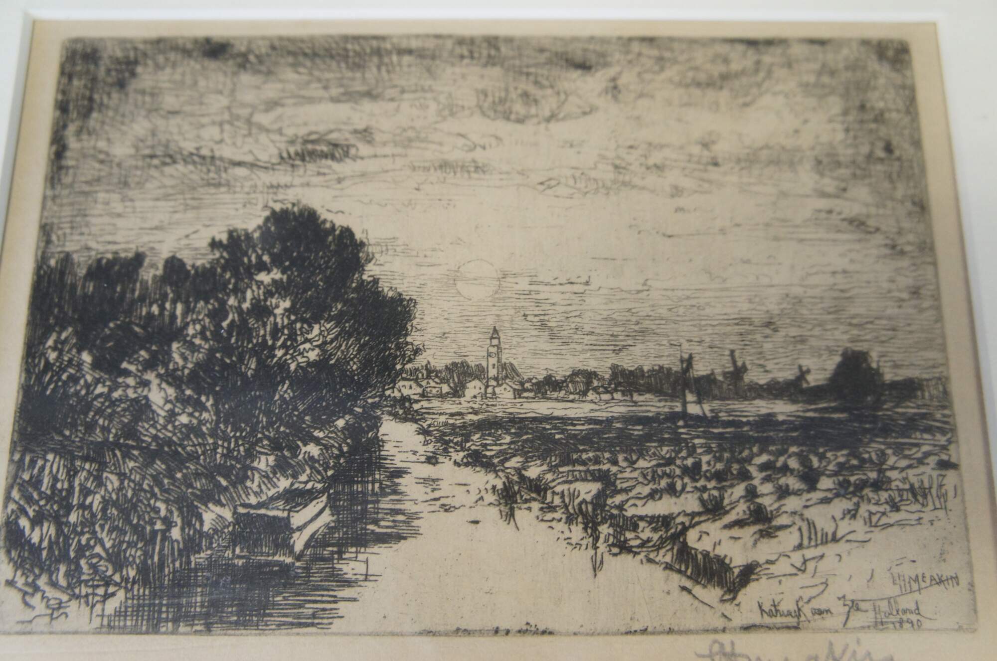 Born in Newcastle, England on 12 July 1850, Meakin enrolled in the McMicken School of Design at the University of Cincinnati under the watchful eye of Thomas S. Noble. Urged on by the recommendations of the Cincinnati art community to study in Munich, Meakin followed that advice and celebrated his thirtieth birthday in Europe. Here among his Cincinnati painter-colleagues, Meakin worked diligently for four years under Professors Ludwig Loefftz, Nikolaus Gysis, and Karl Raupp. Painting in the plein air method and executing works in a variety of media, including etching, Meakin made frequent sojourns to picturesque spots such as Schließheim and Augsburg. He may have urged J. Frank Currier to take up etching (Weimer, 1940, p. 459).