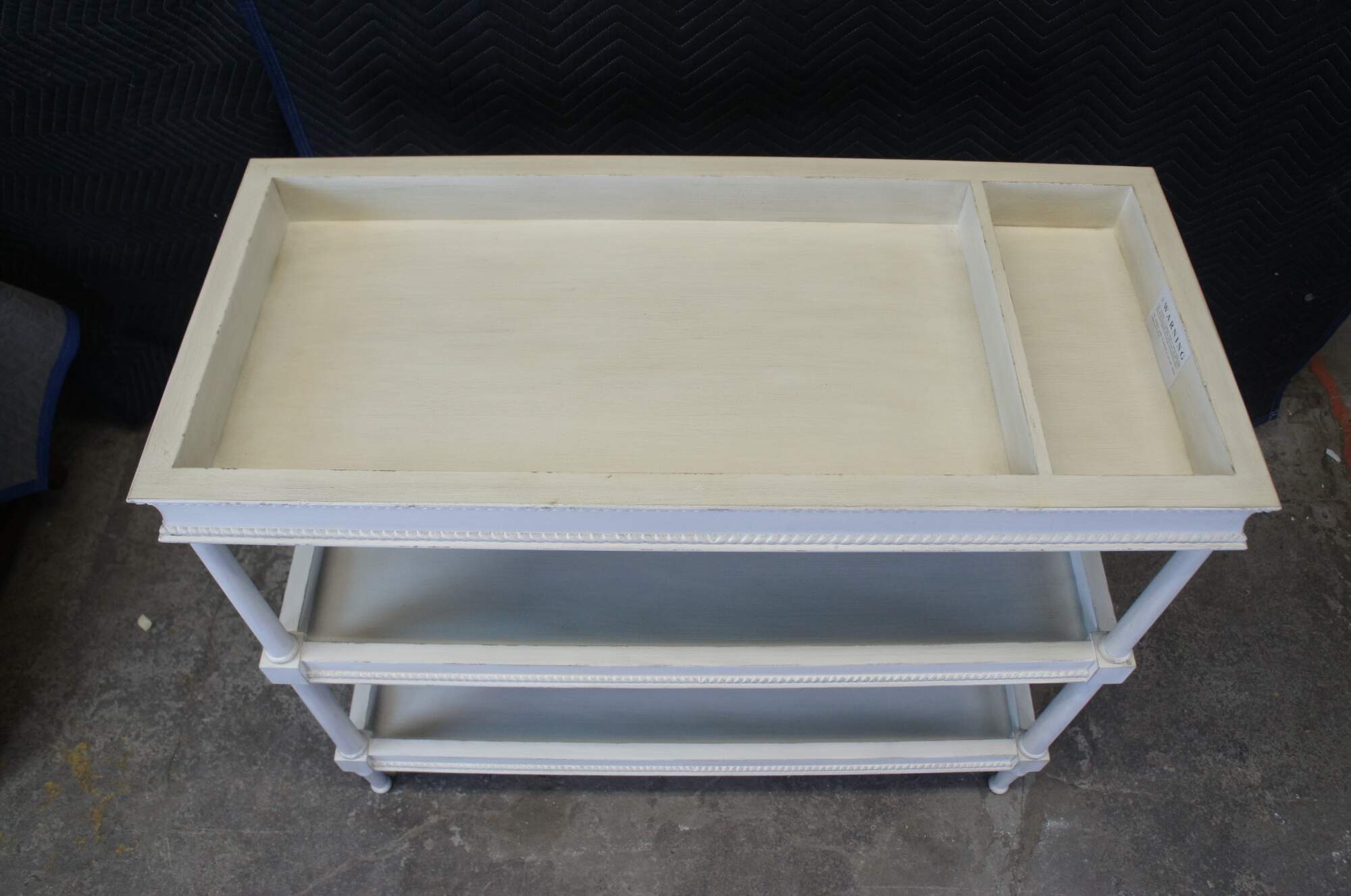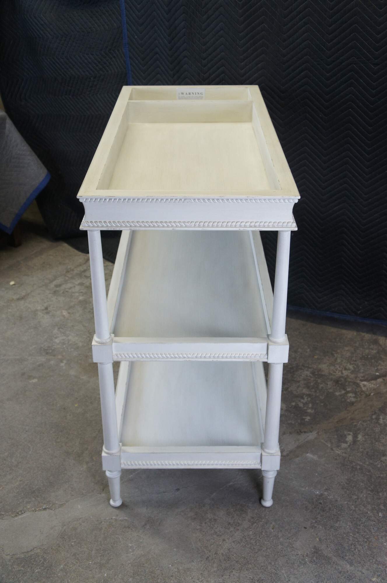 Finish is carefully distressed using a hand-applied multistep process designed to achieve the look of a timeworn antique