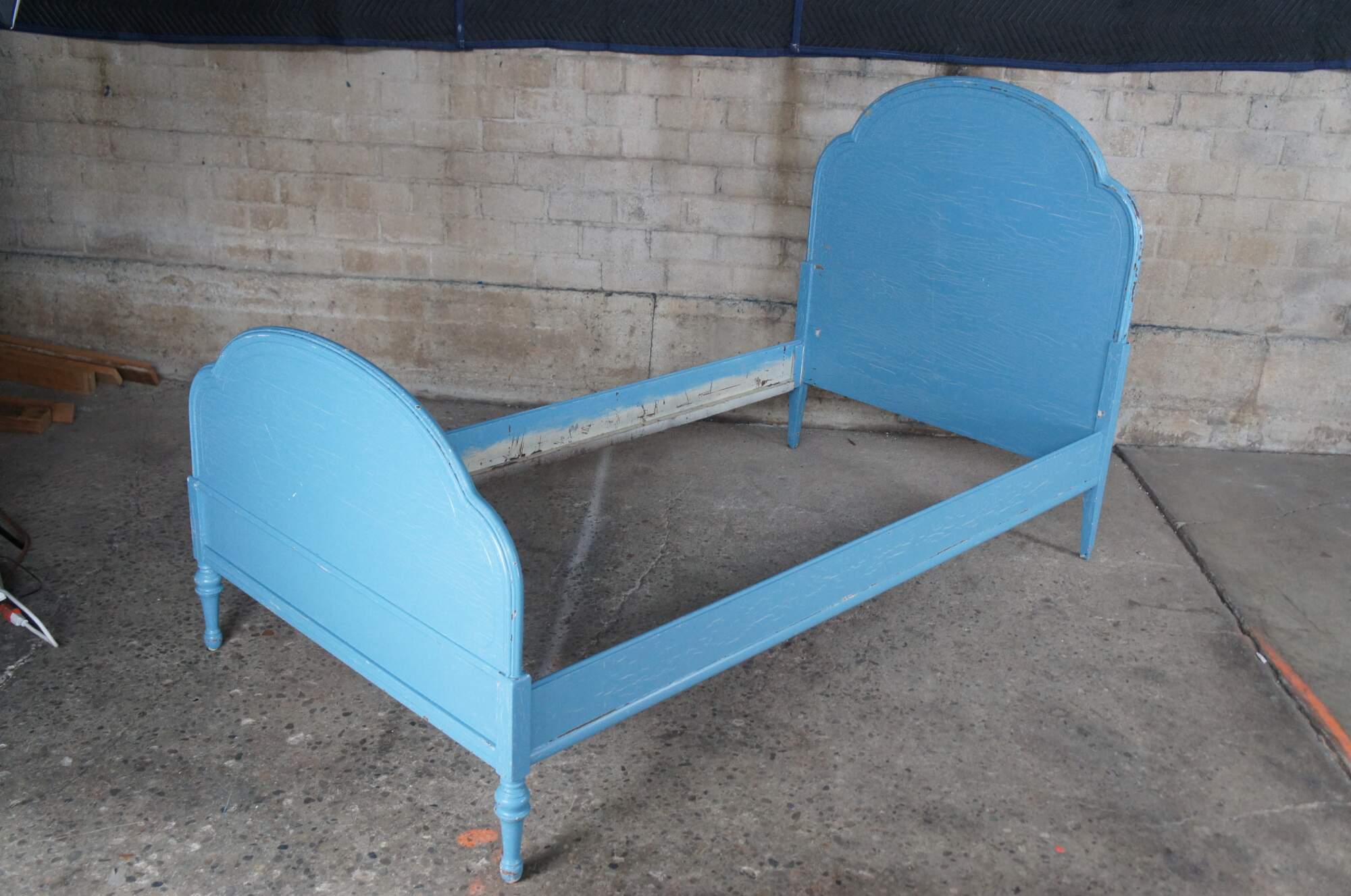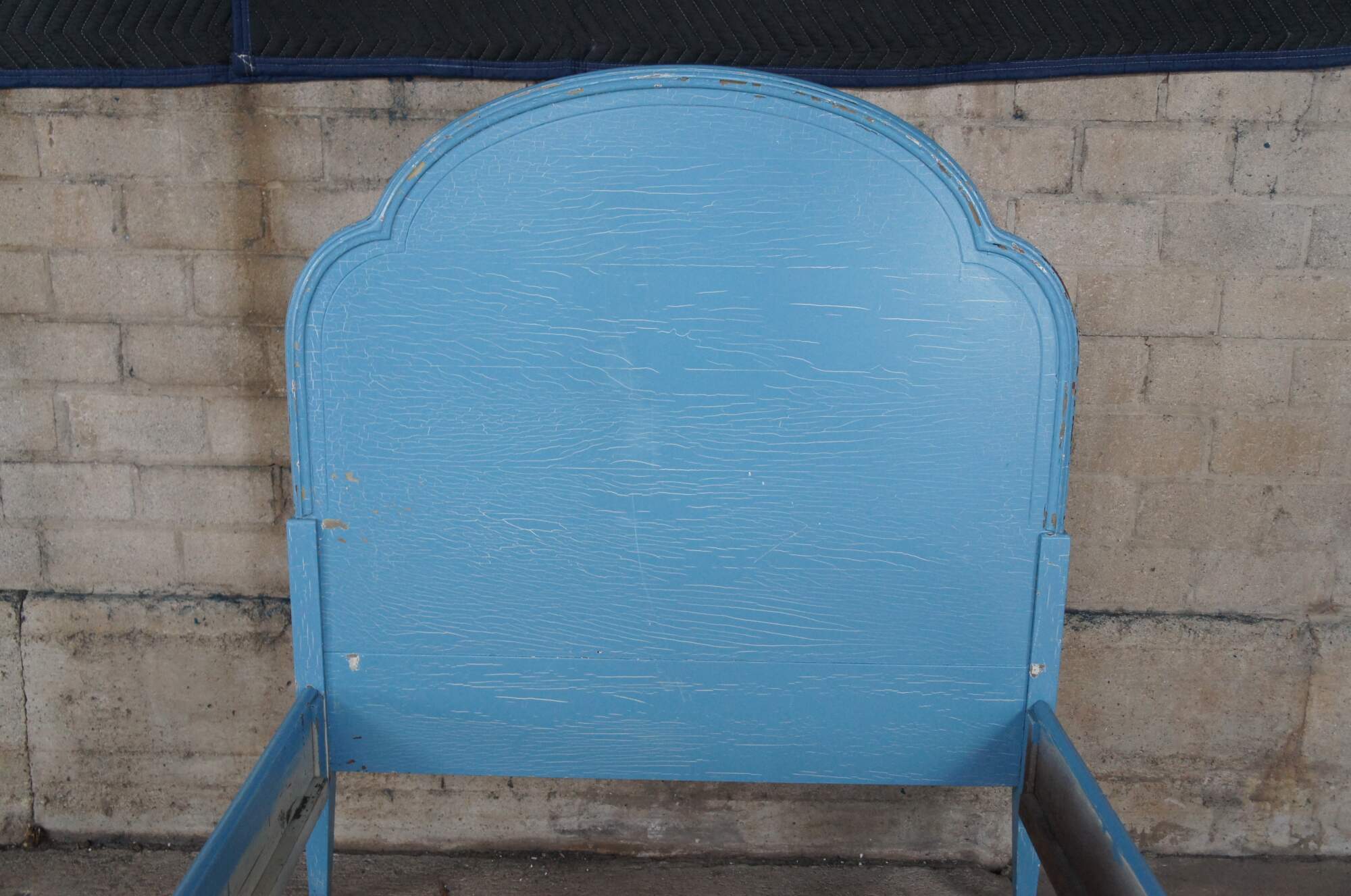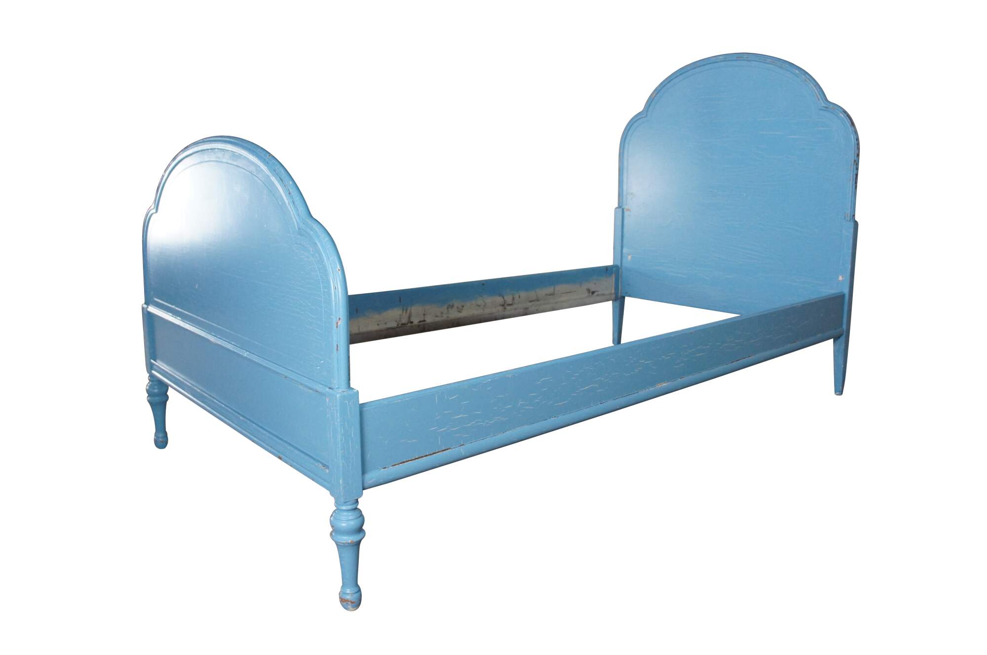 2 Antique Georgian style beds by Berkey & Gay, circa 1920. Made from walnut with a blue painted crackle finish. Reminiscent of clourds.