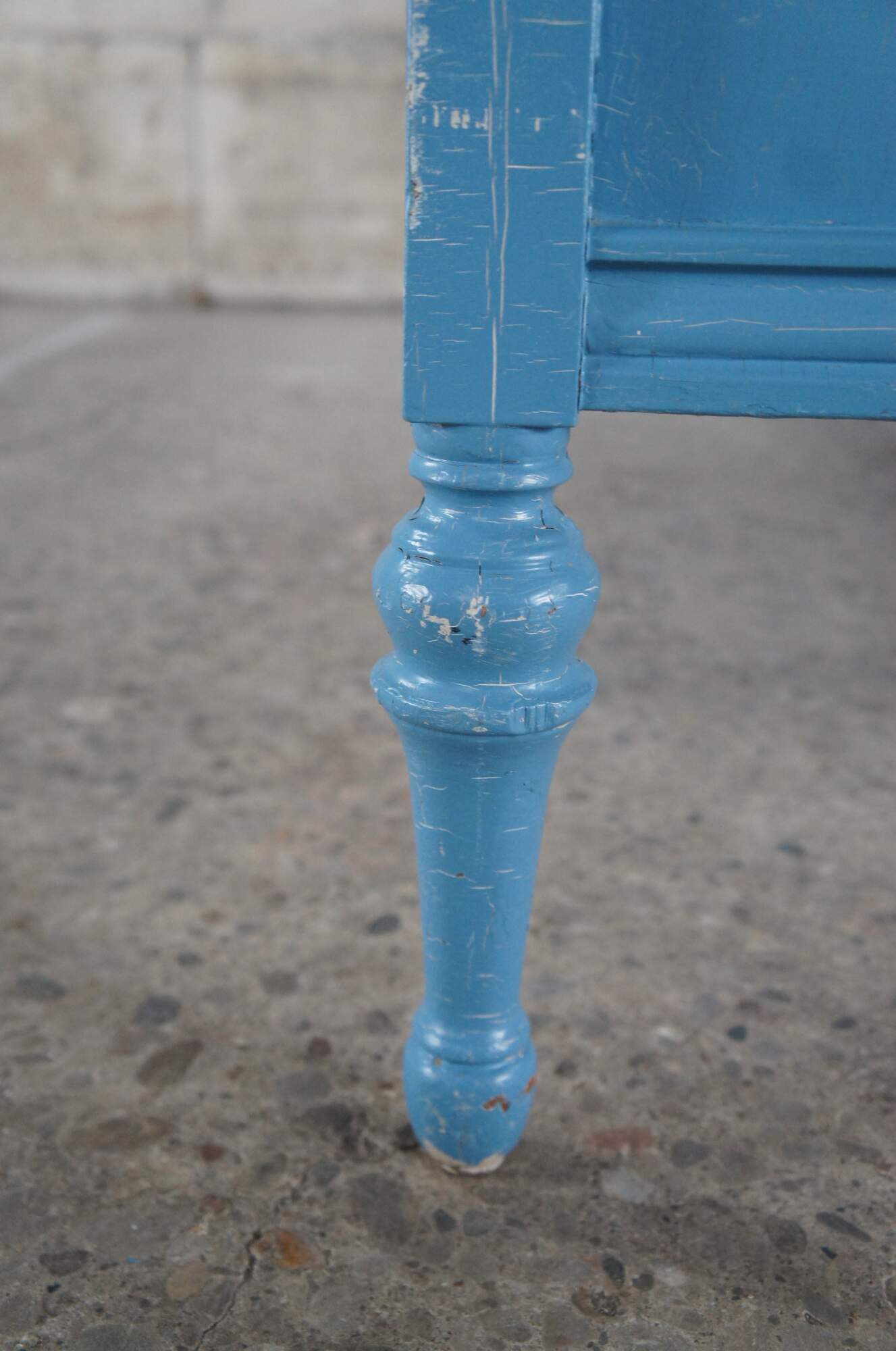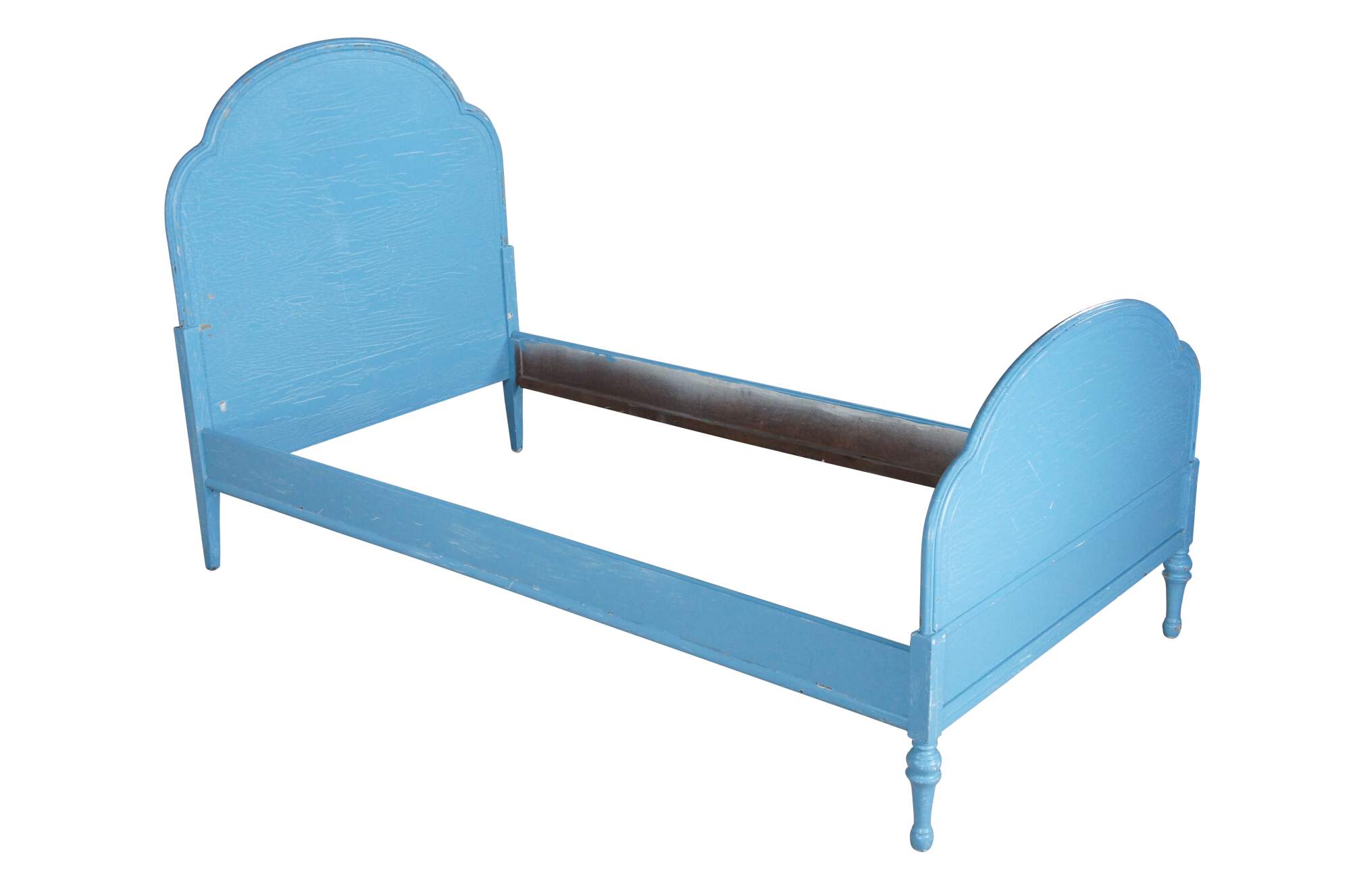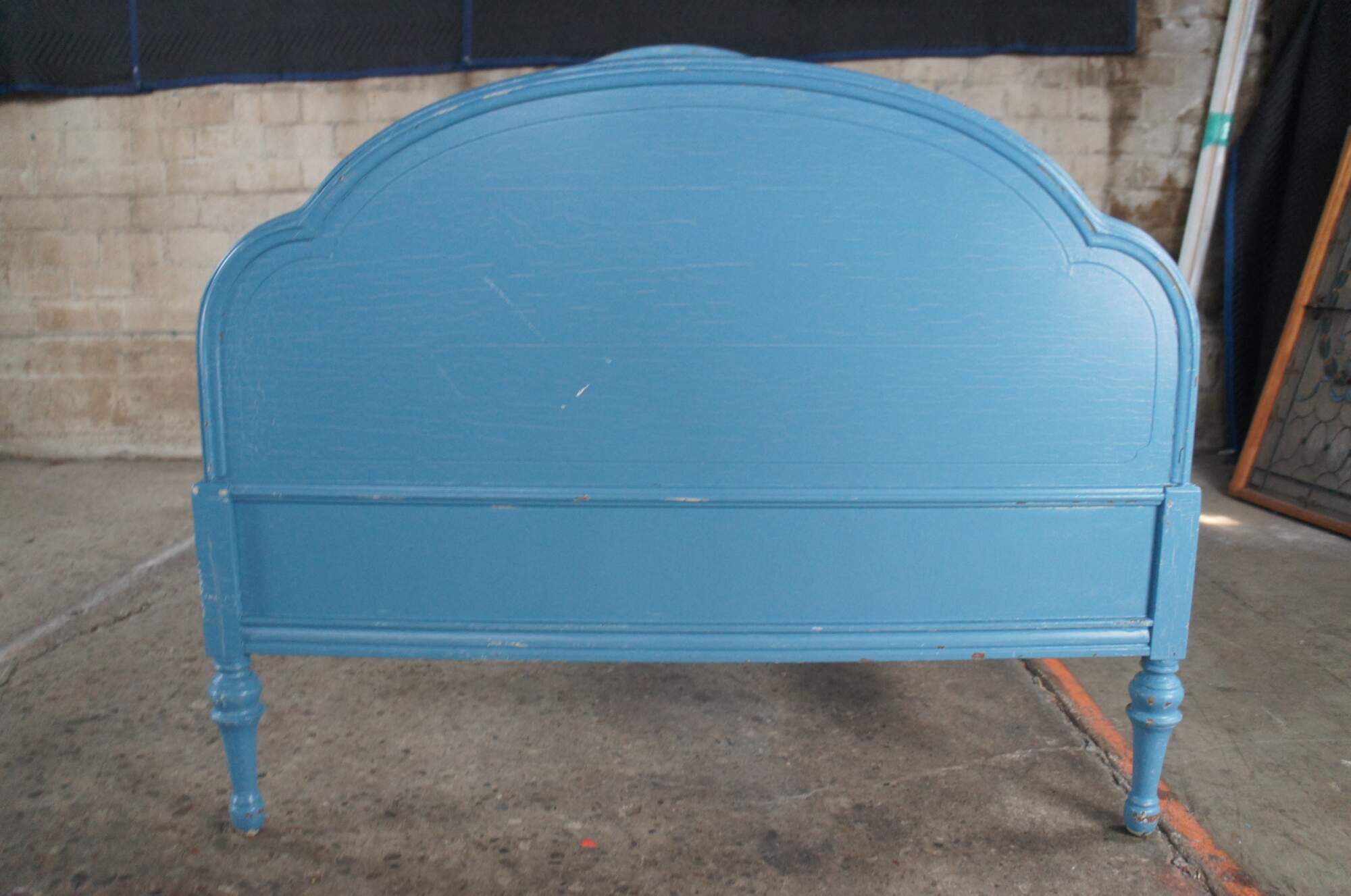 2 Antique Georgian style beds by Berkey & Gay, circa 1920. Made from walnut with a blue painted crackle finish. Reminiscent of clourds.