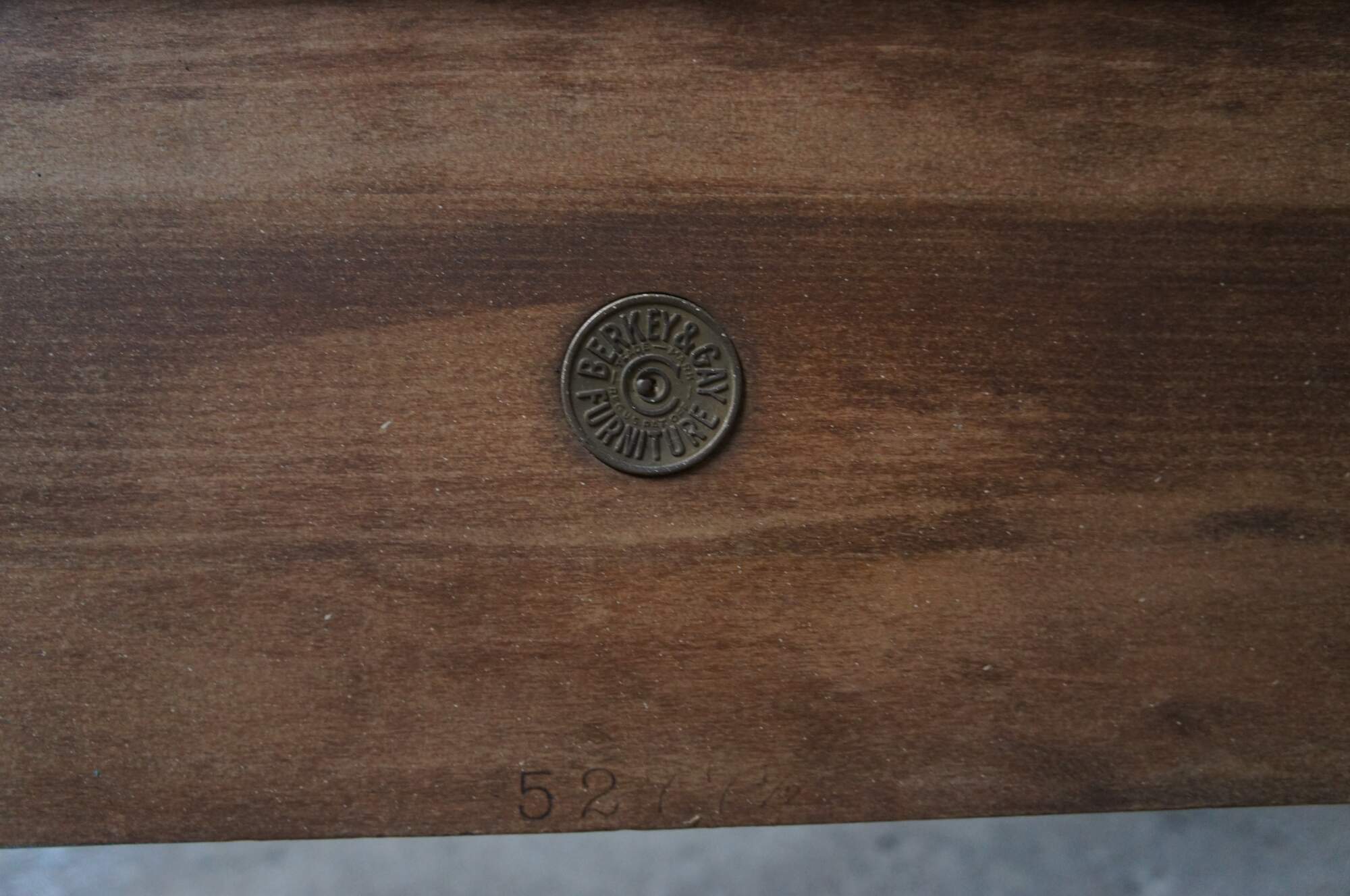 The Berkey & Gay Furniture Company used three different types of labels to mark the furniture that they manufactured. The first label was branded into the wood and can often be found inside the drawers of the Berkey & Gay case pieces. Around the year 1900 the branded type label was replaced by a paper label. The brass label was used starting around the 1920's until Berkey and Gay went out of business in the 1940's.