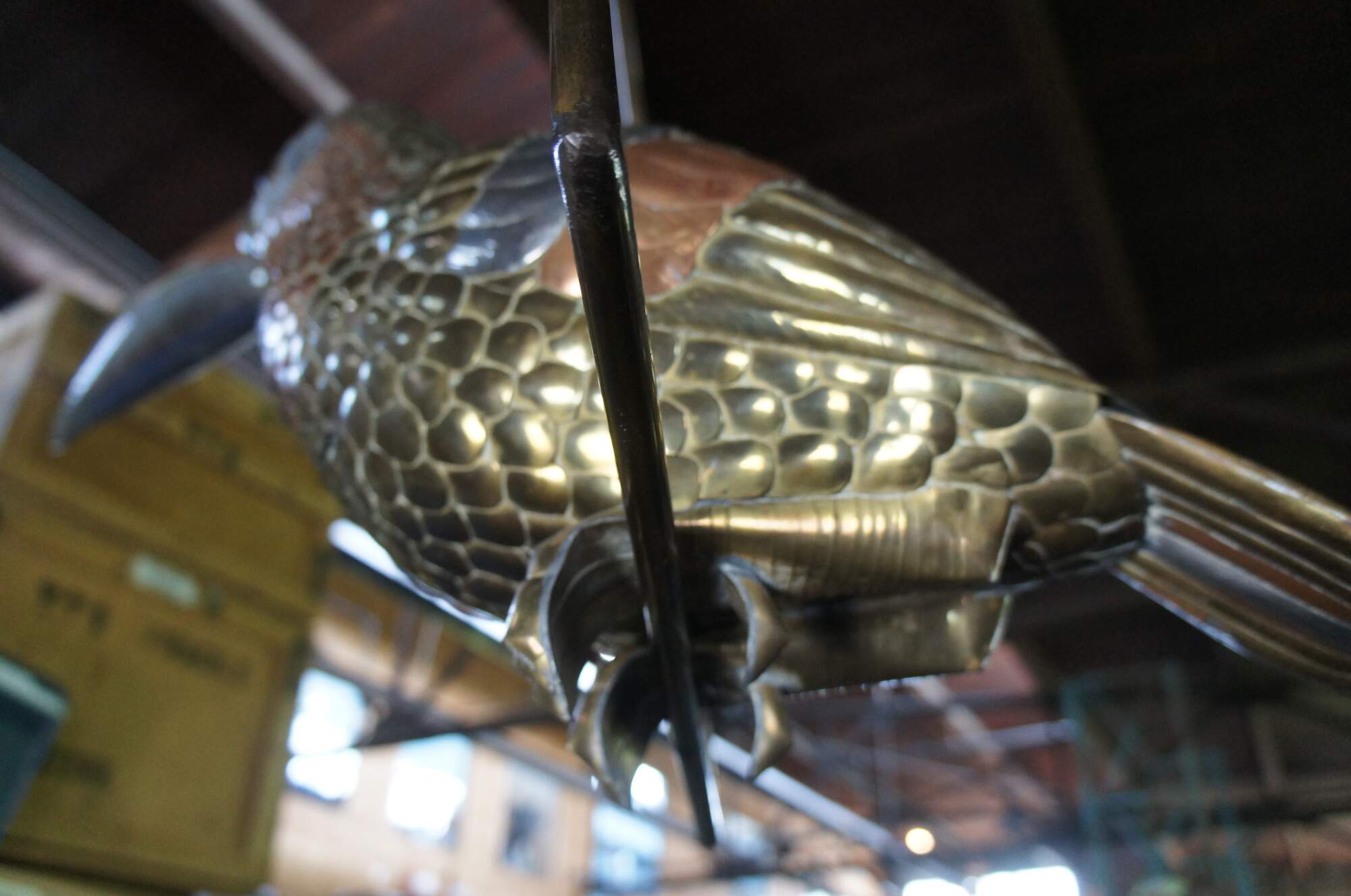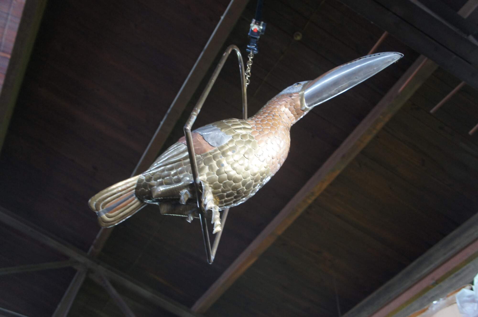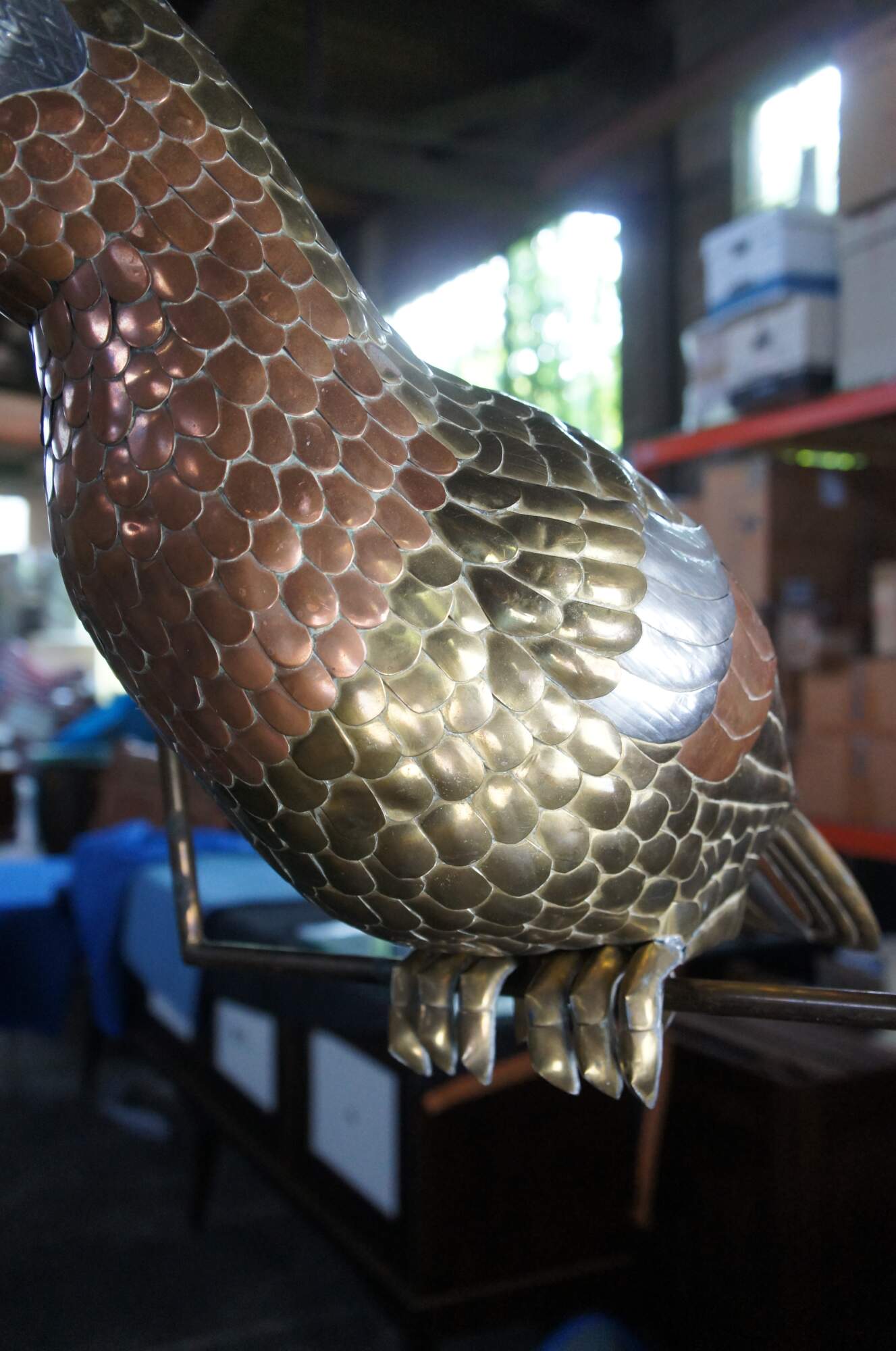 Impressive Toucan sculpture by Sergio Bustamante, circa 1970s. Sergio is a renouned Mexican artist and sculptor. He was born in Culiacan, Sinaloa, in 1949, and studied architecture at the University of Guadalajara. Bustamante's first art exhibition showcased paintings and papier-mâché figures at the Galeria Misracha in Mexico City in 1966. This beautiful specimen is made from copper, brass and nickel. The bird is perched on a stand which has a chain for hanging. Signed along the beak #55/100