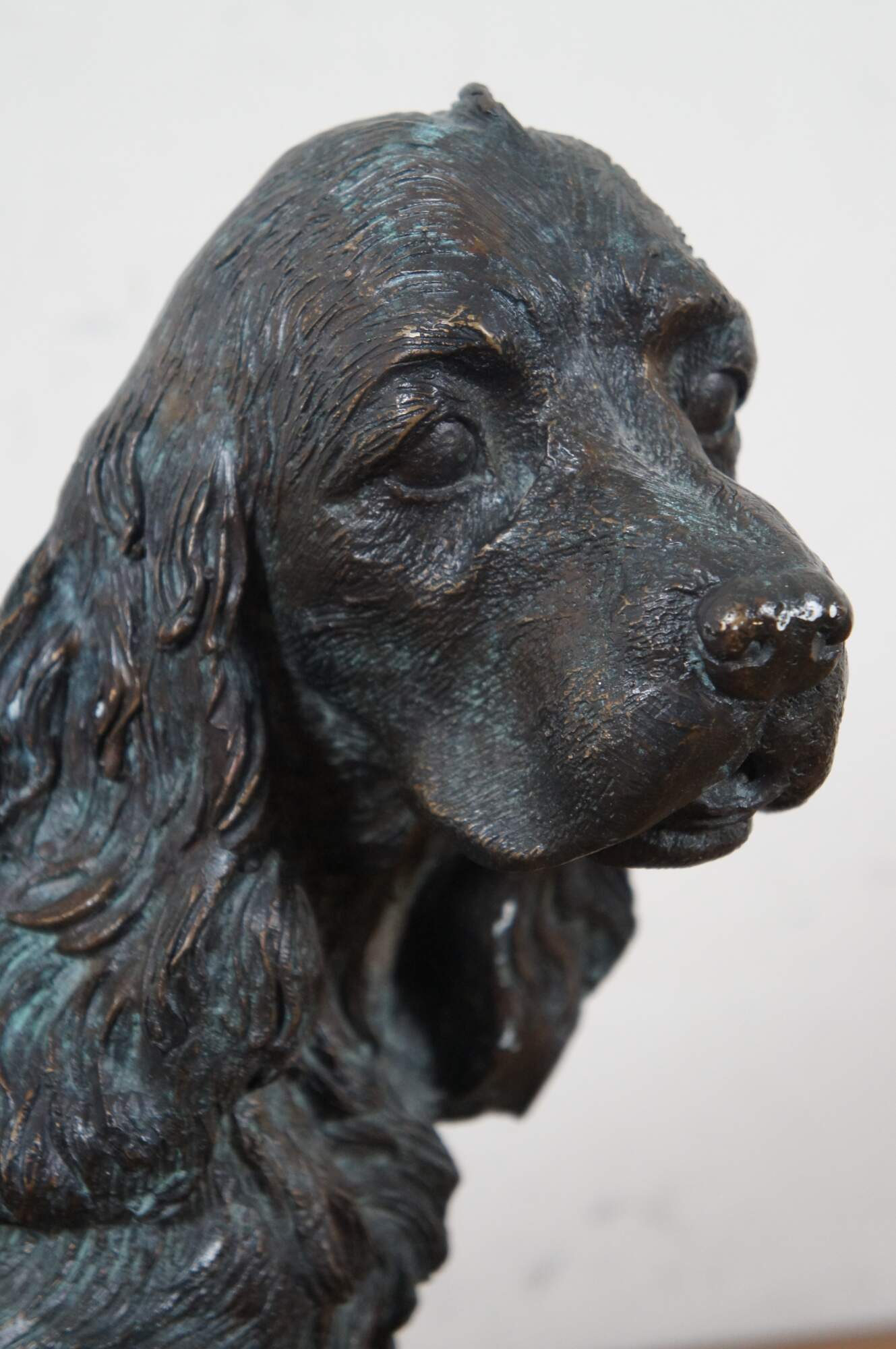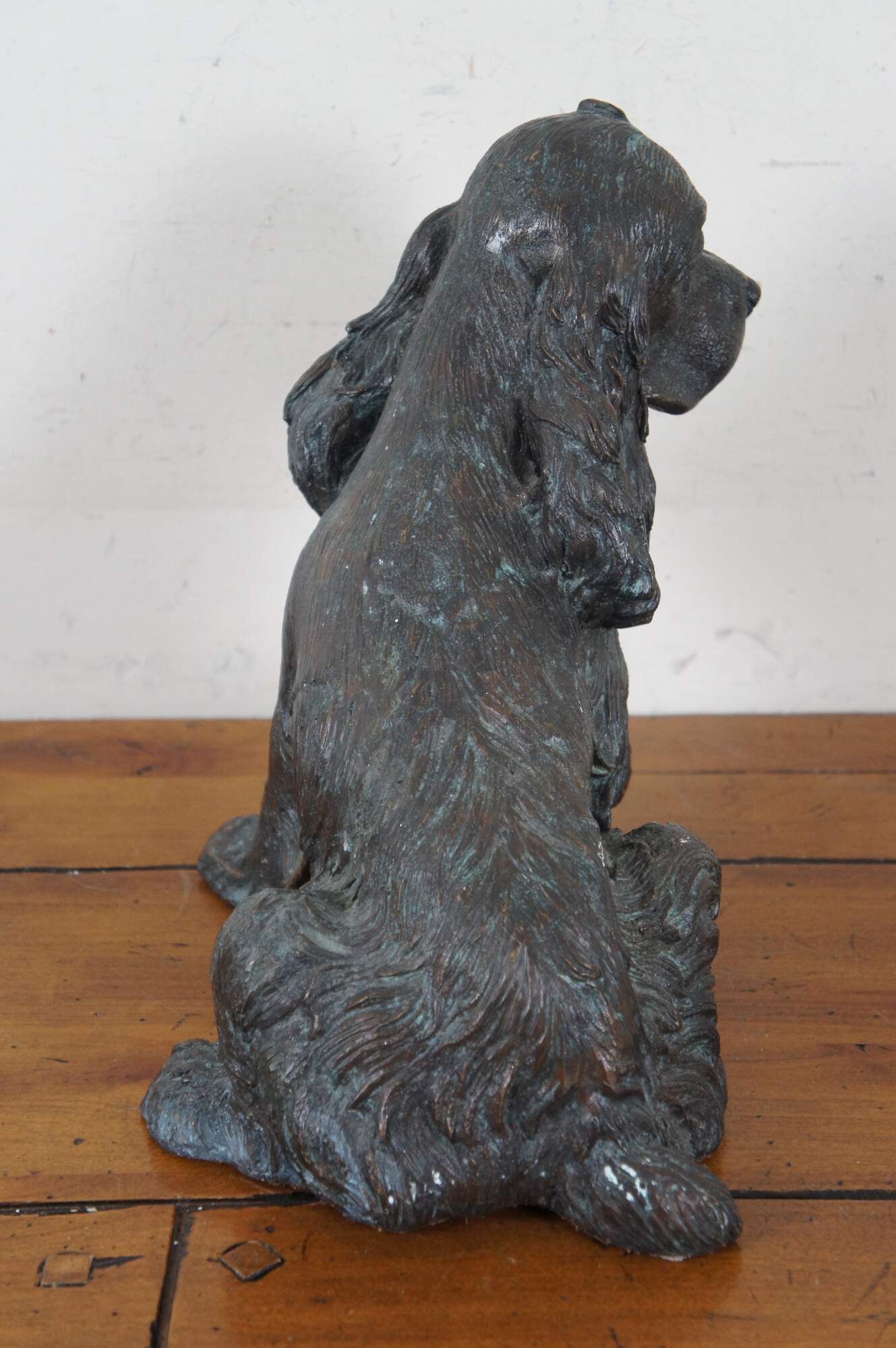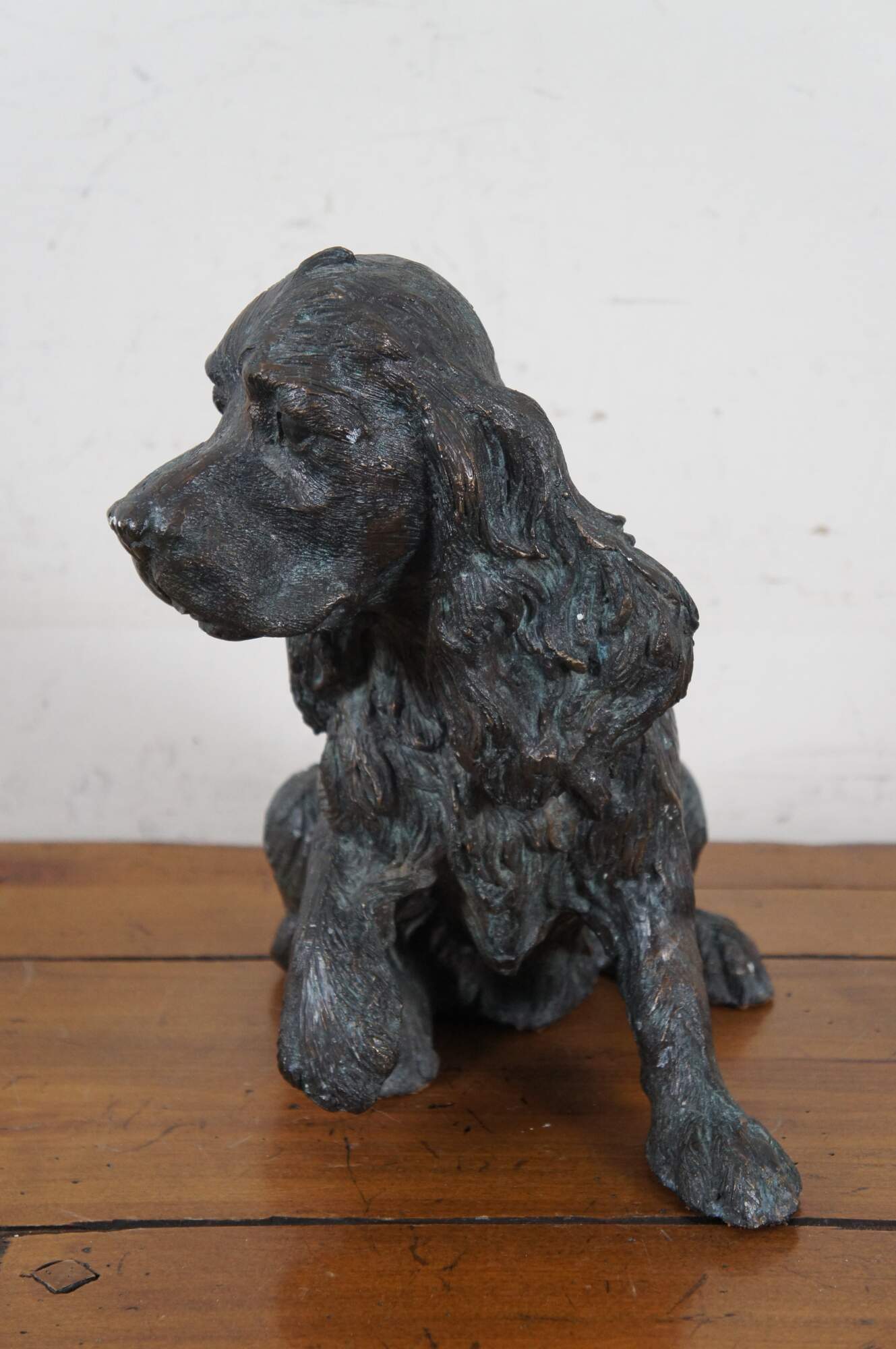 Finely detailed vintage bronze sculpture / statuette of a seated Cocker Spaniel or Irish Setter with one paw raised.
