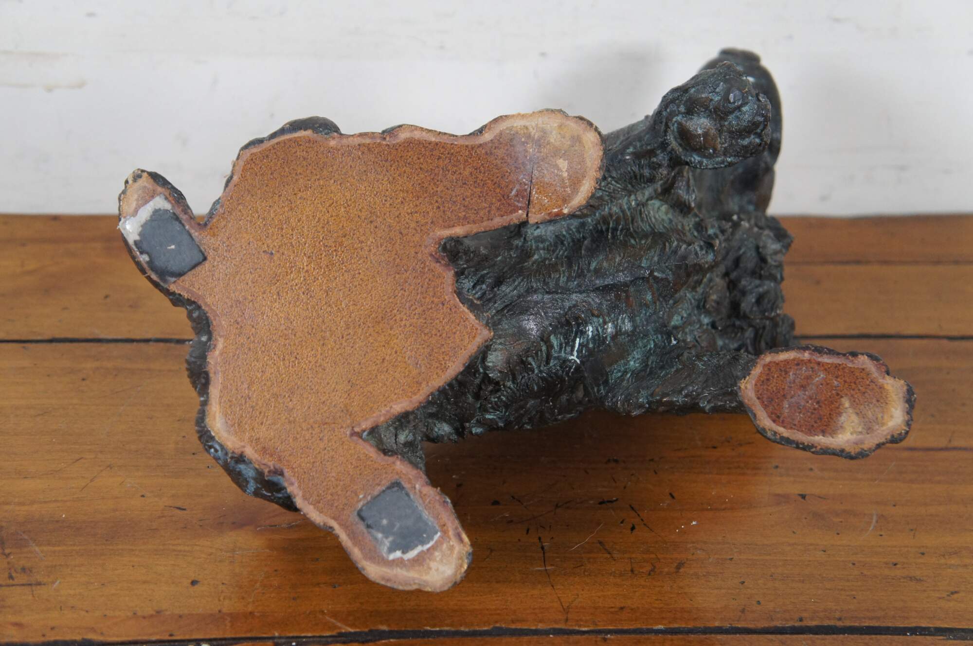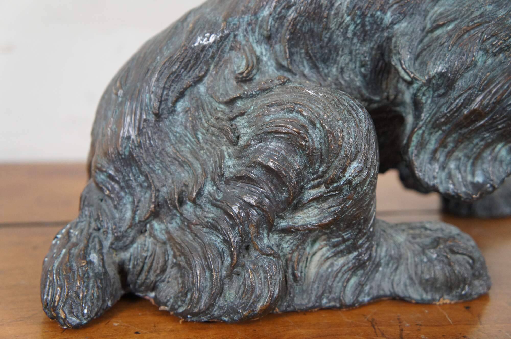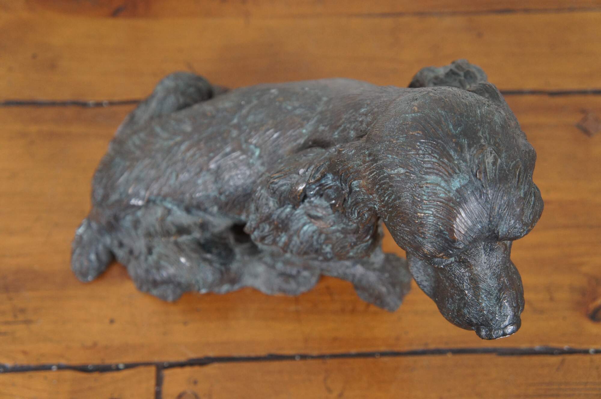 Finely detailed vintage bronze sculpture / statuette of a seated Cocker Spaniel or Irish Setter with one paw raised.