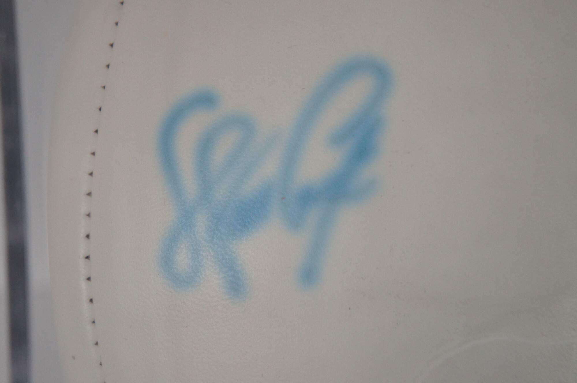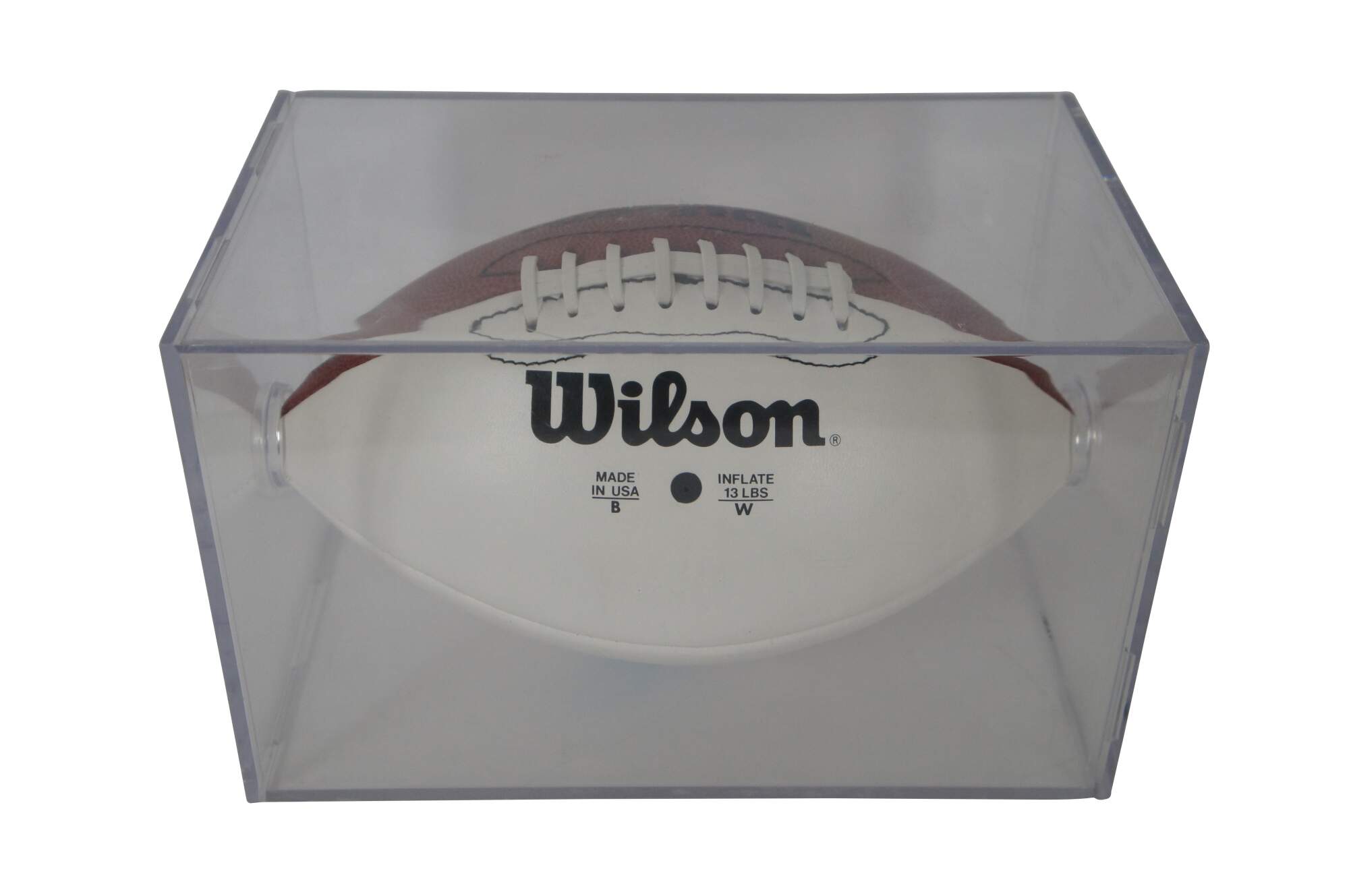 Vintage autographed / signed white and brown Official Wilson football (NFL - American Football Conference – National Football Conference – Pete Rozelle, Commissioner). Preserved / displayed in clear acrylic football memorabilia holder. Signed by Robert Cohen.