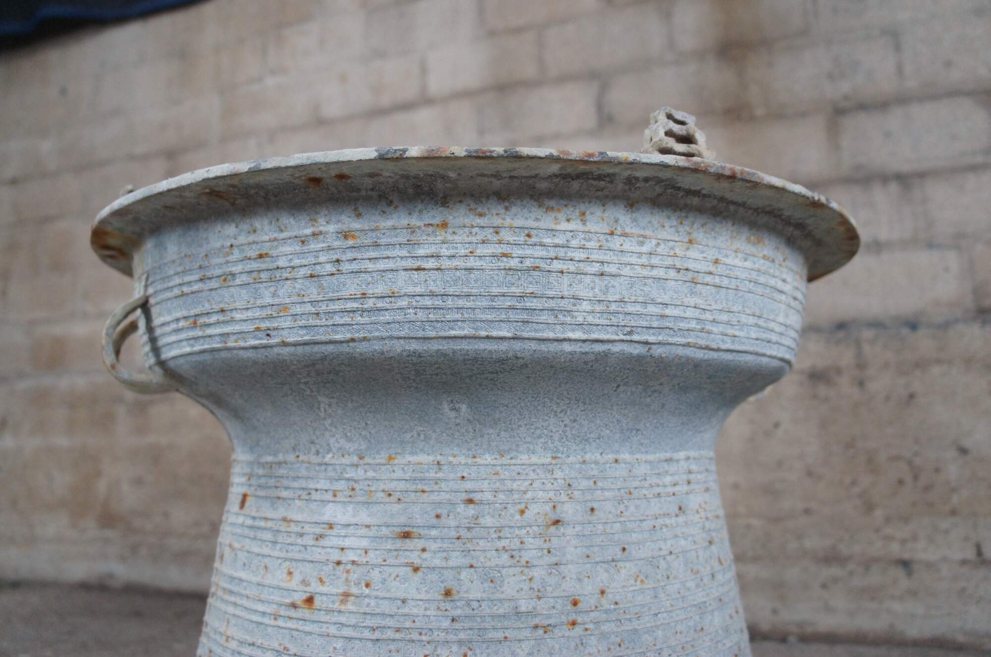 In modern gardens, rain drums continue to fulfill their age-old purpose, echoing the music of rainfall. Bronze drums can also be used indoors as tables, stools, and plant stands. The graceful combination of opposites that ancient craftsmen used to evoke the harmony of yin and yang now appeals to contemporary designers for similar reasons-bronze drums are durable yet delicate, a striking balance of form and function.