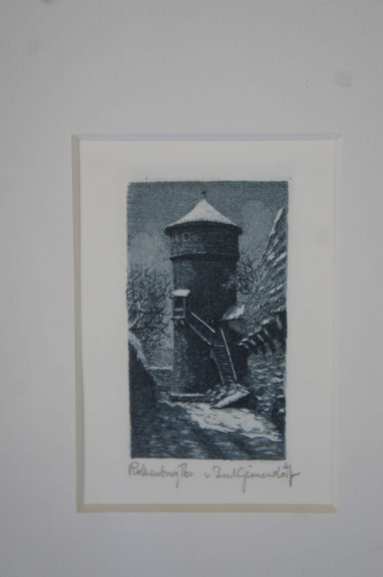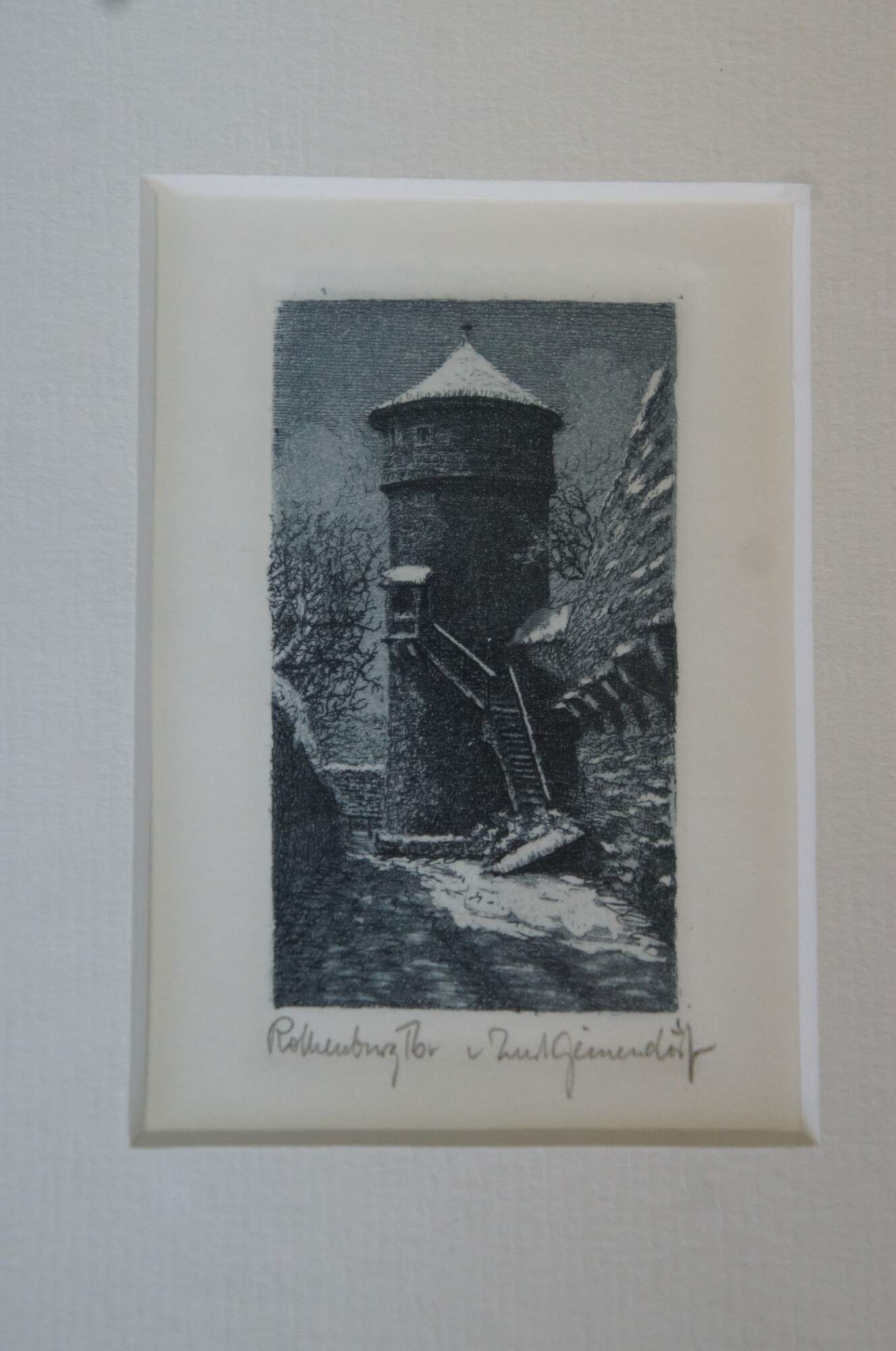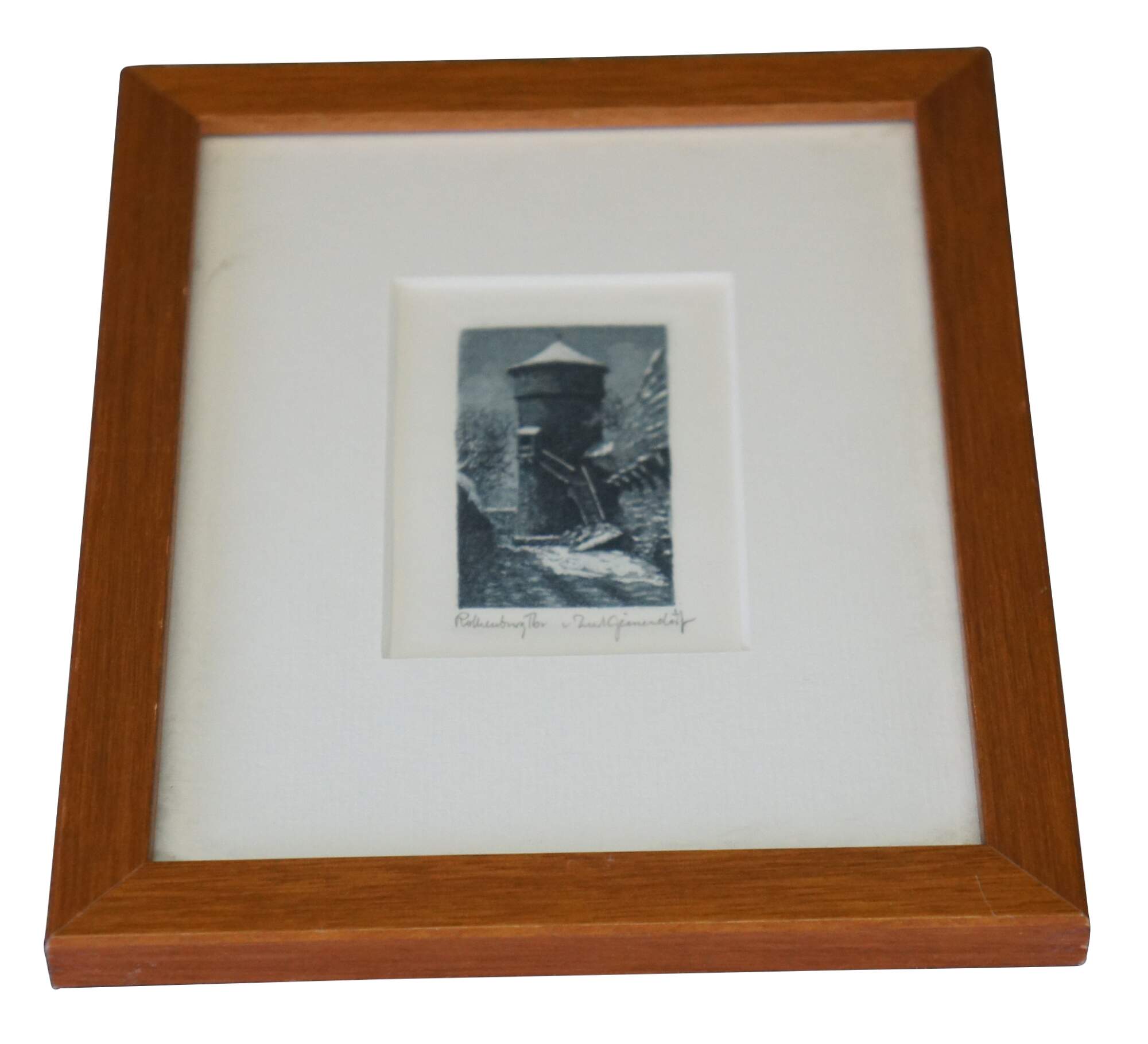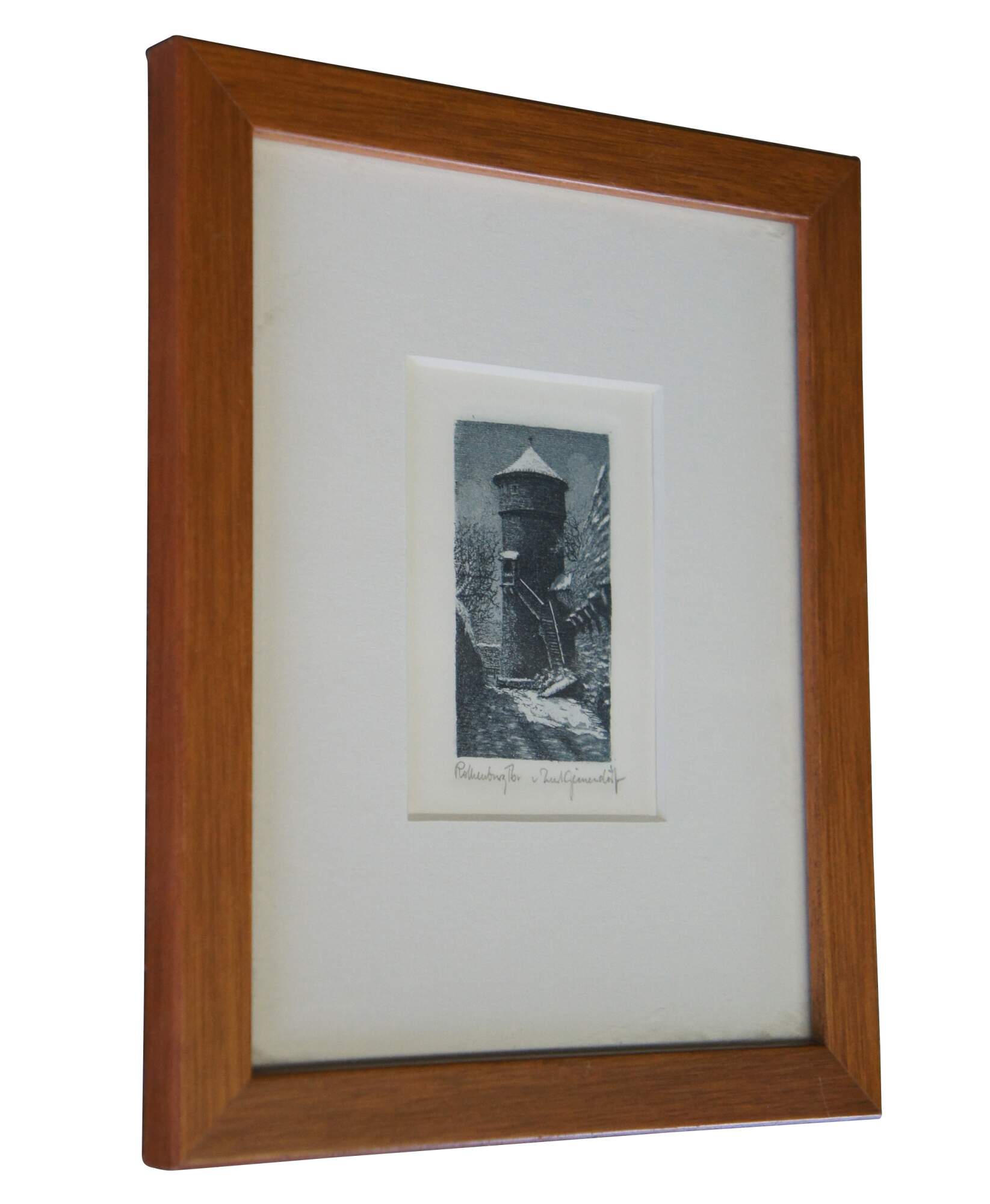 Mid 20th century etching depicting The criminal (penal) tower in Rothenberg Germany. Hand Signed Lower right.