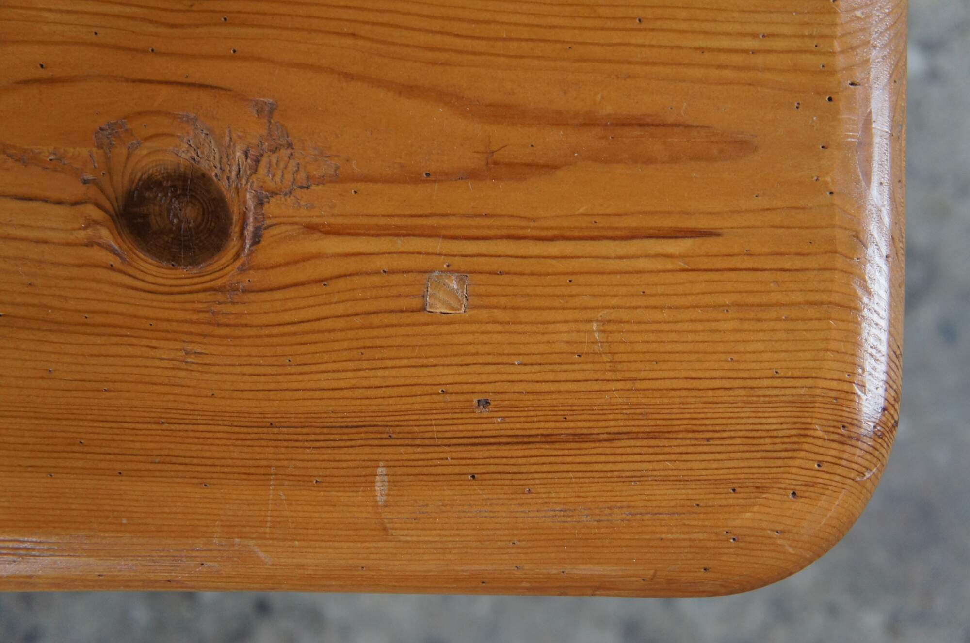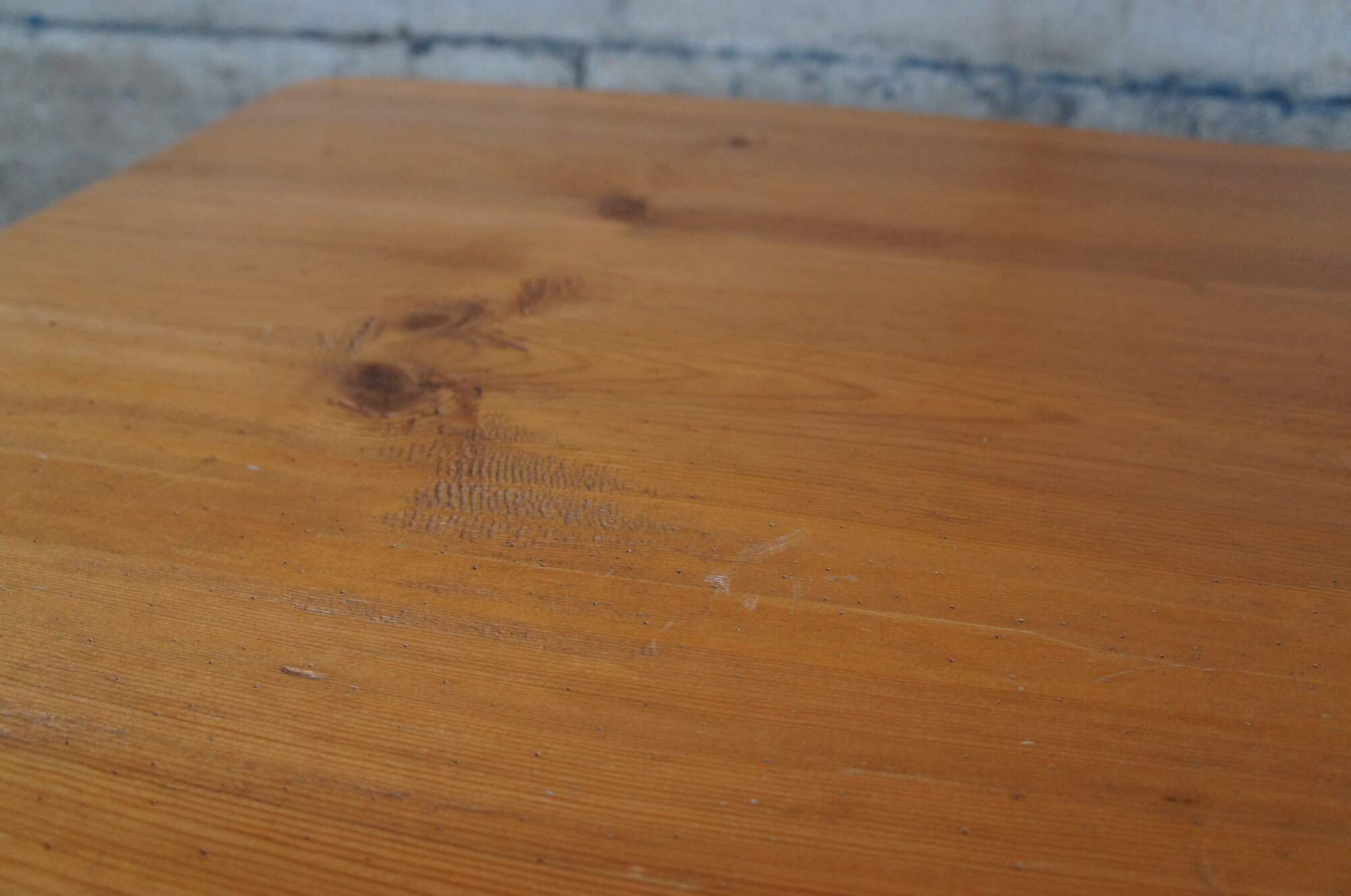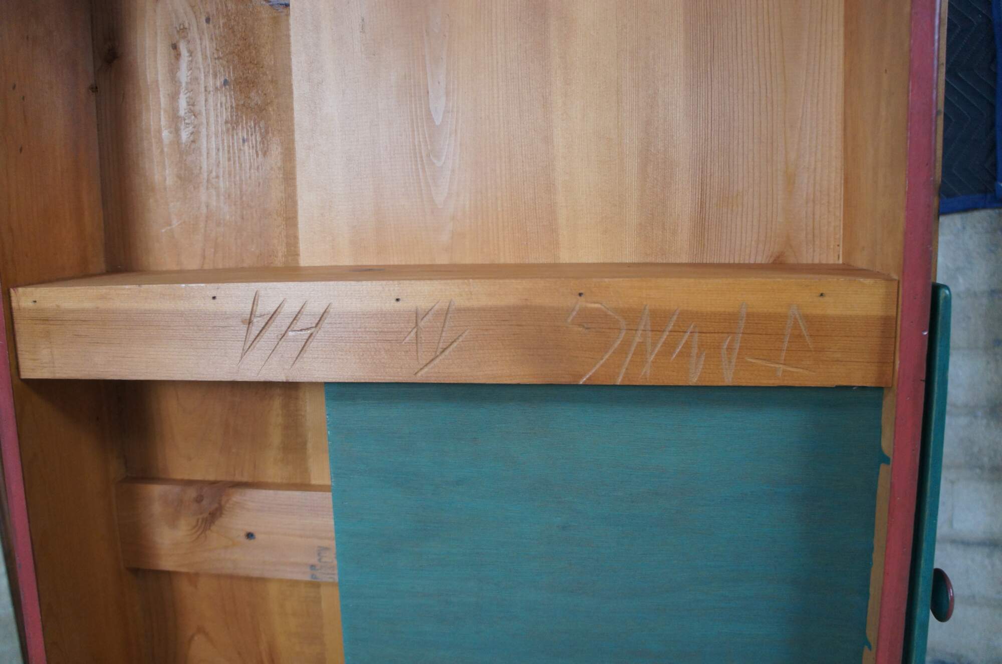 American Country farmhouse one drawer coffee or cocktail table, circa last quarter 20th century. Made from pine with a green and red painted finish. Features mortise and tenon joinery. Signed along the underside, JP & NG, TX HA