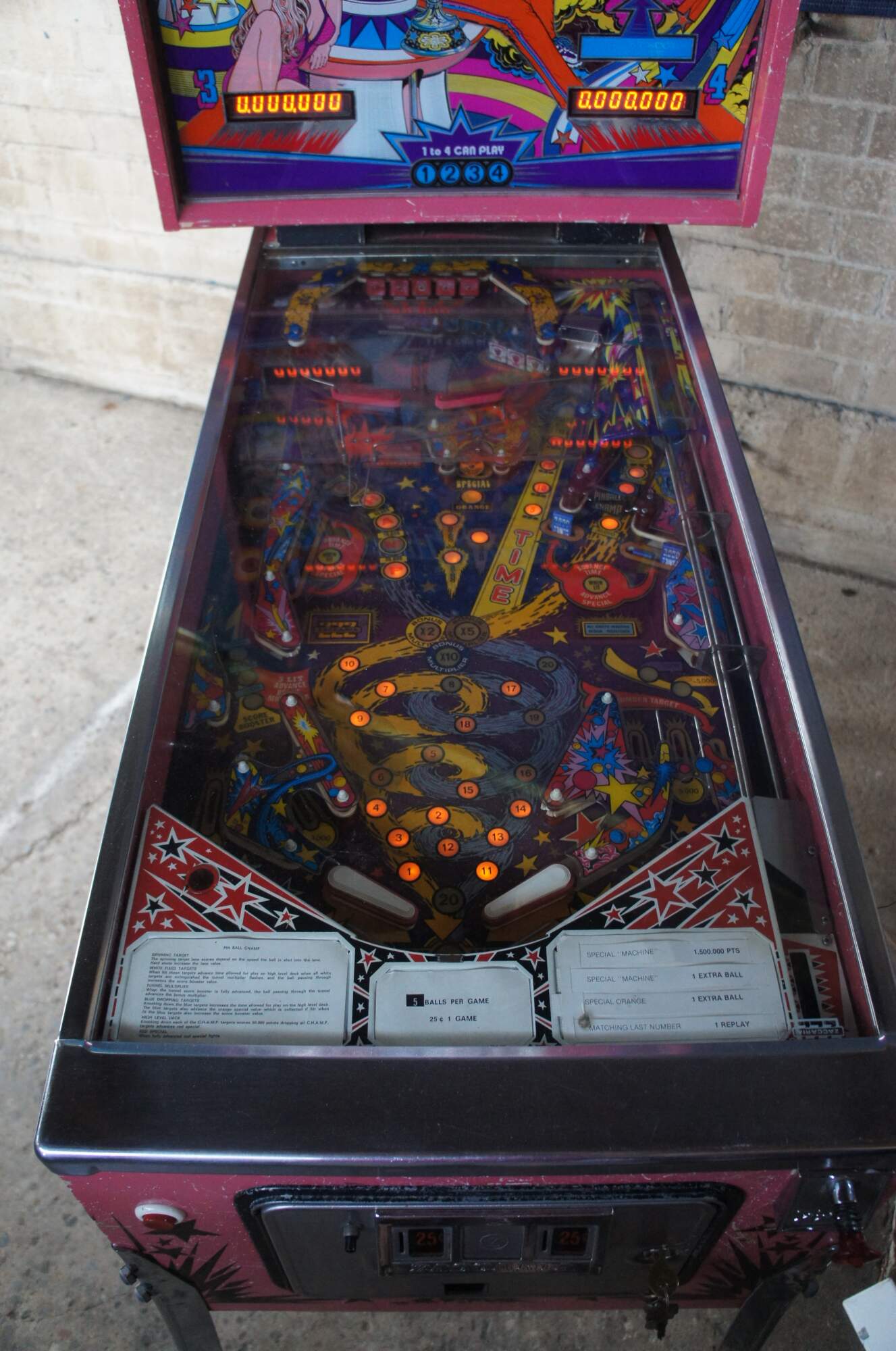 Good Vintage Condition; the machine is in working condition and is currently set to free play. The bumpers above the flippers are currently not working