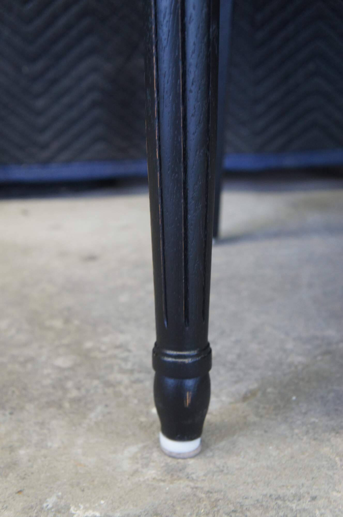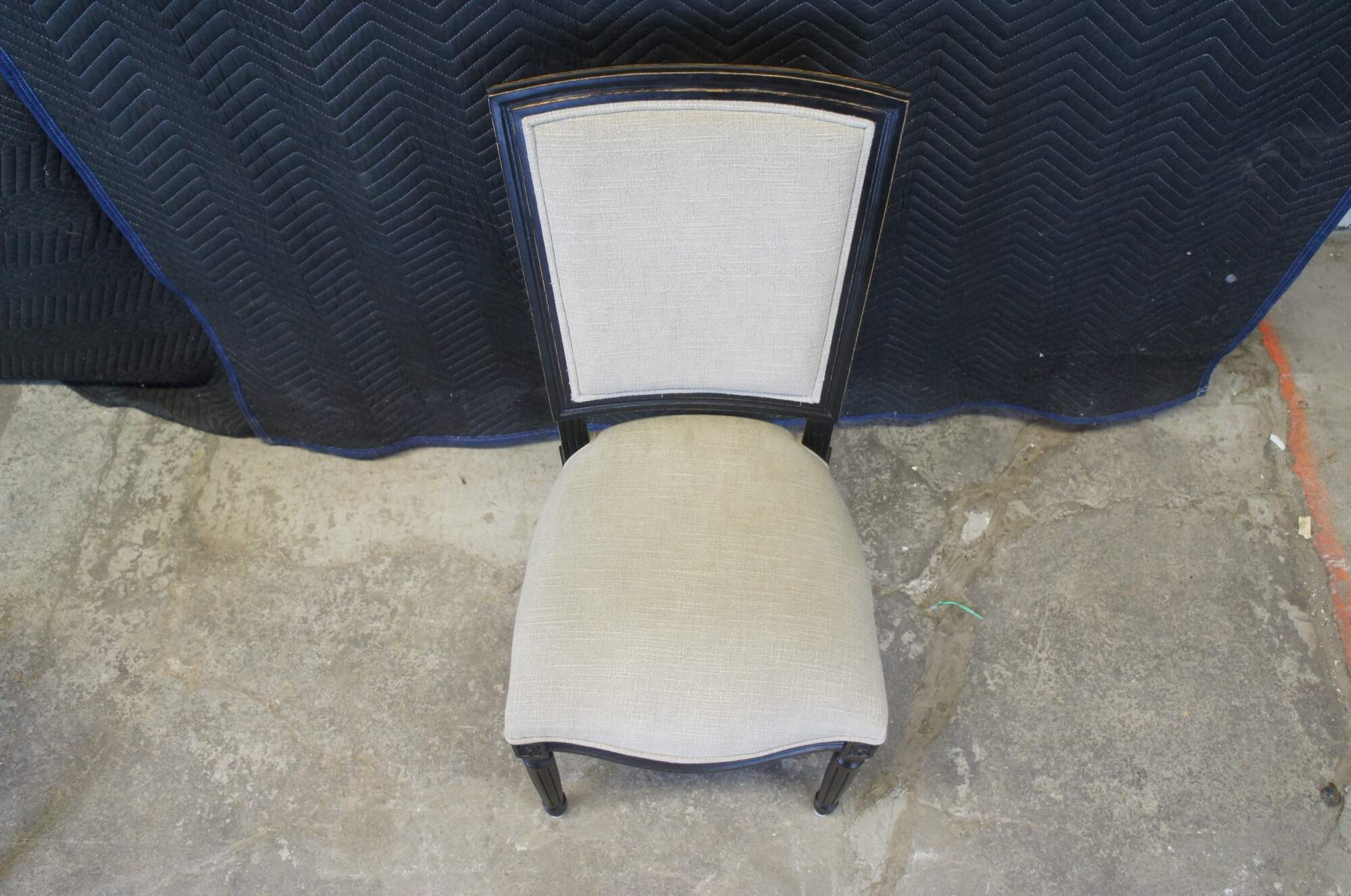 4 Ahaus Adele Upholstered Oak Dining Chairs, finished in black with gray fabric. The black finish has been discontinued and is a rare find.