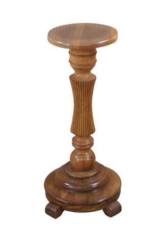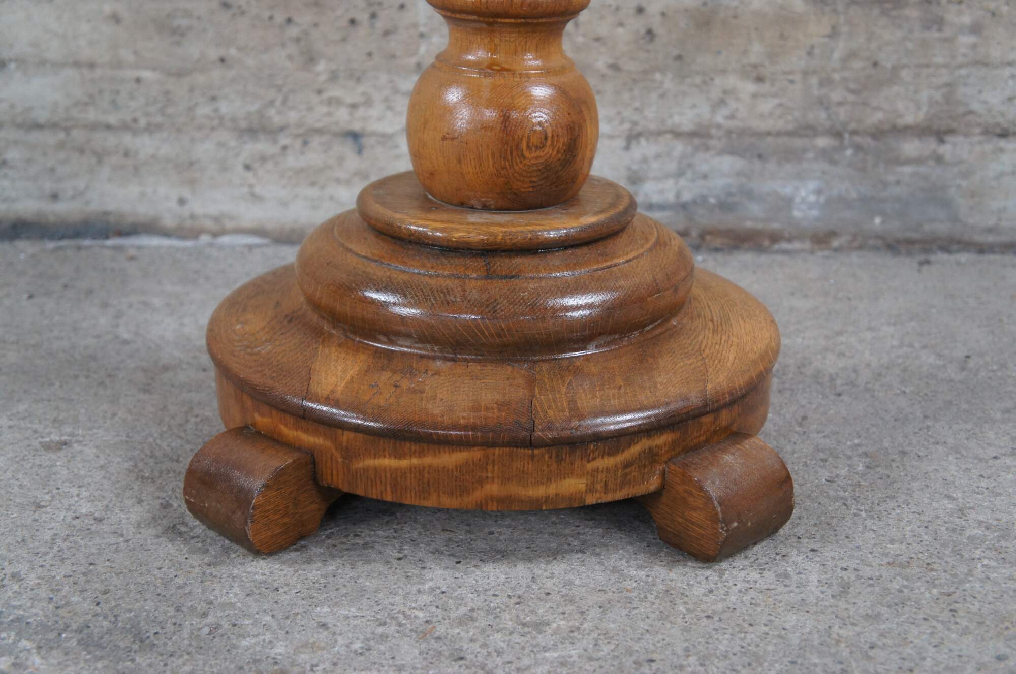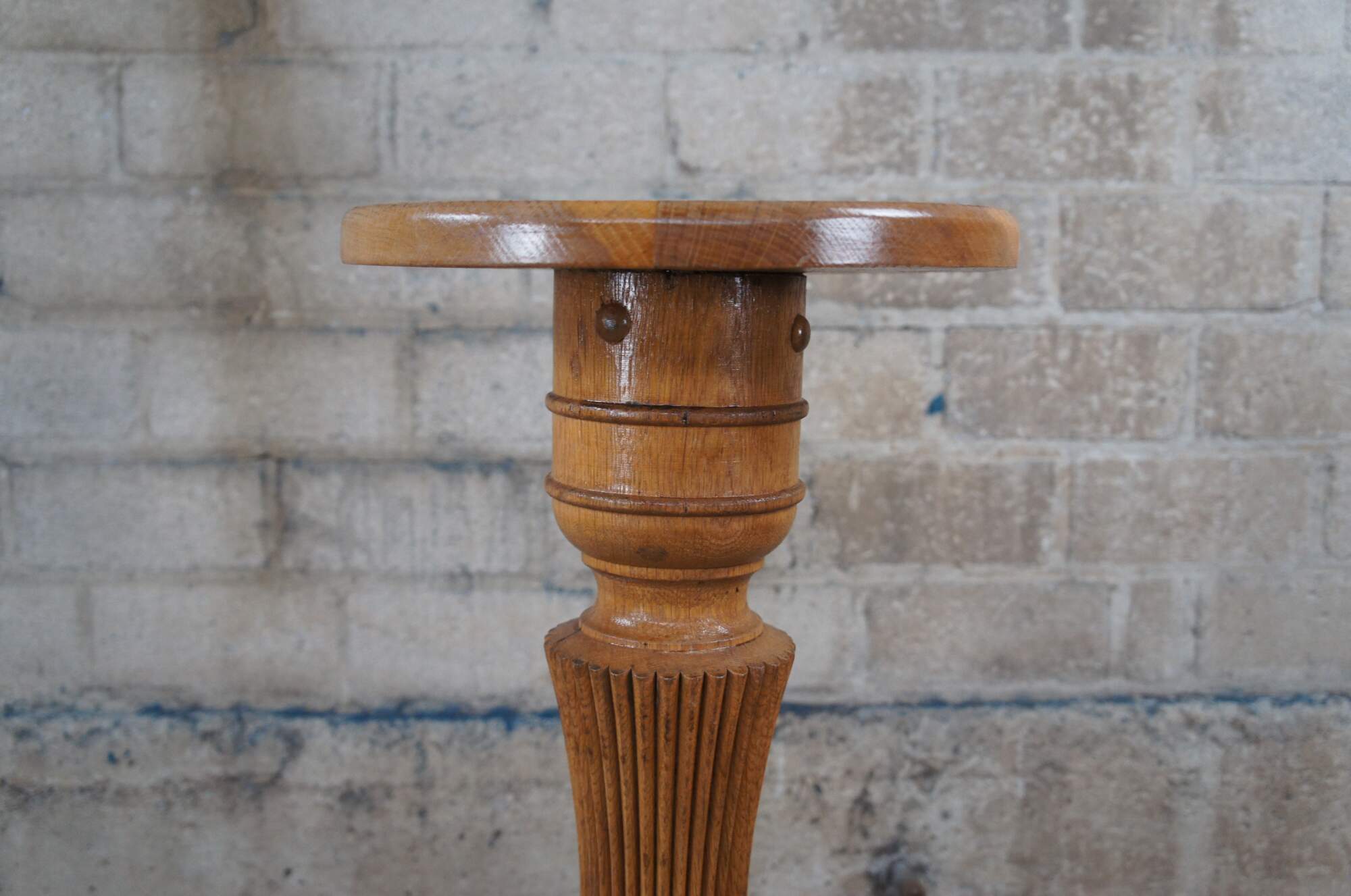 Victorian era oak pedestal, circa late 19th century. Features a beautifully turned column with reeded center over tiered and footed base. Great for display of plants and sculptures.