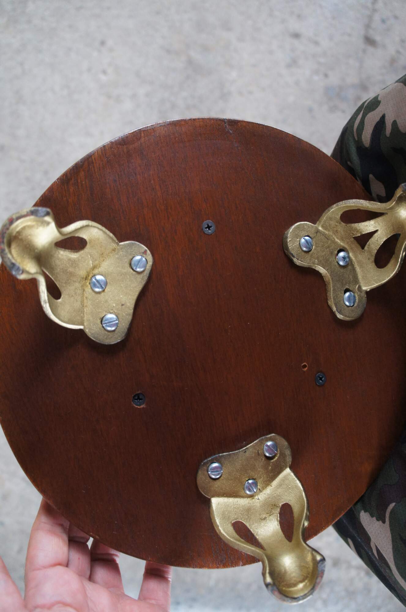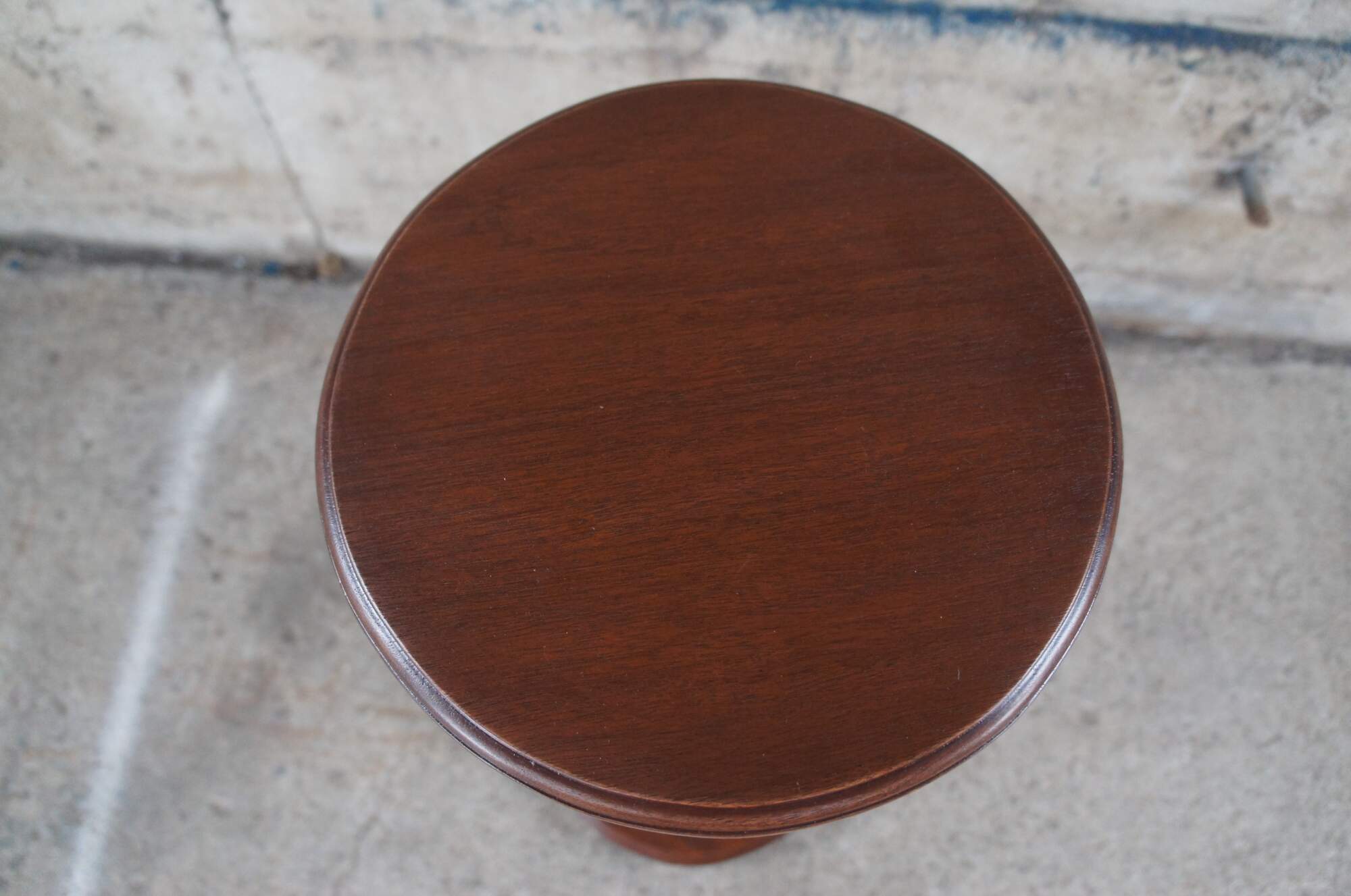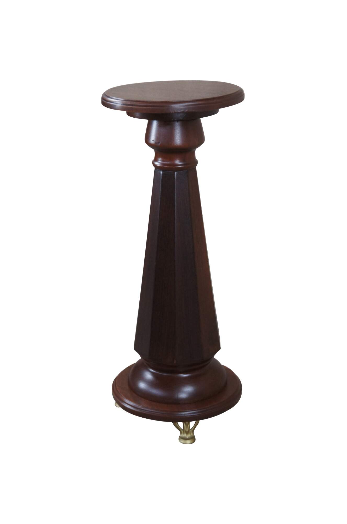 An American Empire style sculpture pedestal or plant stand, circa last half 20th century. Features an rounded top over a faceted graduated column leading to a rounded brass footed base.