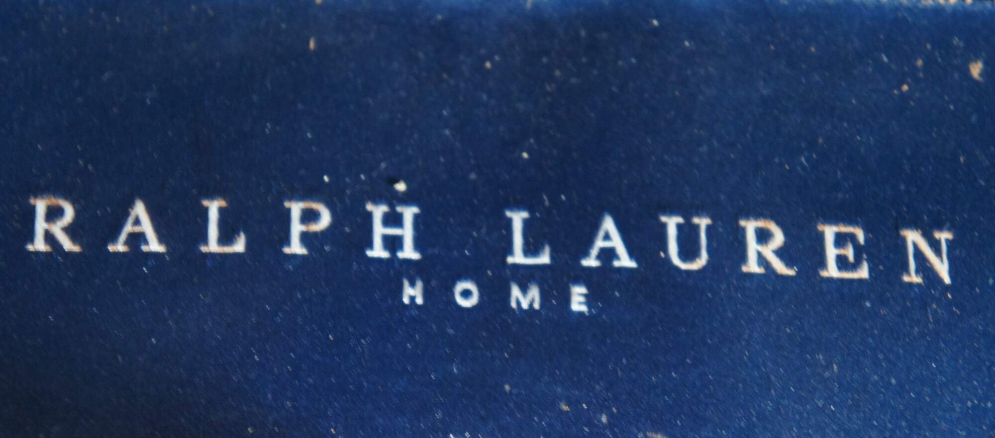 Vintage Ralph Lauren sofa. Resting on square tapered feet with gentle roll arms, the soft contours are expertly upholstered by hand and accented with classic nailhead trim. Finished in brown suede.