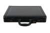 Vintage Kingport black leather attache / brief case with metal feet, single handle, and double latches with combination locks (Currently set to default 000). Interior features gray suede ostrich leather lining, three expandable document sized slip pockets with snap closure straps, three pen slots, two card sized slip pockets and one pouch pocket with snap button closure. Includes instructions for setting combination lock. Made in Taiwan R.O.C.