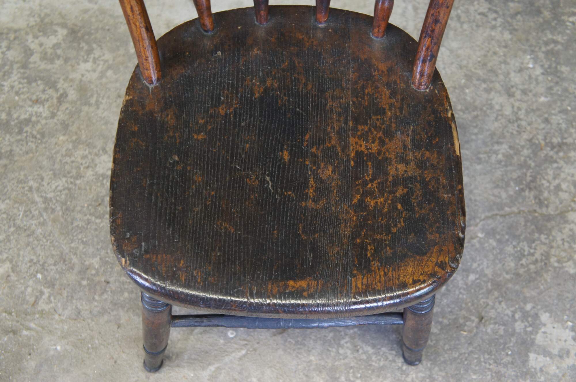 Fair antique condition, wear and distressing commensurate with age and use, finish loss, fading, scuffing / marking, past repair to seat.