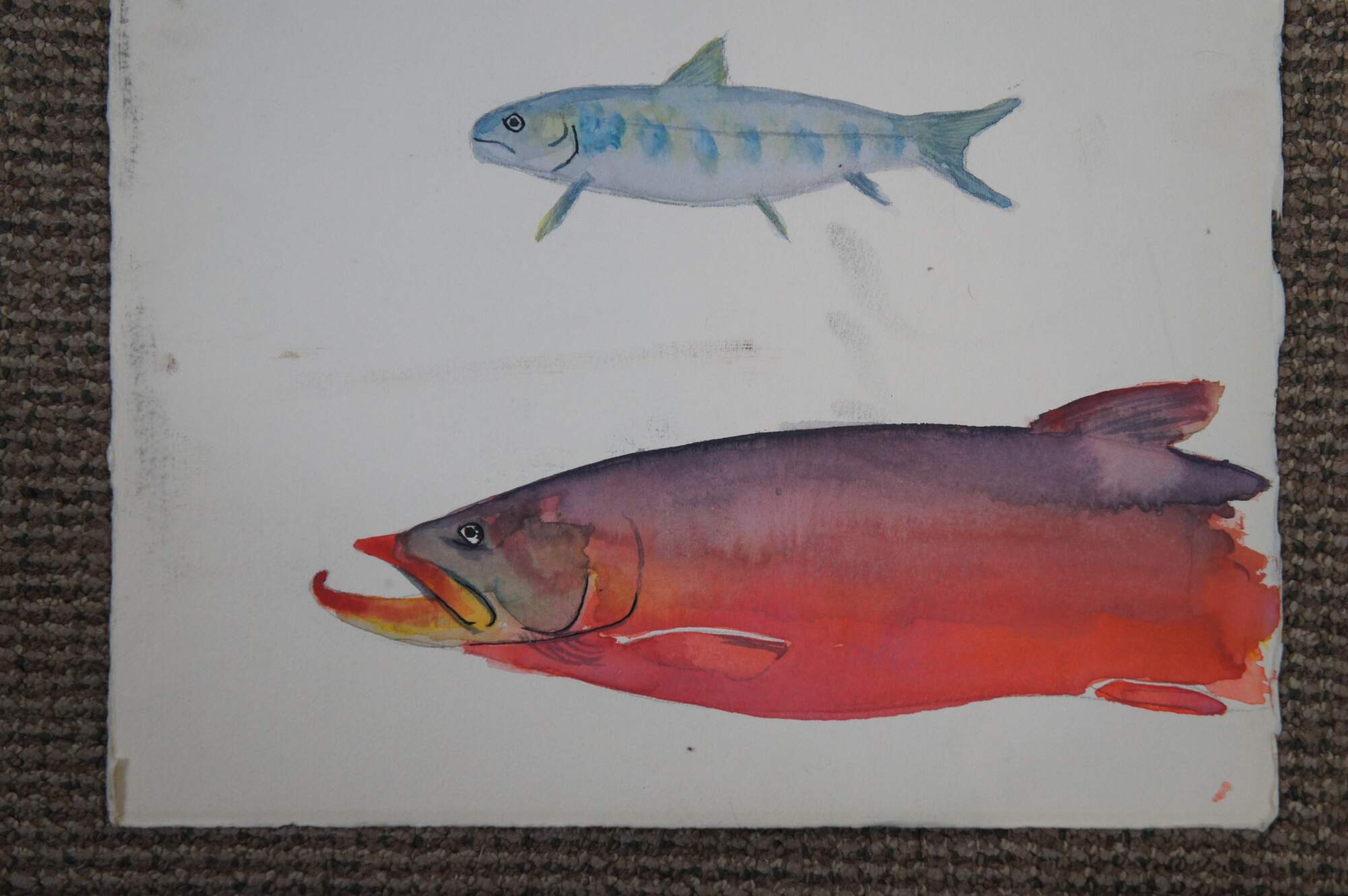 Original Ken Skahan watercolor on paper painting of an array of four beautifully colored salmon / trout / freshwater fish.