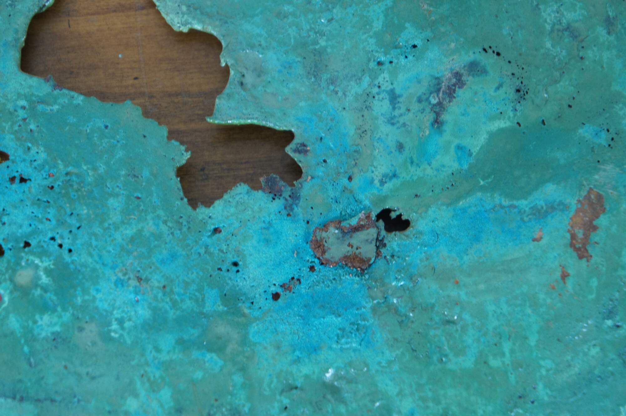 Pair of abstract / free form wall art pieces created from splashes of molten copper, partially polished and oxidized.