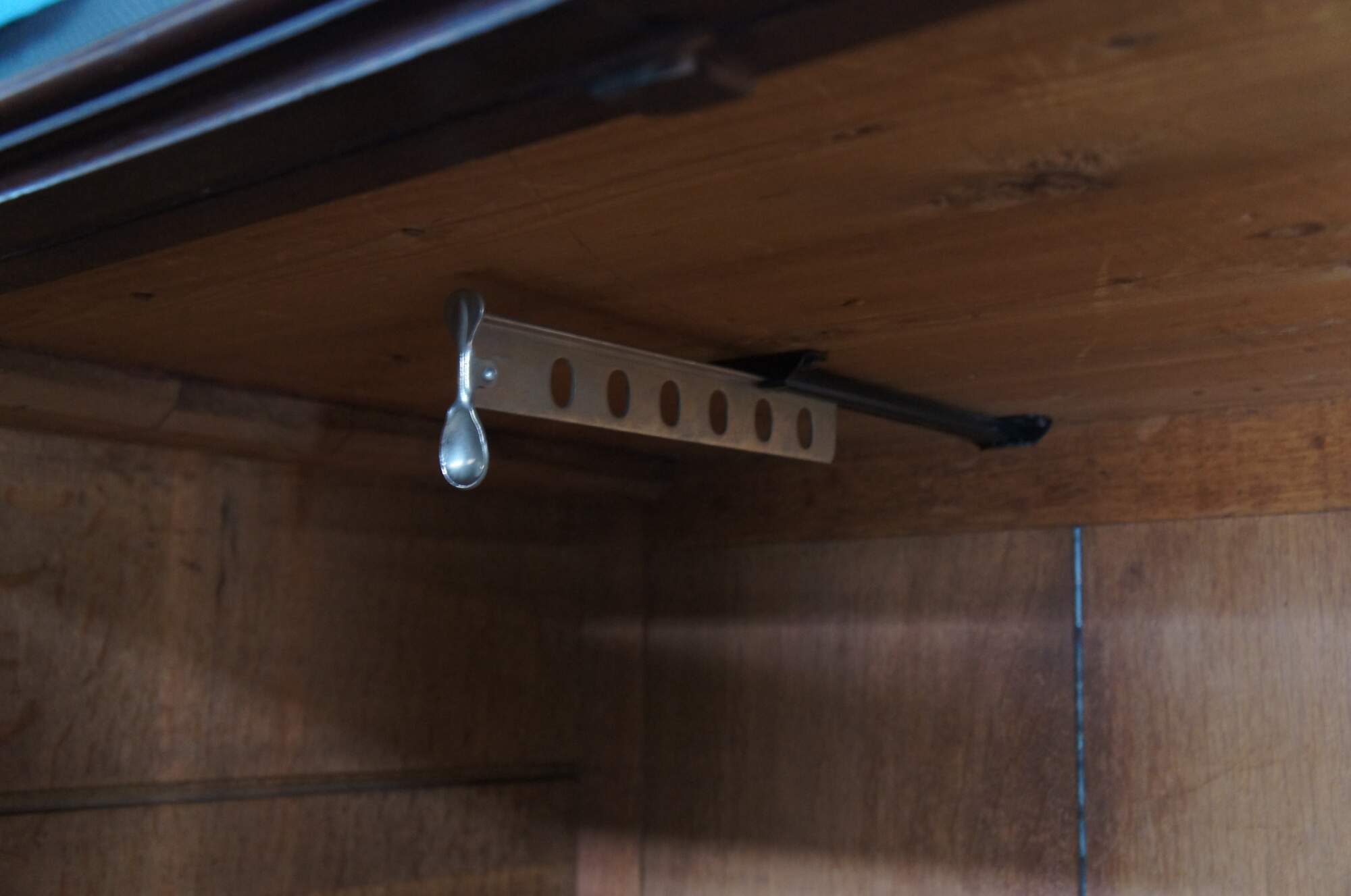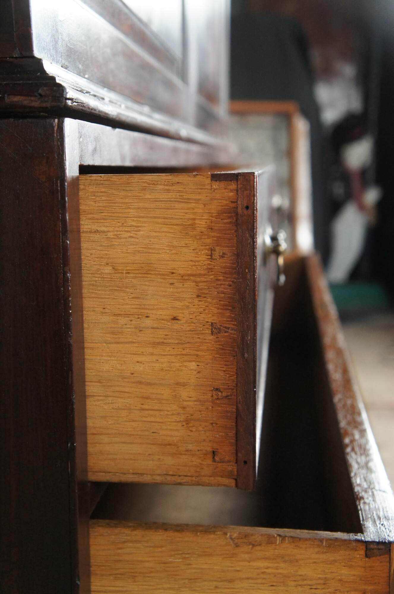 Good antique condition, wear and distressing commensurate with age and use, only one interior shelf. Base originally had wooden pulls that were later replaced with brass bale hardware.