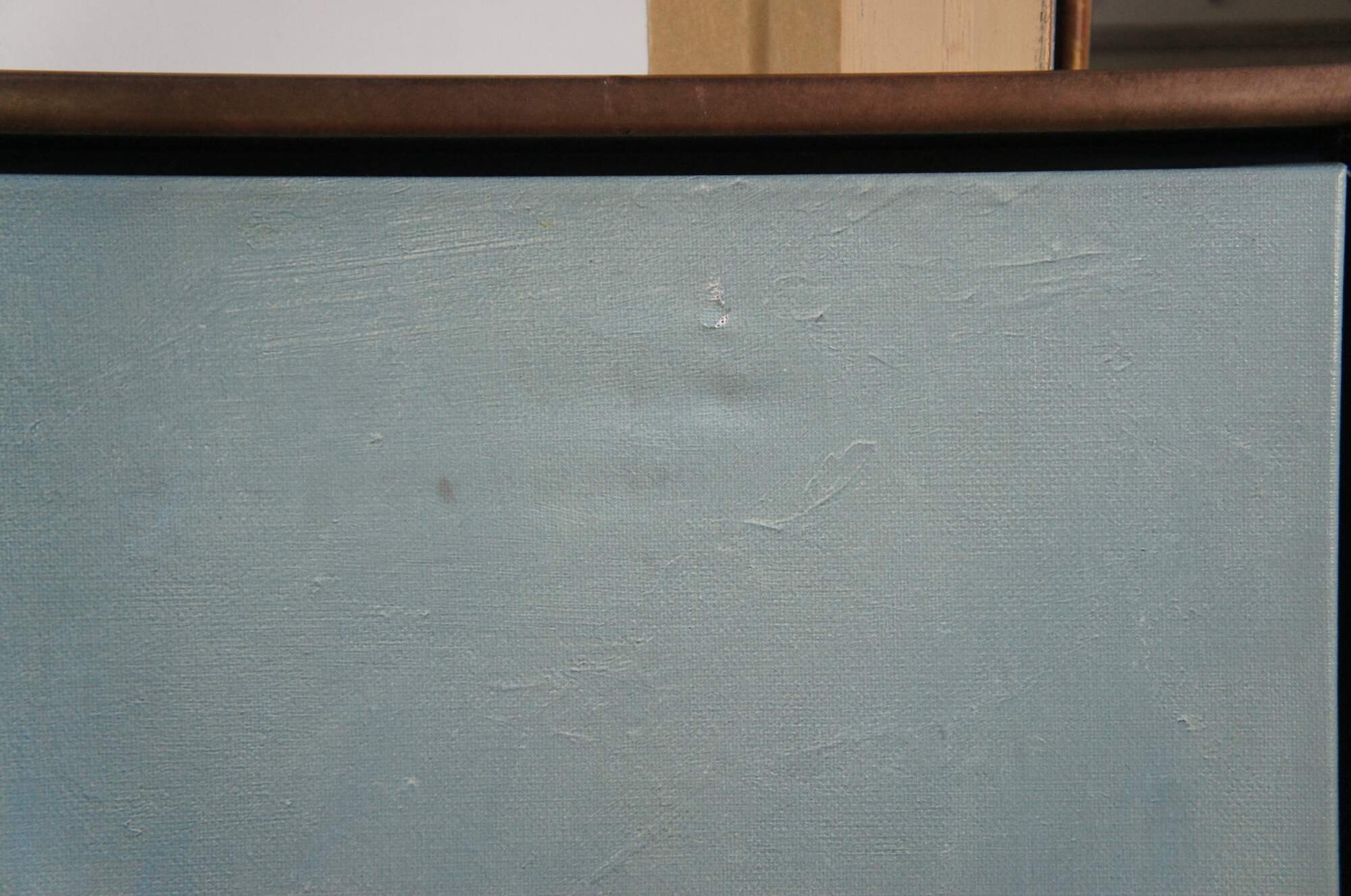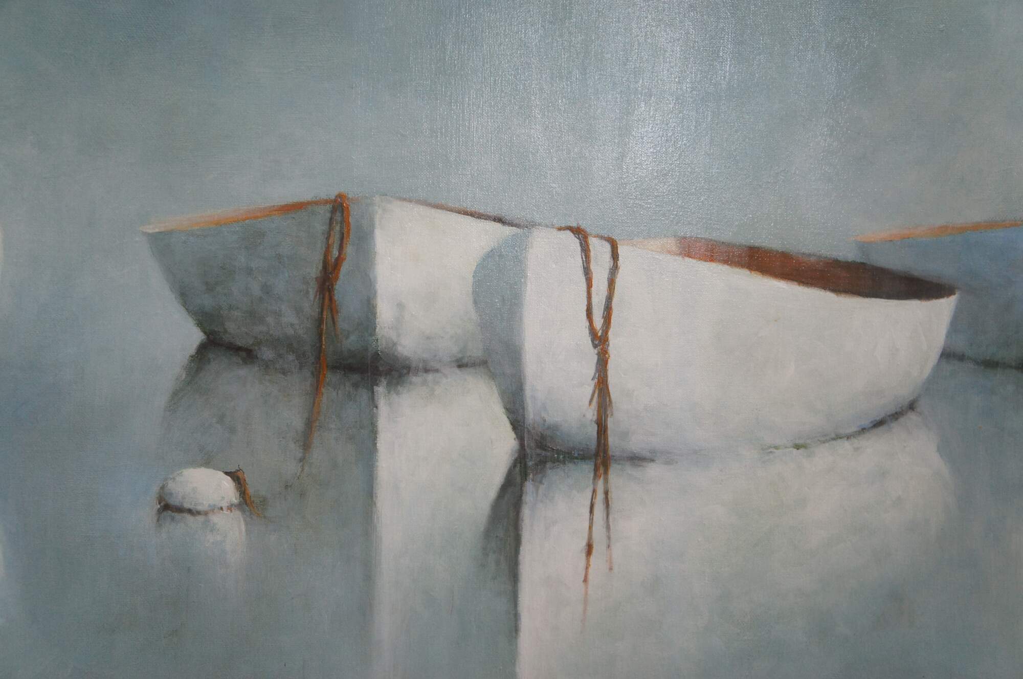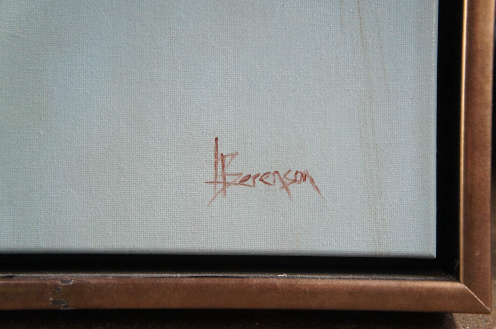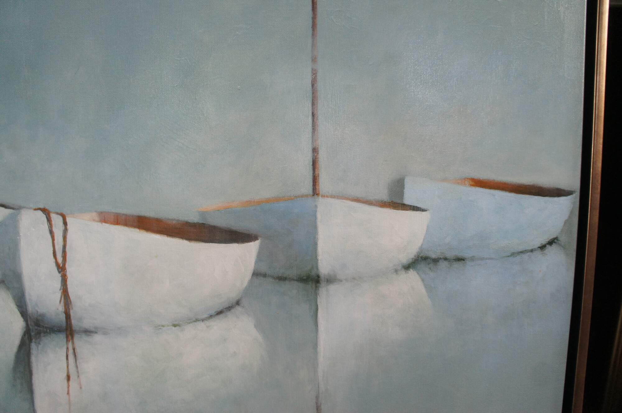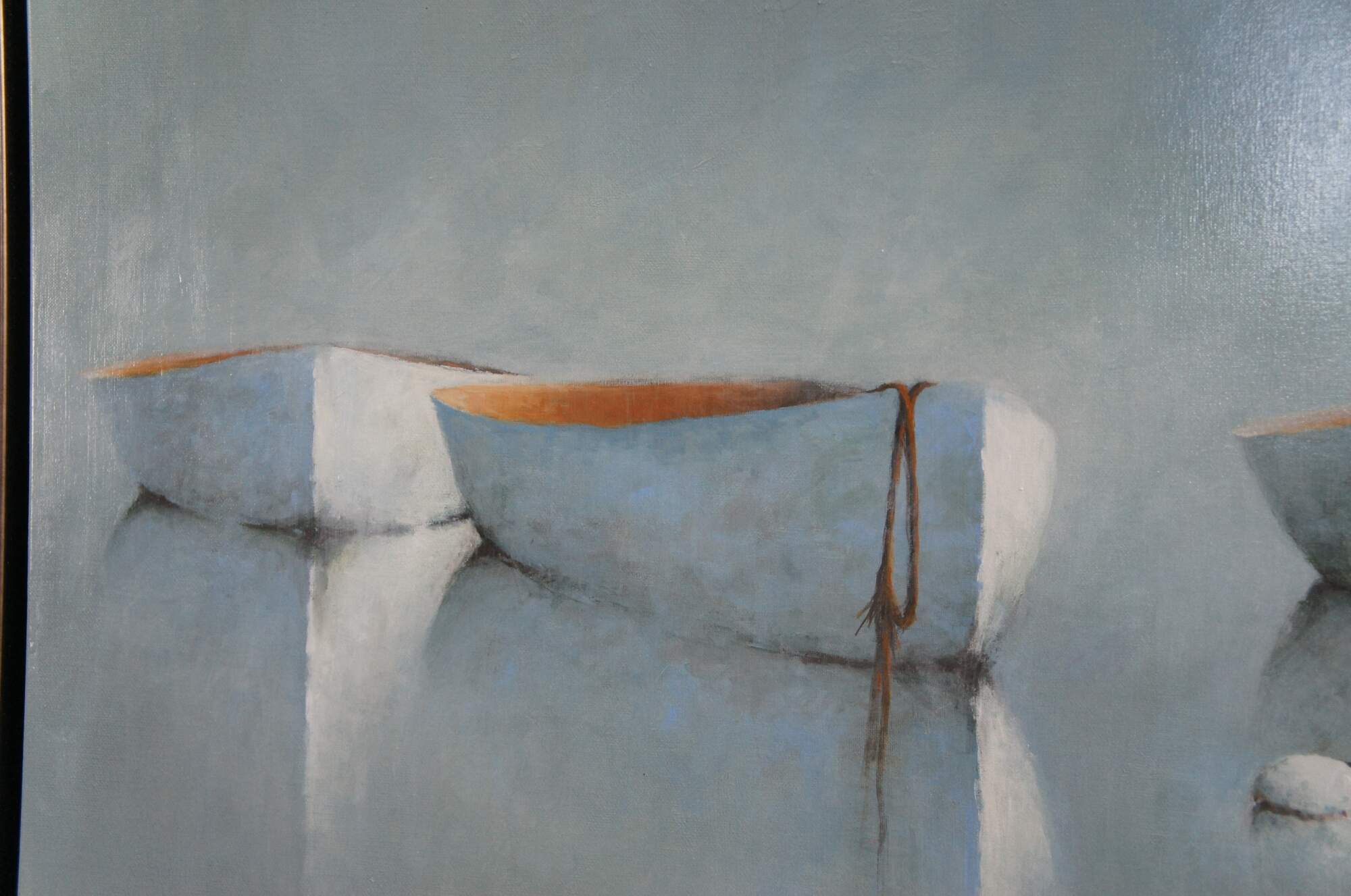 Vintage Leslie Berenson nautical maritime impressionist seascape sailboat acrylic giclee on canvas featuring six white boats reflecting on the water. Signed lower right, marked 1 of 1 lower left. Reflection beach house morning glow key west bathing sunshine.