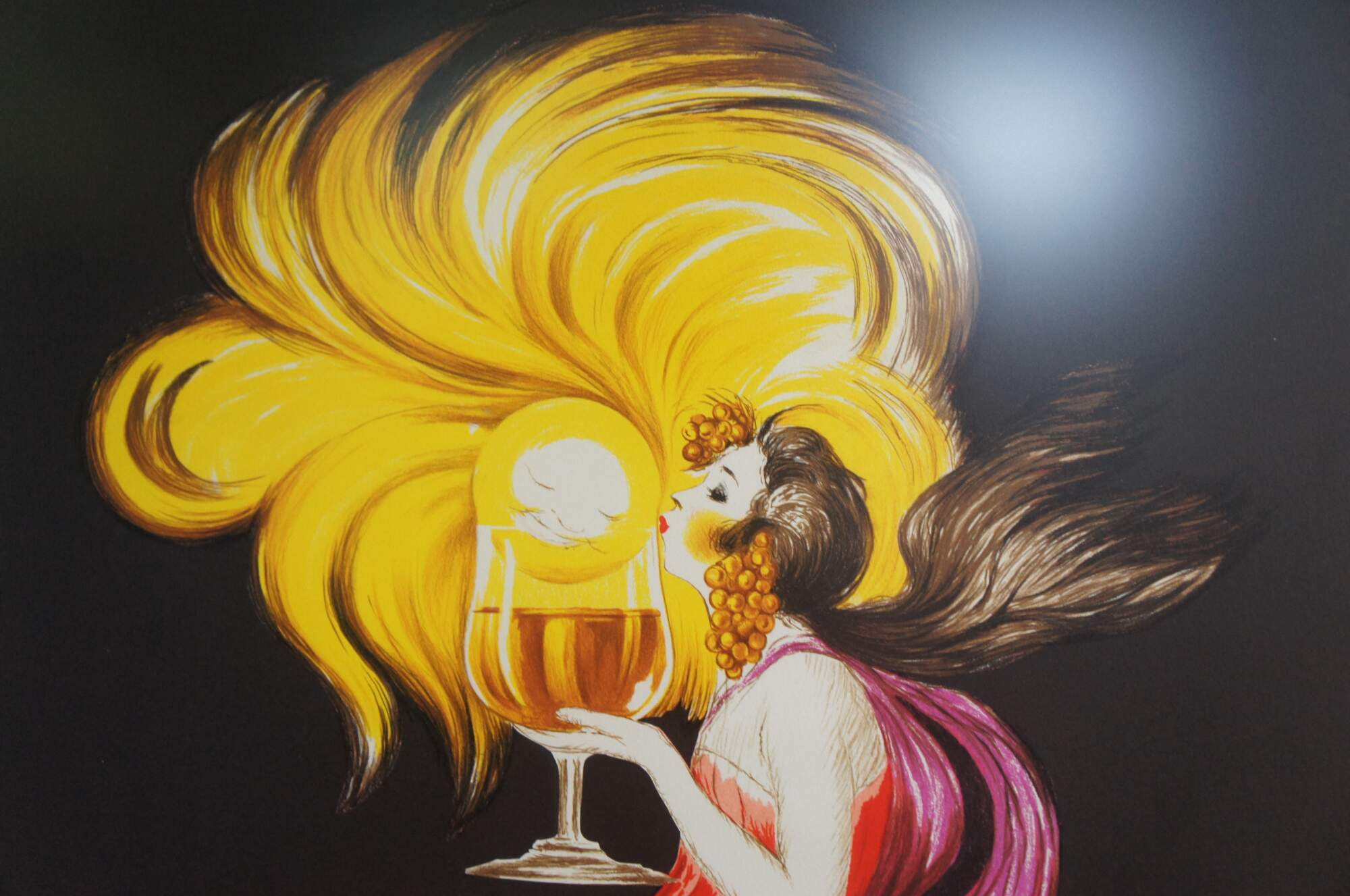 Not only is this a charming poster, it is also the reason why Cognac Monnet stood out from the hundreds of Cognac producers. Cognac is a variety of brandy named after the town Cognac, France. Cognac is classified by quality grades as well as crus, the geographic areas where the grapes are grown. Cognac Monnet was founded more than 175 years ago by the father of Jean Cognac, the founding father of the European Union. It first became famous because of this early advertising poster by Cappiello, and the company has managed to stay in business until today.