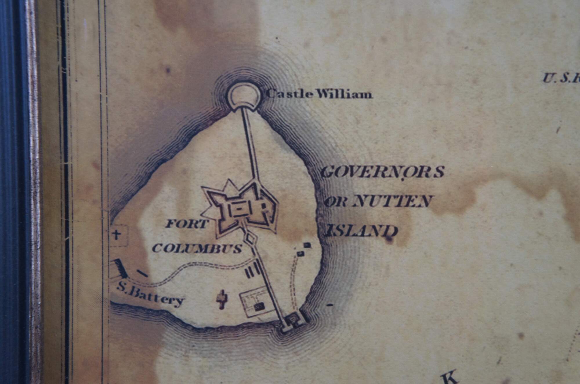 Good overall, some wear to frame, map made to look old with soiling / foxing that looks like water damage.