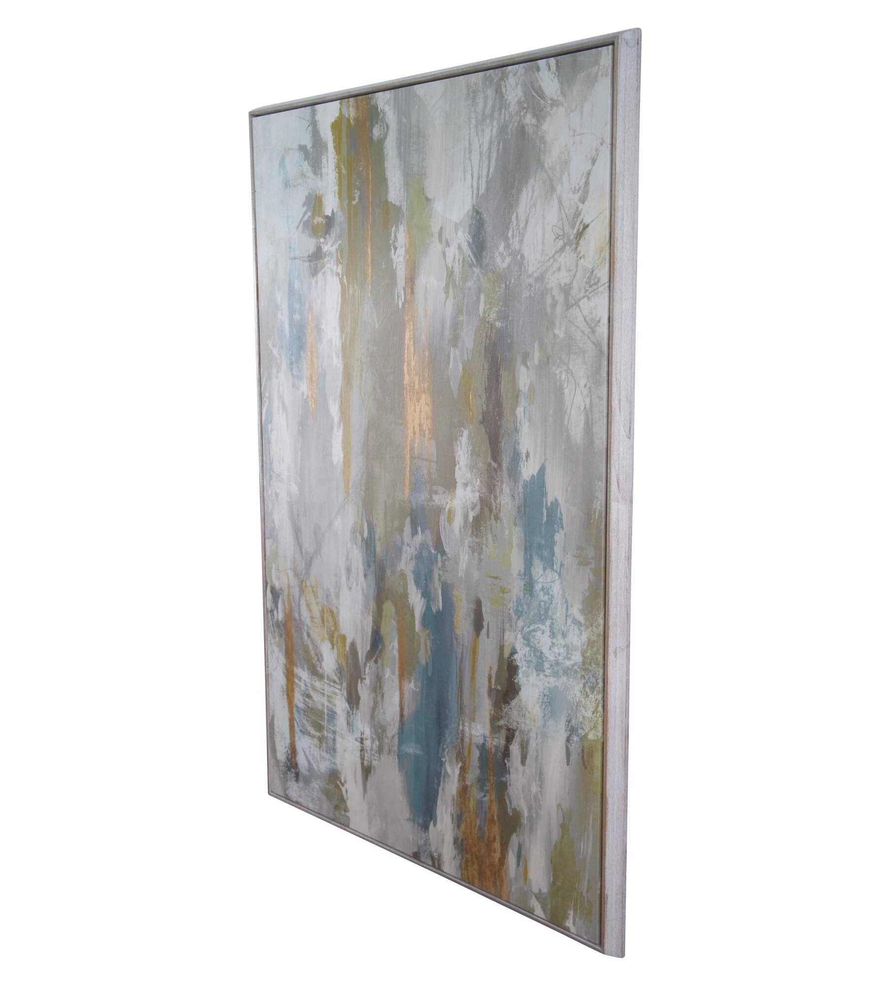 A large and transformative Mark McDowell abstract giclee on canvas titled Scent of Moonlight, from the John Richard Collection. It features Earth tones; whites, greys, blues, browns, greens and tans. This art was originally sold by Artistic Elements Interior Design of Boca Raton Florida, circa 2016.