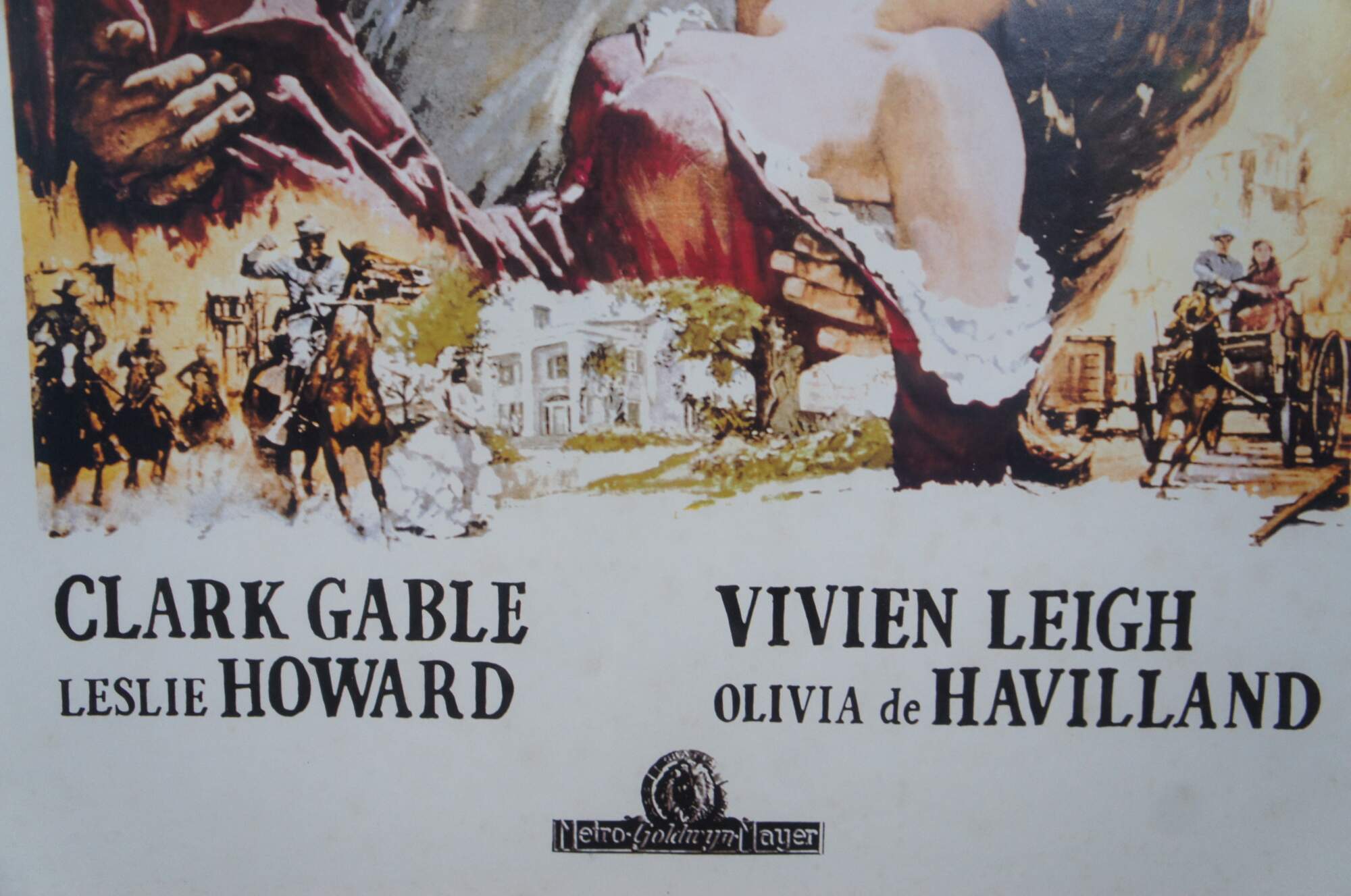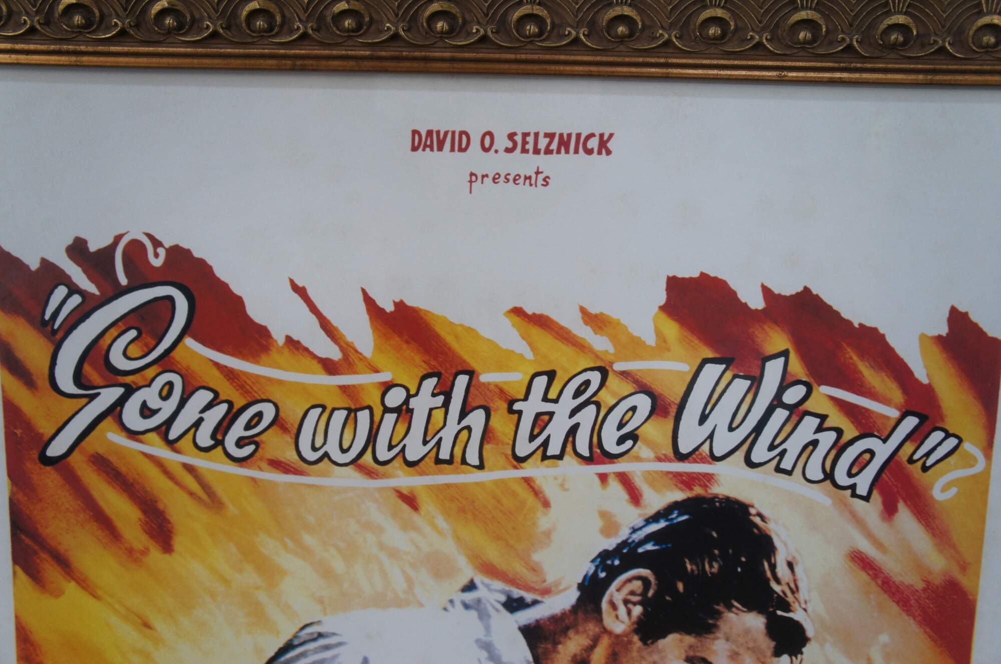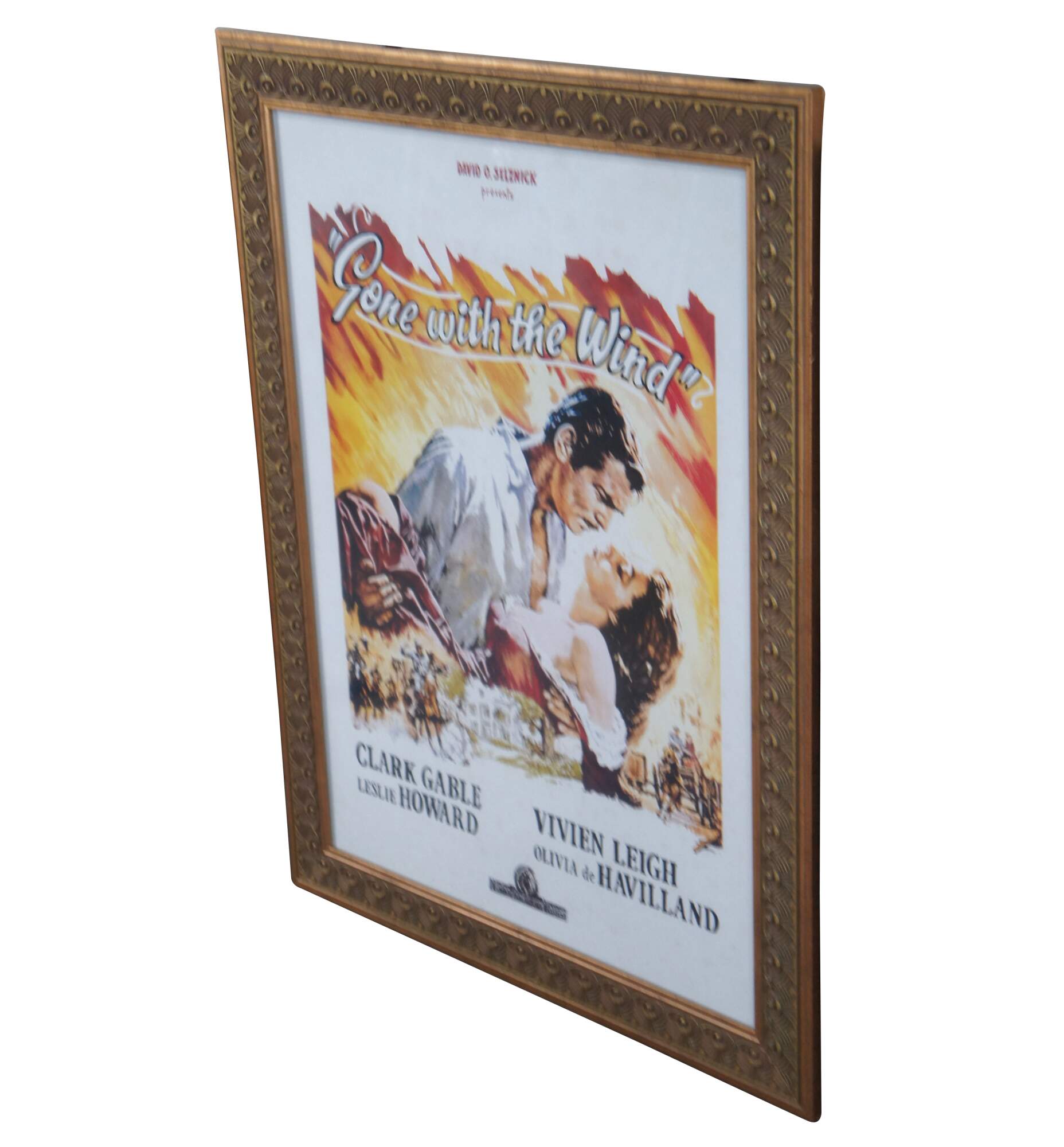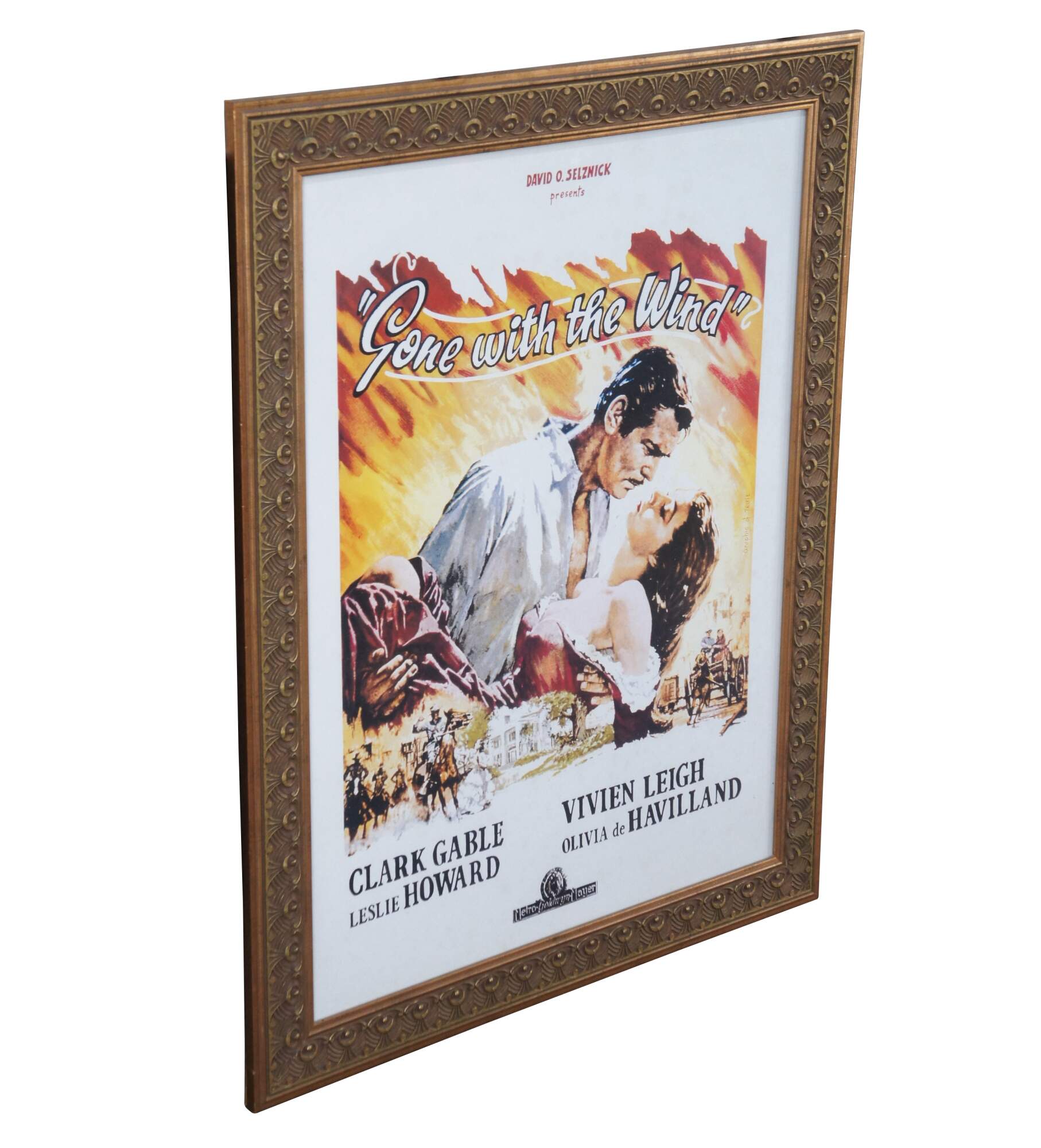 Vintage Gone with the Wind movie ad poster, framed in ornate art deco style gold frame.