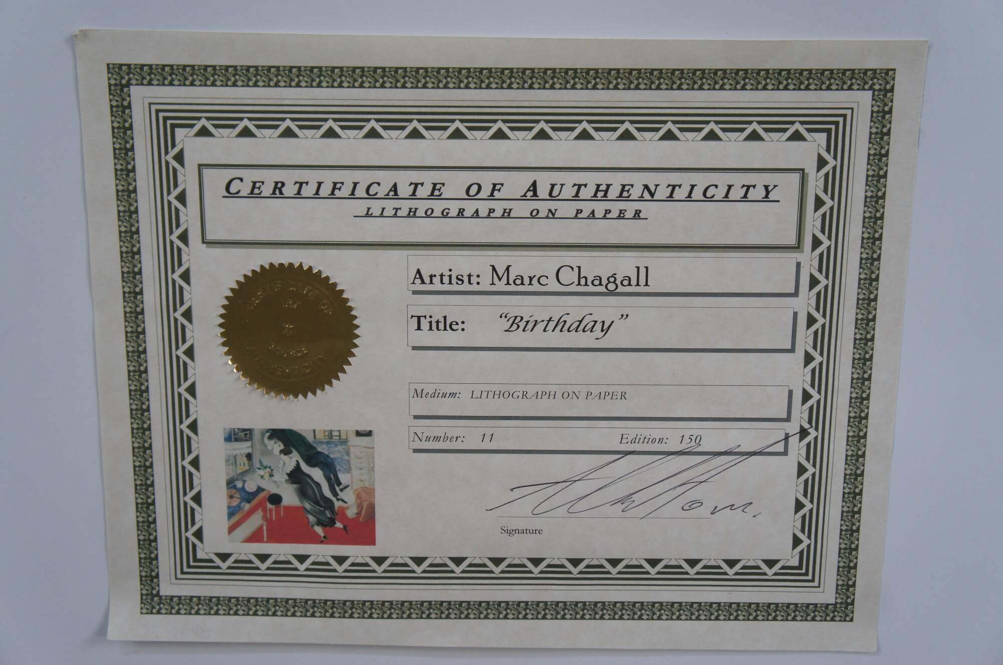 Vintage Marc Chagall Birthday (L'Anniversaire) lithograph on paper. Signed lower right, #11 of 150.