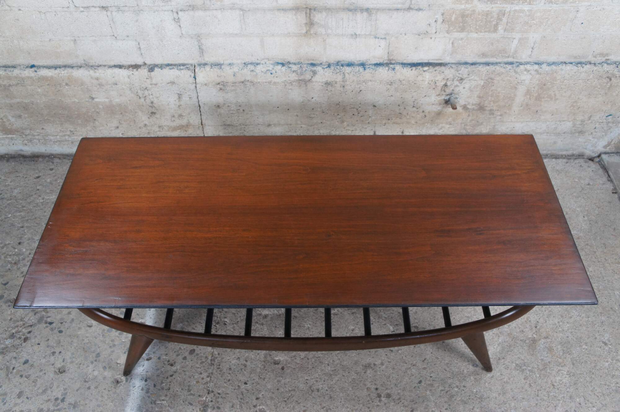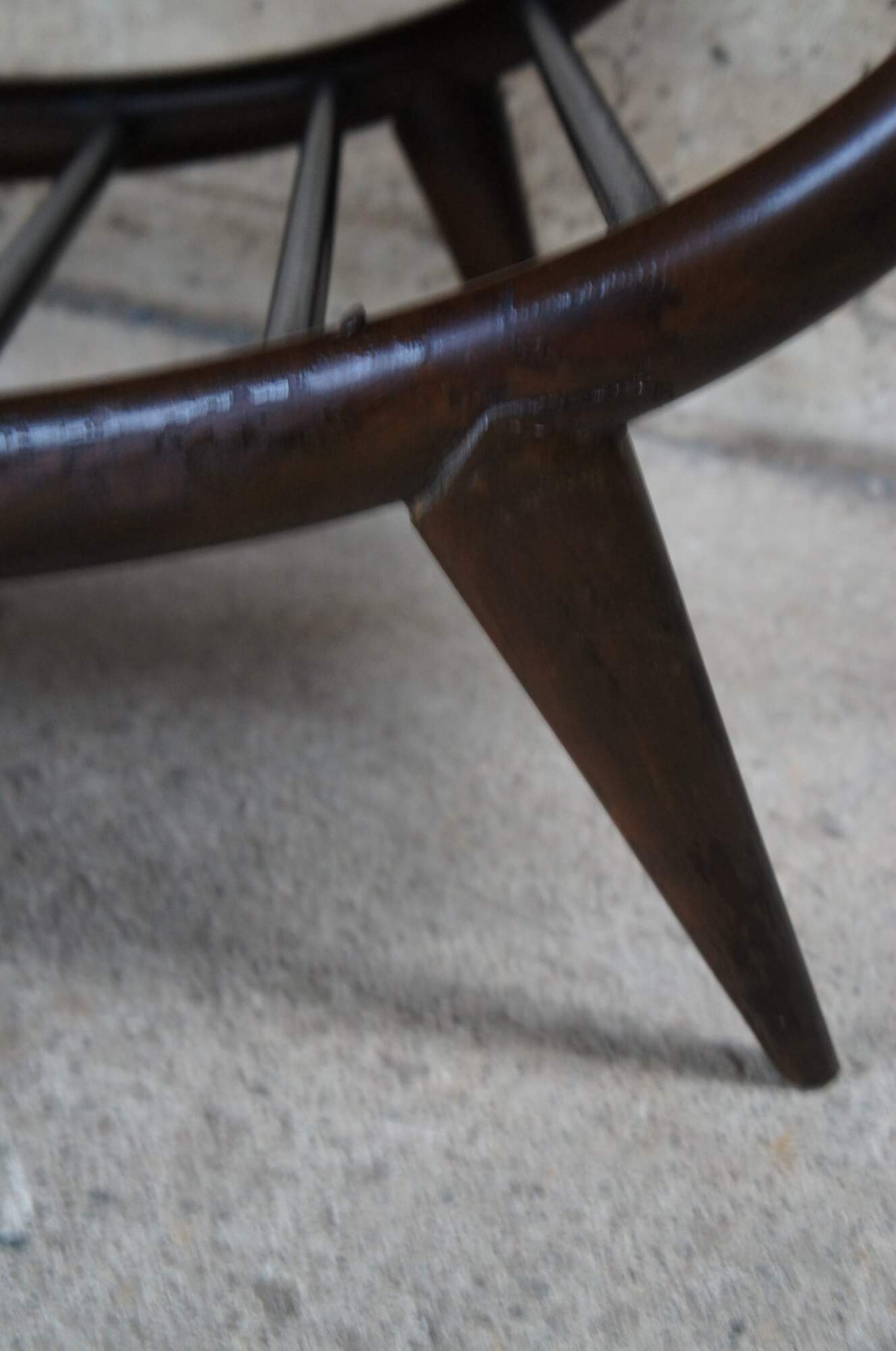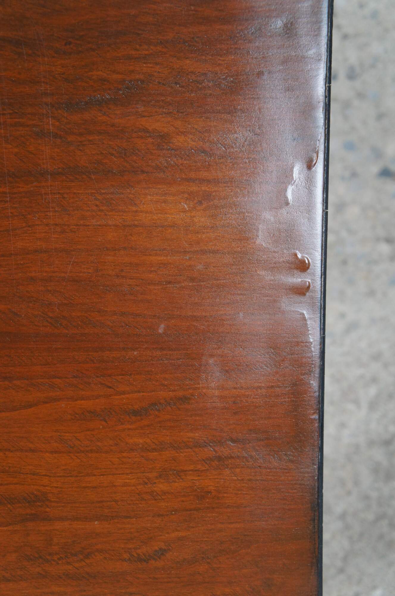 Good Vintage Condition; wear and distressing commensurate with age. Dripping to varnish along edge. Two of the legs have screws in them