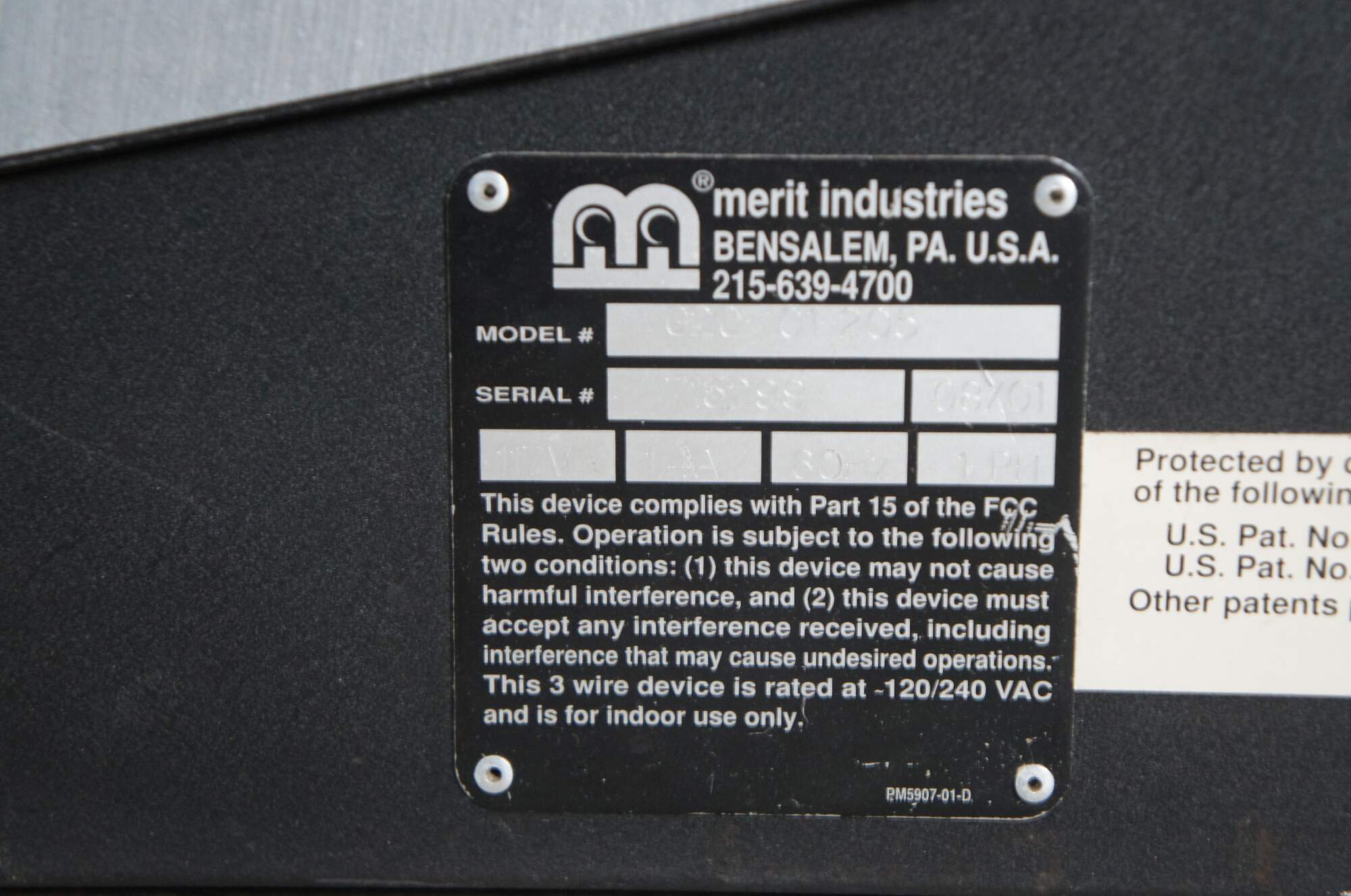 Merit Industries Mega Touch Maxx 08/01, Serial #716299 Model#020