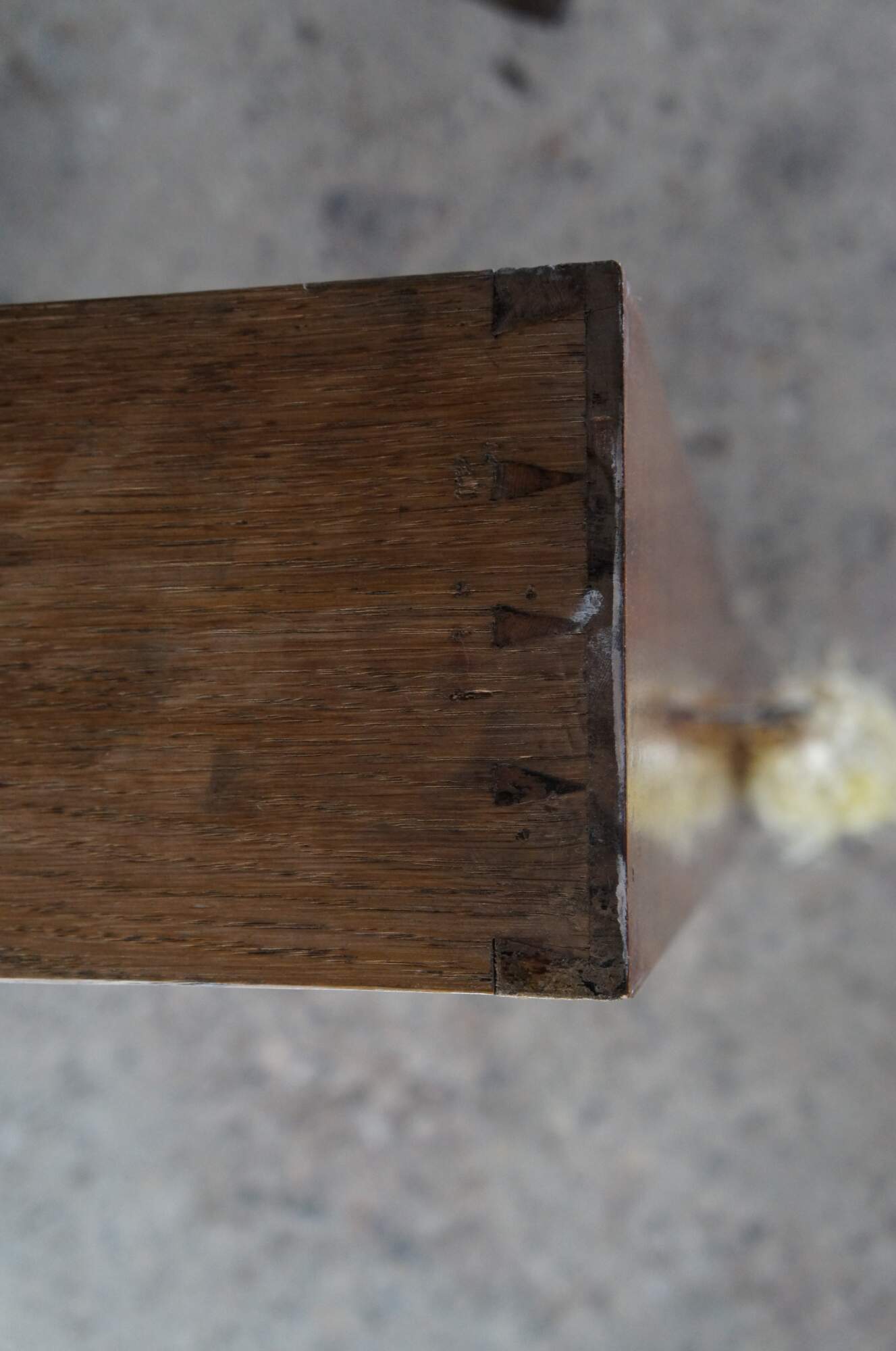 Good Antique Condition; marking and distressing from use and age. Scuff along lower left side, repair to back left leg