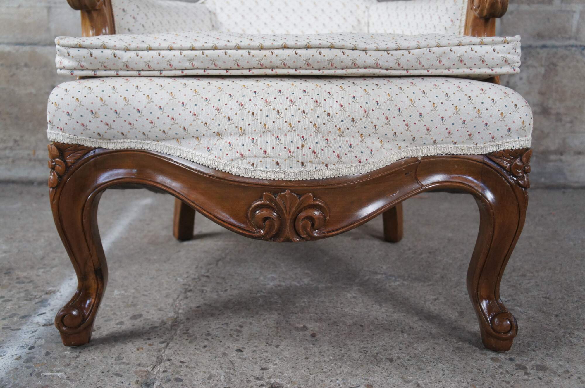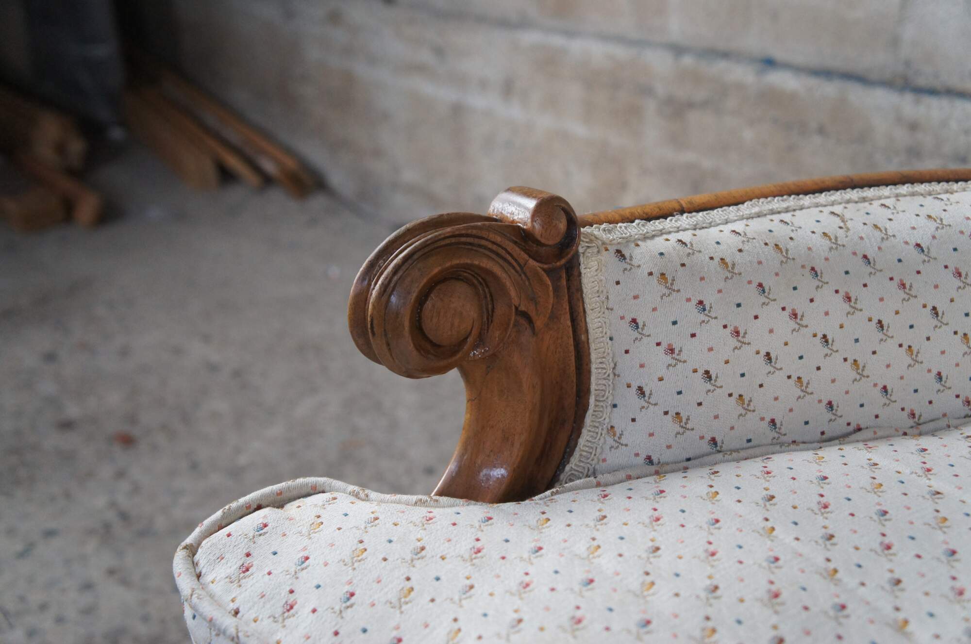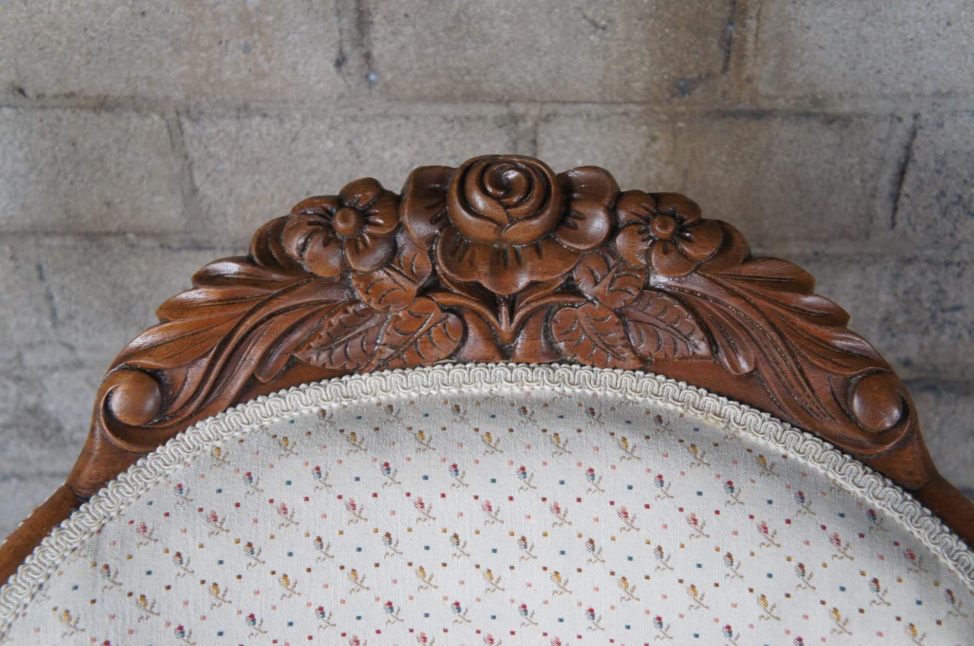 Antique Victorian Eastlake spoon back armchair. Made of walnut featuring serpentine form with low relief carved floral crown, tufted back, scrolled arms and cabriole legs.
