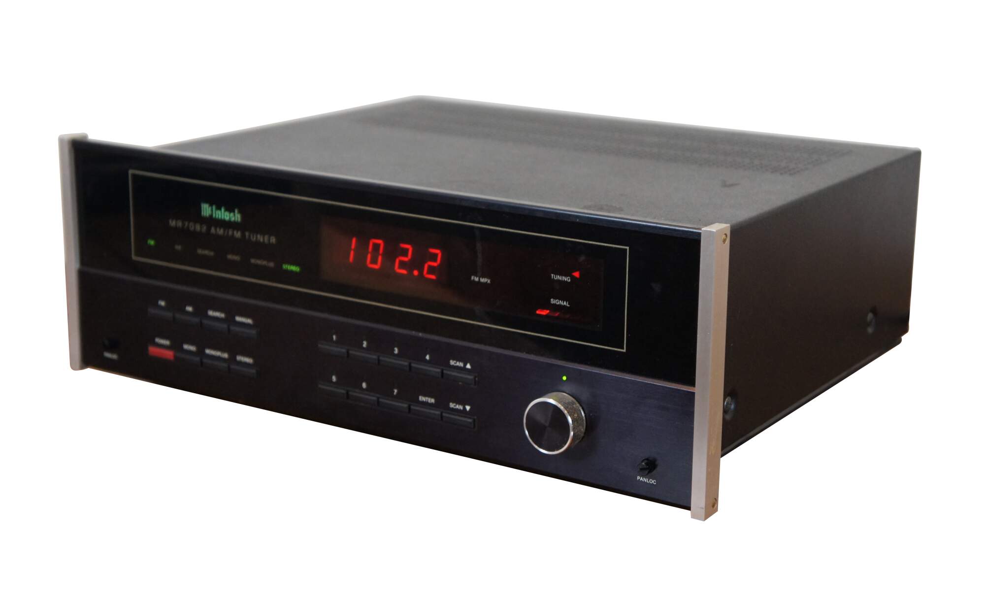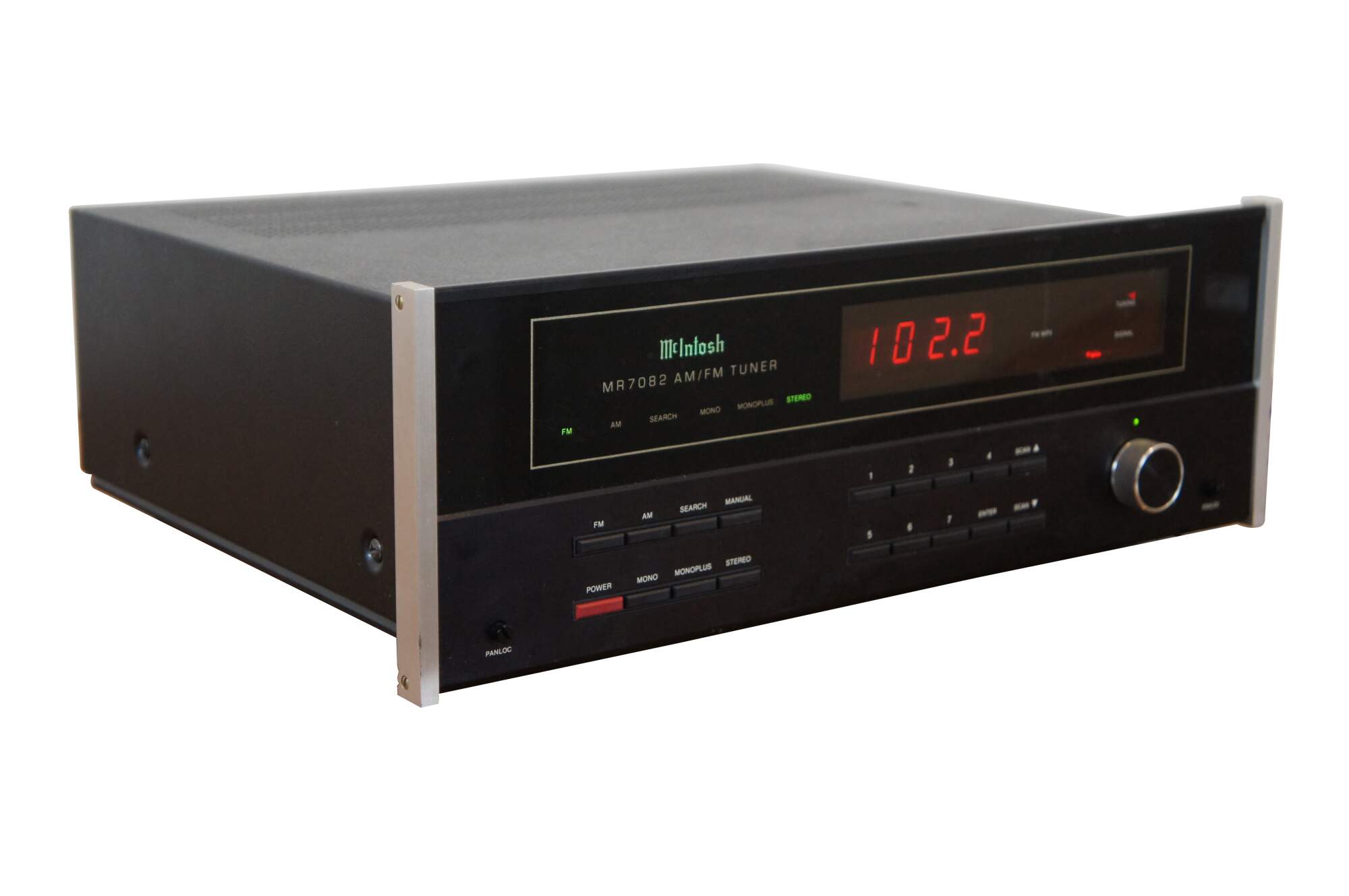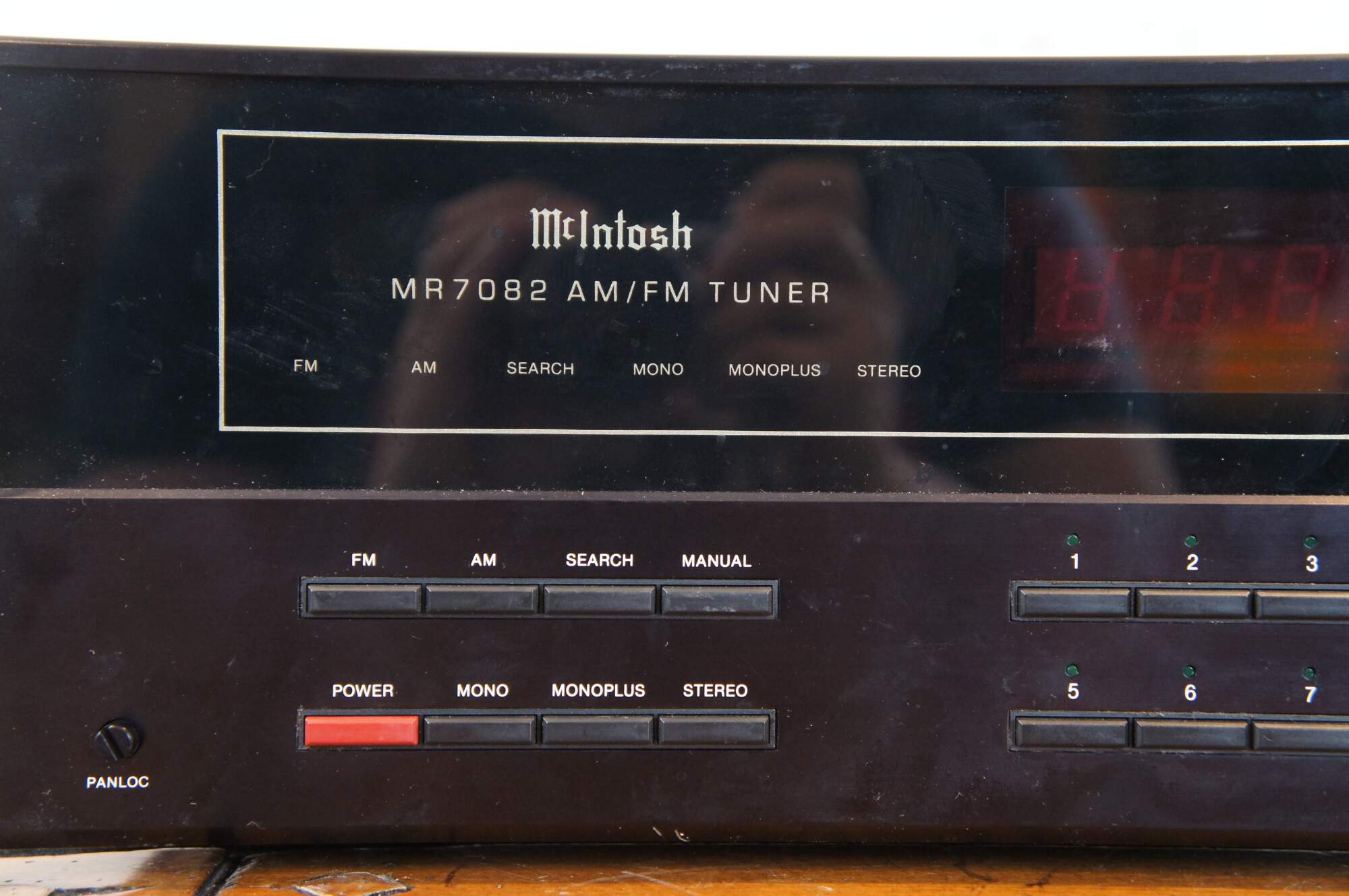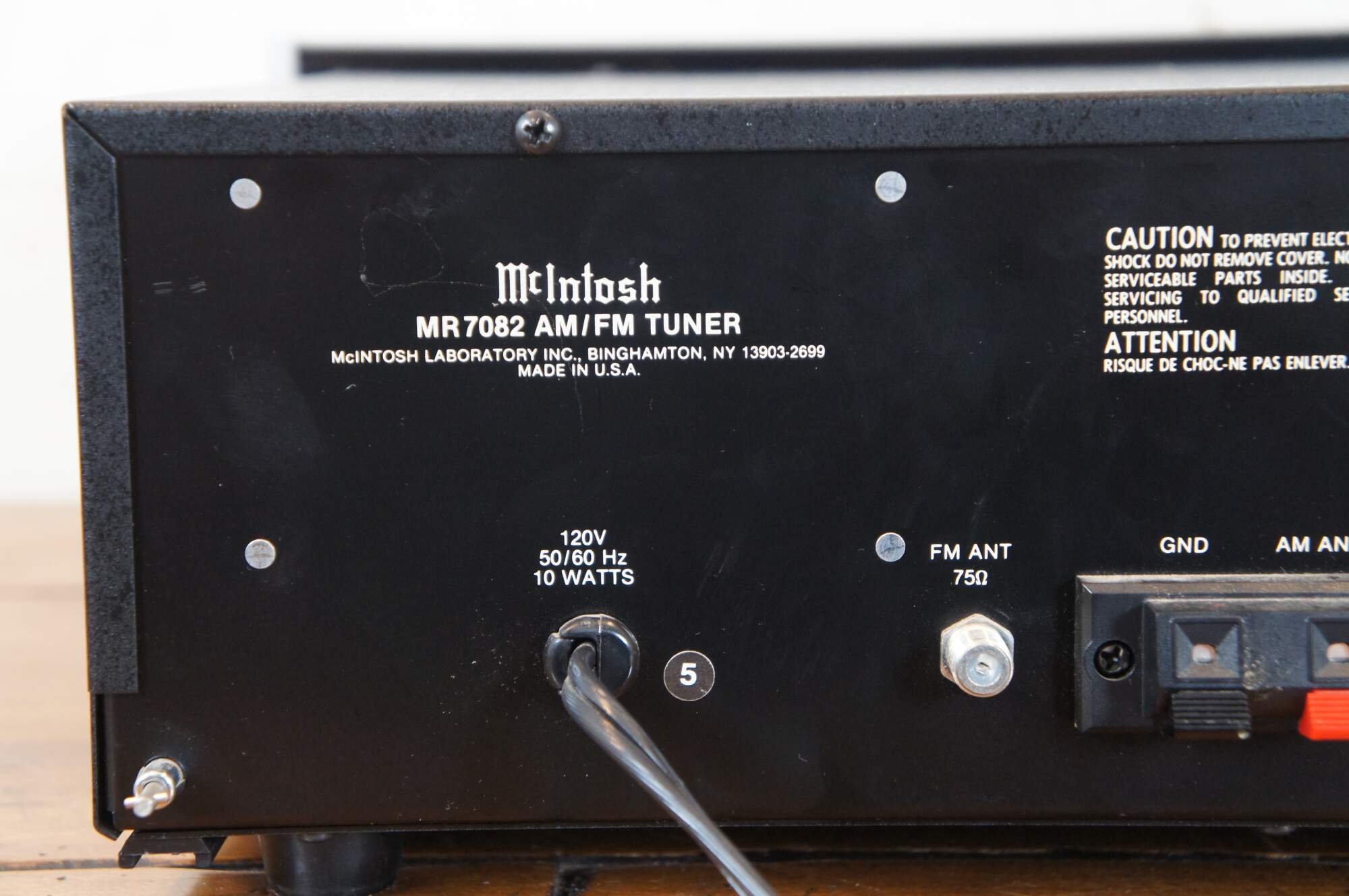 Vintage McIntosh MR7082 Digital AM/FM Tuner, manufactured circa 1986-1990. 120V, 50/60 Hz, 10 Watts. Serial No. EE1637. Made in USA.