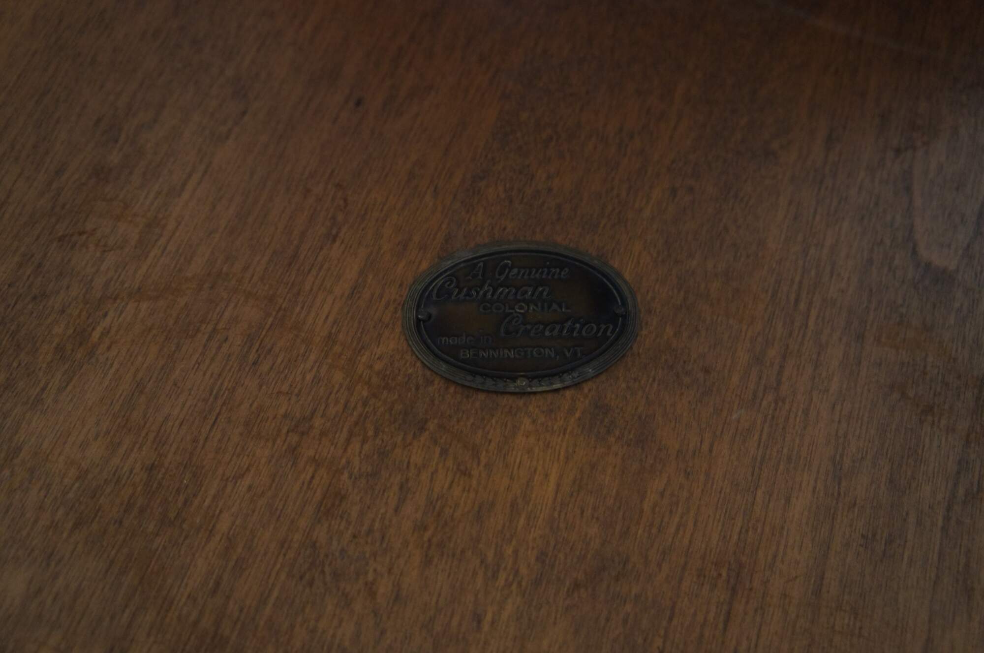 In 1933, the company launched a collection of early American furniture inspired by the Colonial Revival movement of the late 1800’s. These new designs, produced by long-time employee Herman DeVrie, were branded as “Cushman Colonial Creations” and reinvigorated the company’s sales over the next 25 years. Cushman Colonial Creations featured turned wooden legs, solid hardwood construction, and traditional American craftsmanship.