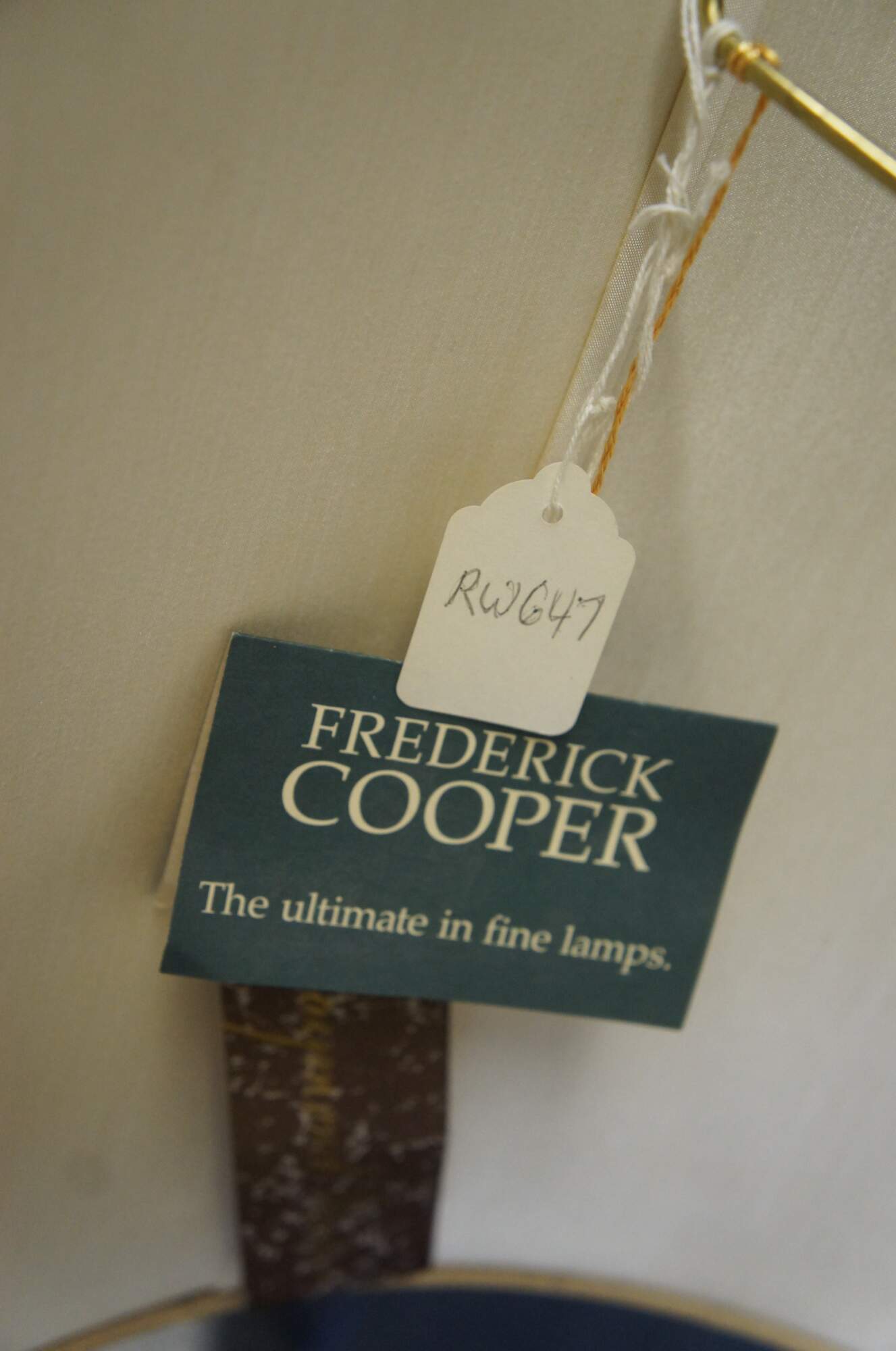 Late 20th century Frederick Cooper Buffet or table lamp. Features an ornate base in the manner of a French urn with basketweave and acanthus design over plinth base on faux marbled footer. The lamp has a pineapple leave topper and ornate silk drum shade. Includes a brass lion head finial.